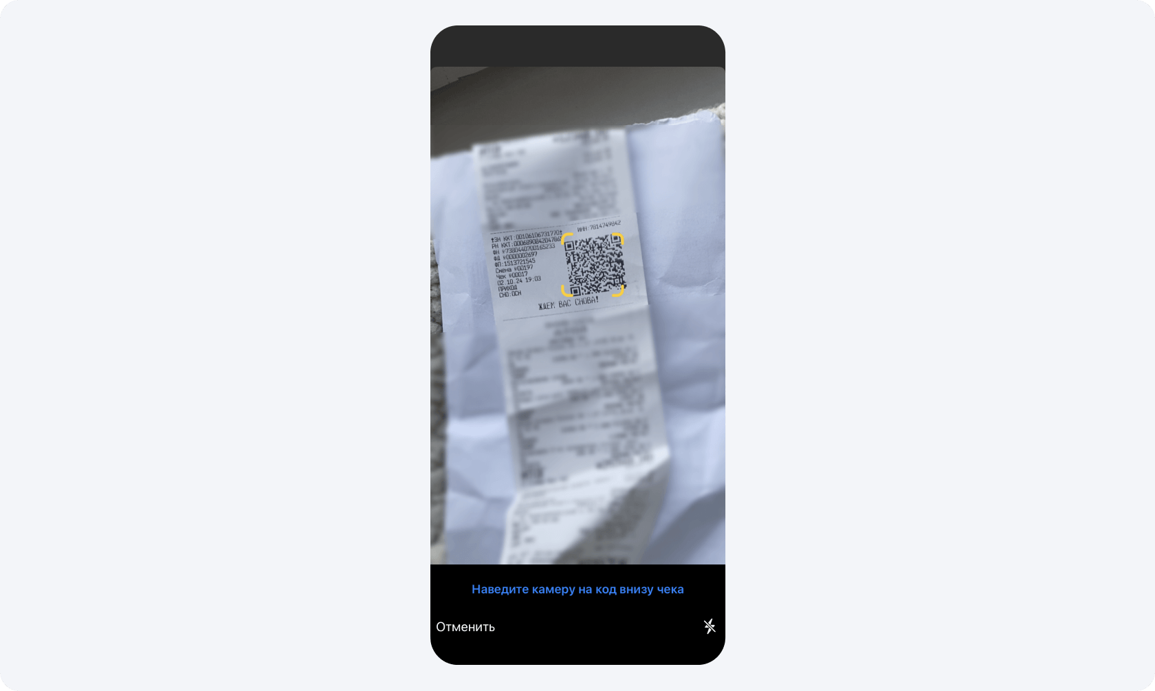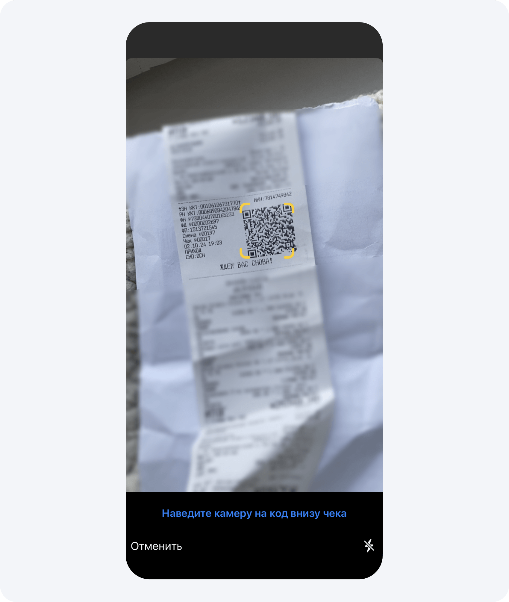 2. Наводите камеру на код или выбираете фото с чеком из фотопленки