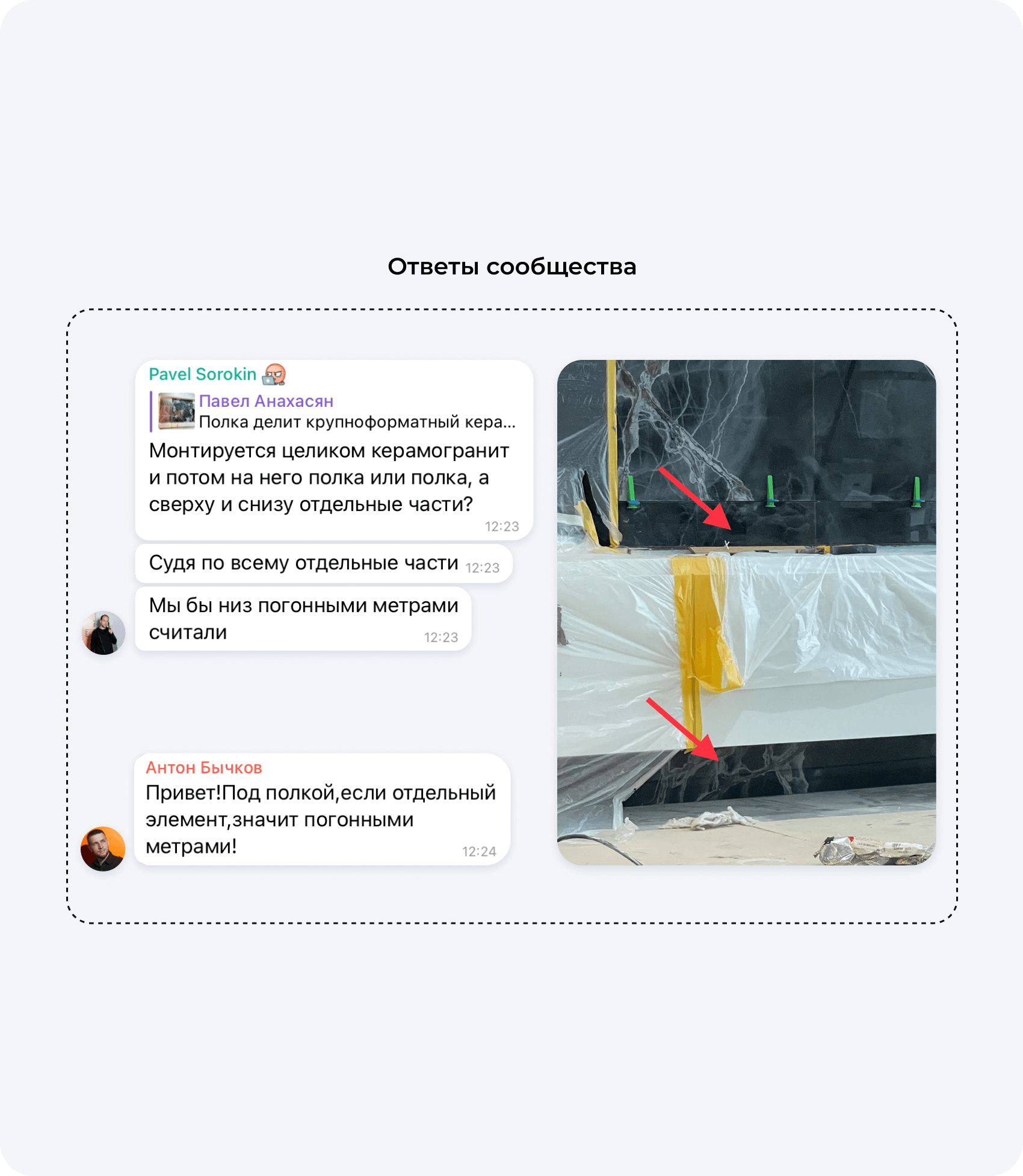 И 130 профессионалов своего дела (сказано без иронии!) не смогли корректно ответить на него. Практически все участники чата сказали, что полосу над полкой нужно считать в квадратных метрах, а под ней — в погонных метрах.