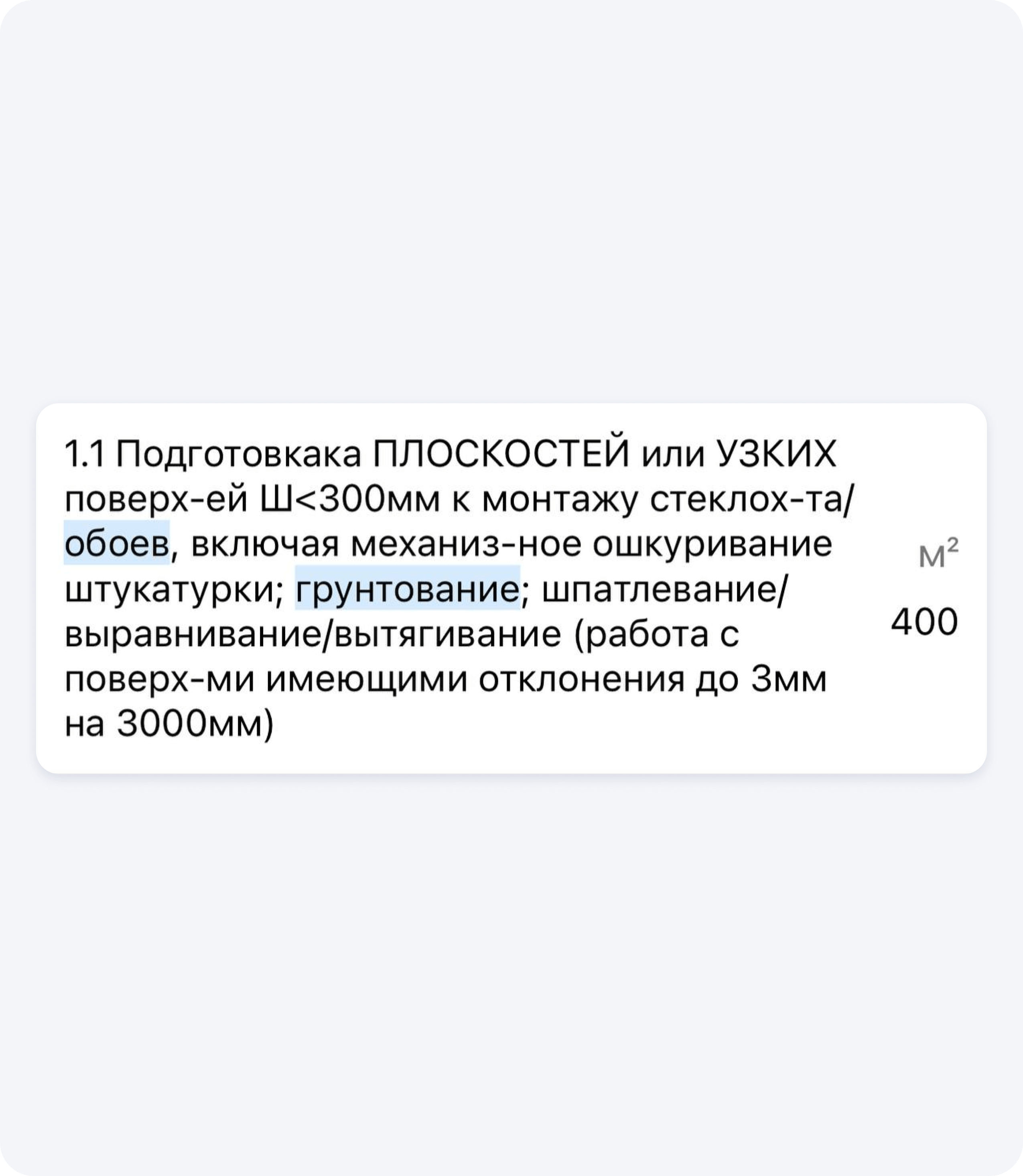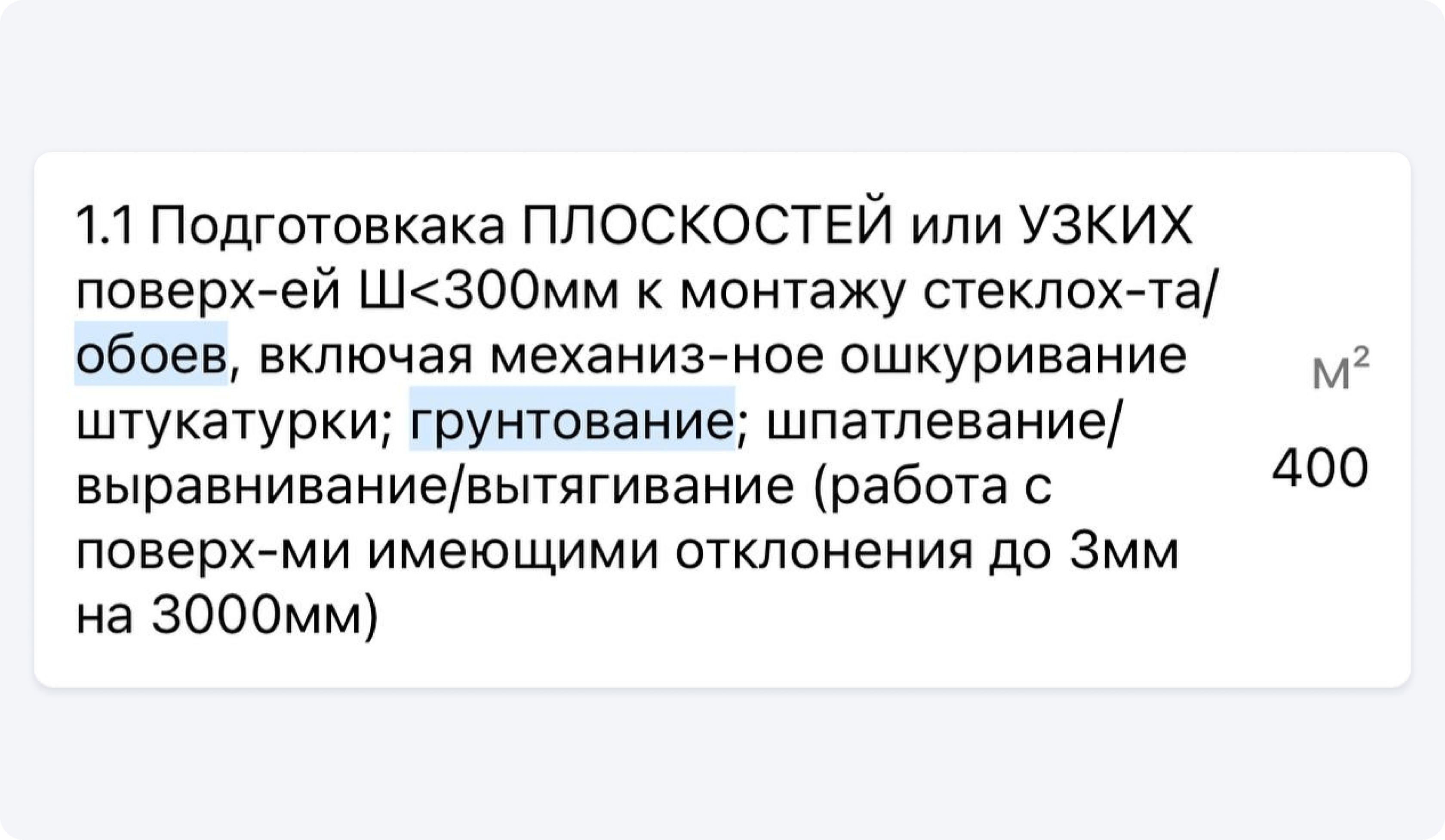 Поэтому если в вашем прайсе все ещё есть пункт вроде «Грунтование стен 50₽/м²», то скорее замените их на более понятные позиции, в которых грунтование включено в список других работ.