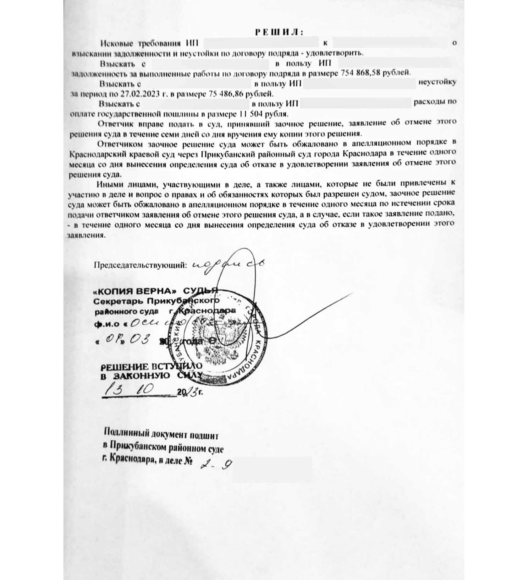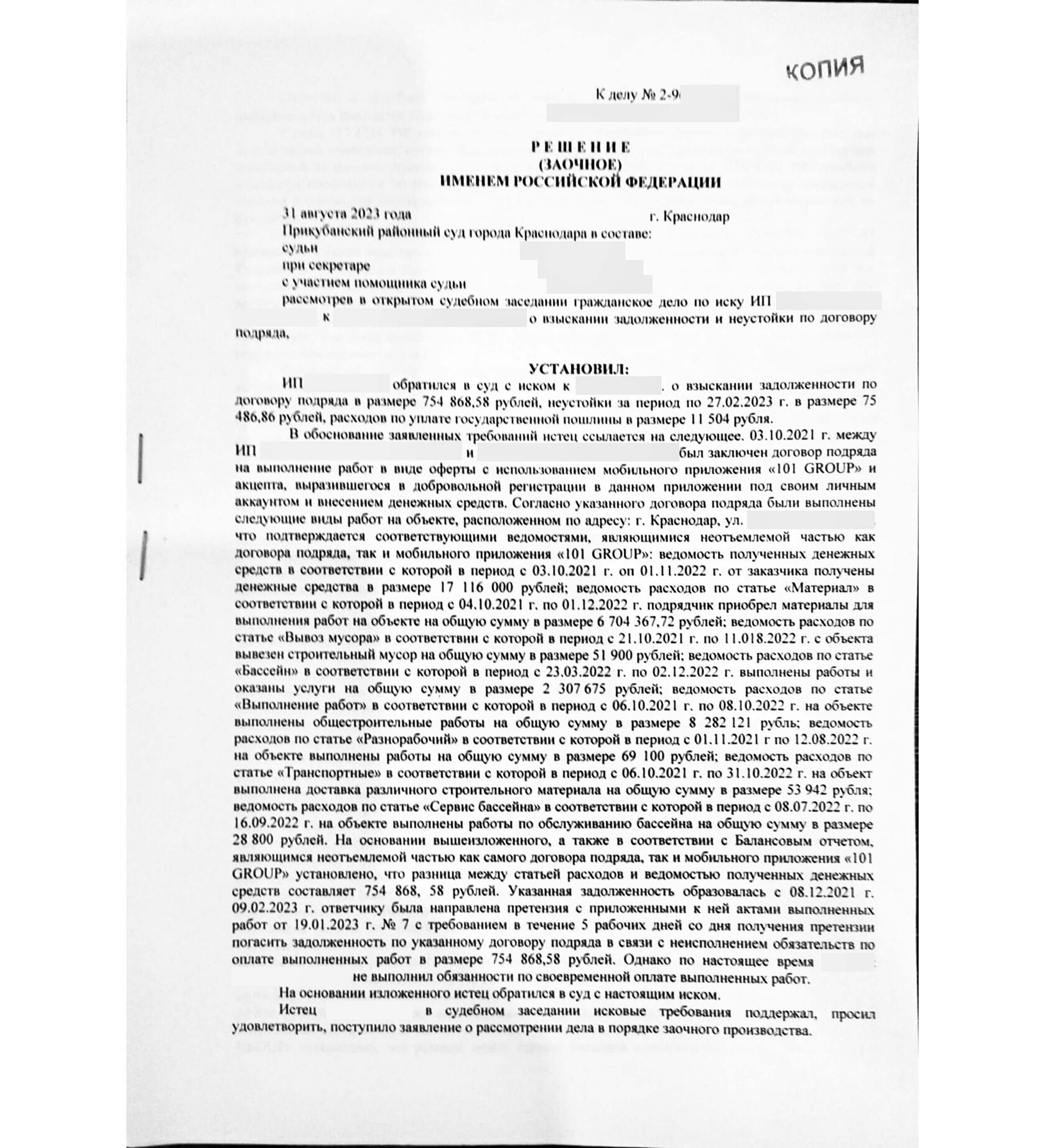 Да, был договор, да, были перечисления средств. Но актов не было — значит наш пользователь и не работал на этом объекте. Суд вынес решение о полном возврате средств. Строителю пришлось продать свою квартиру, чтобы выплатить долг.