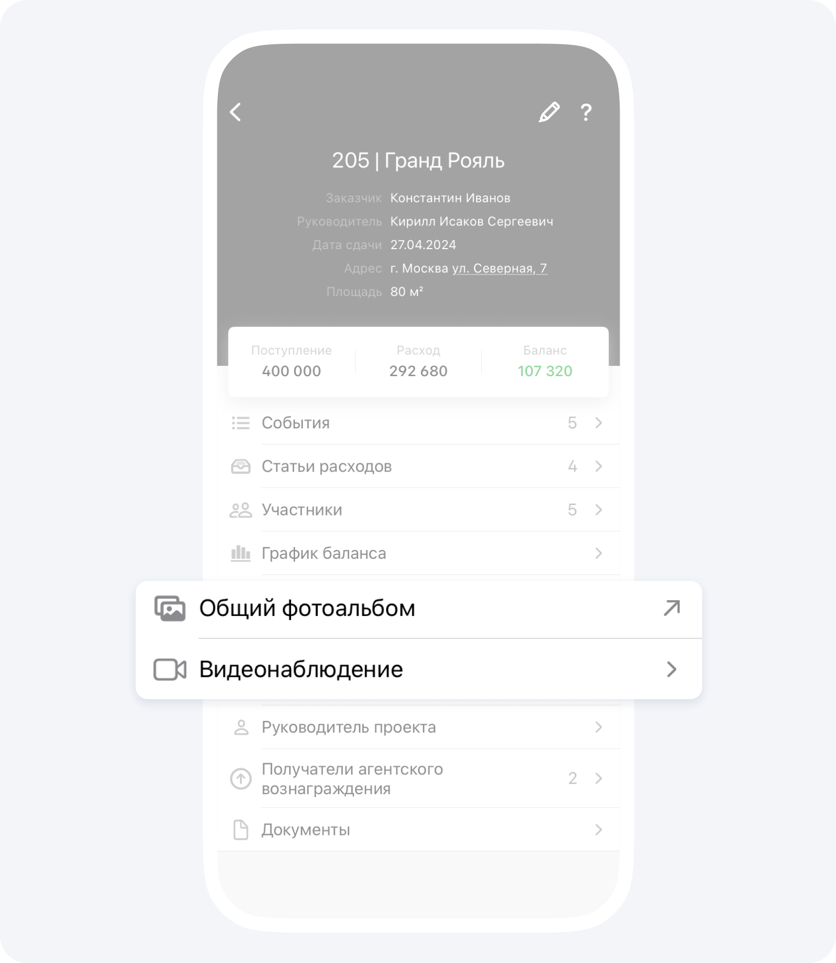 Если к вам пришел заказчик с запросом на дизайнерский ремонт в новостройке, то в Приложении 101 вы наверняка найдете похожий реализованный объект, если вы давно проводите через него все свои работы. За считанные секунды вы сможете сформировать балансовый отчет, показать его заказчику и сориентировать его по примерной стоимости.