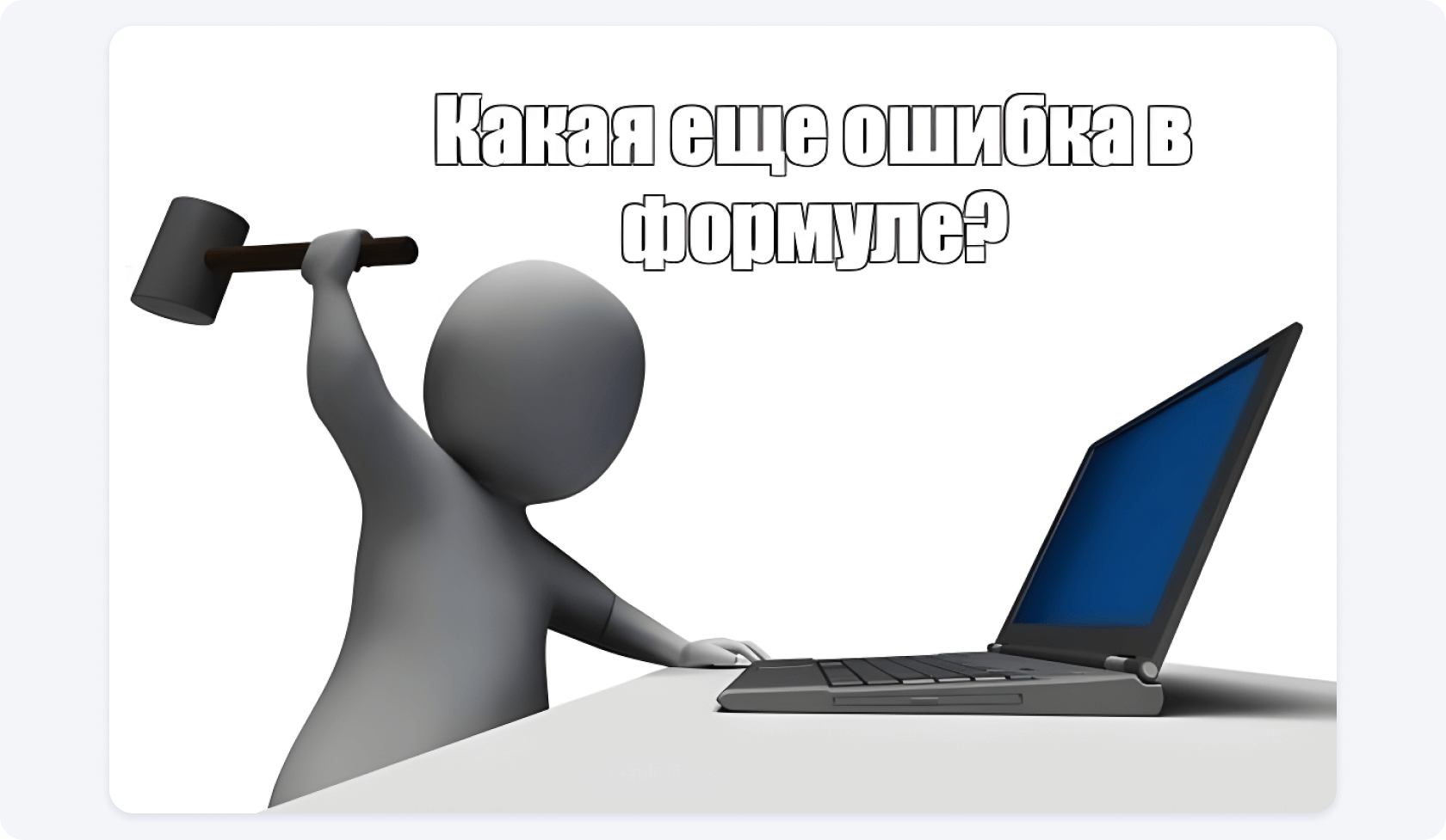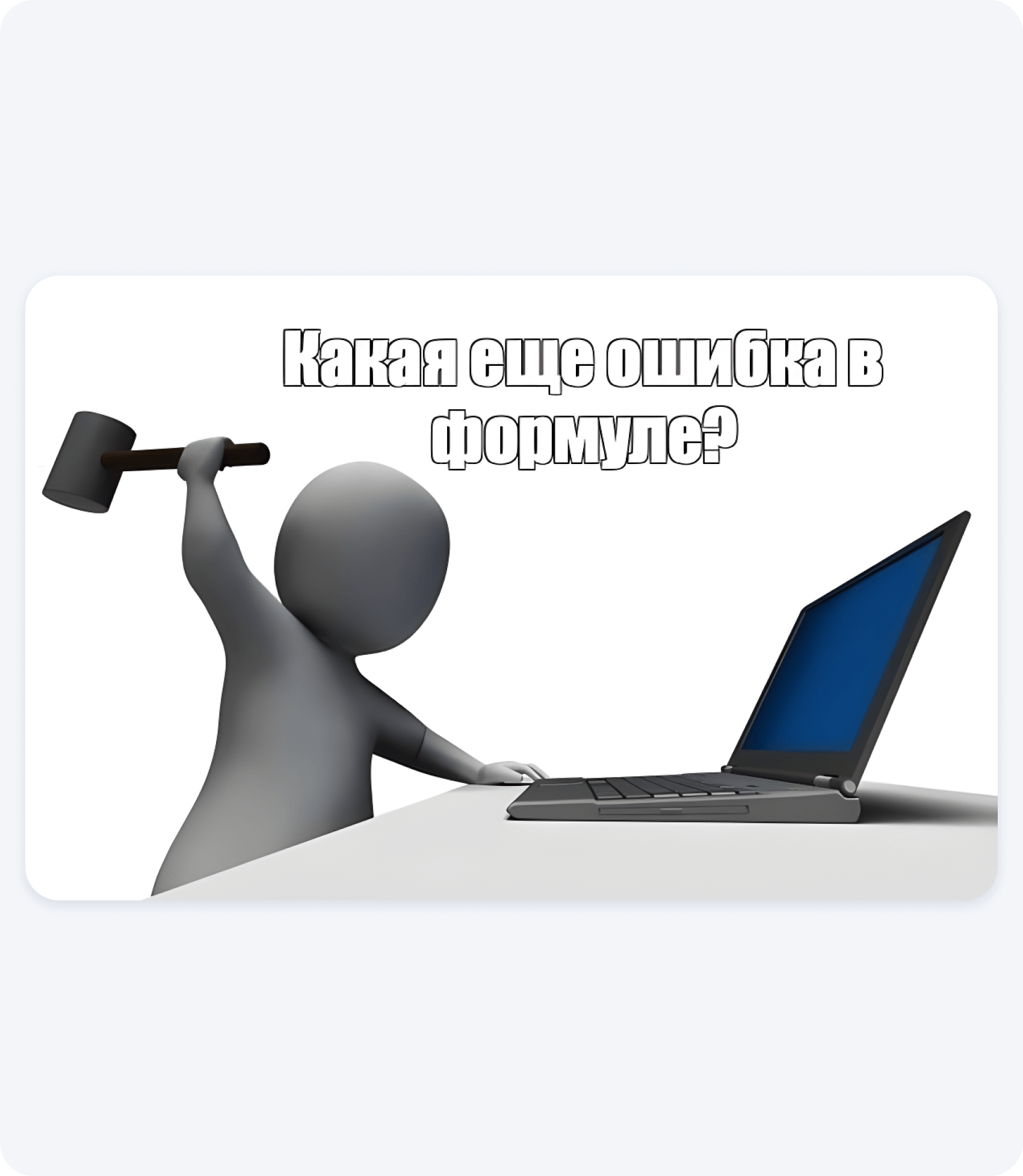 В любой момент может слететь формула, и вы рискуете почувствовать себя героем старого мема! Excel вообще не предостерегает вас от ошибок! Из-за человеческого фактора даже самые правильно подобранные функции могут не скопироваться, что приводит к неточным расчетам в смете. И выясняется это всегда именно тогда, когда заказчик уже все подписал и оплатил...