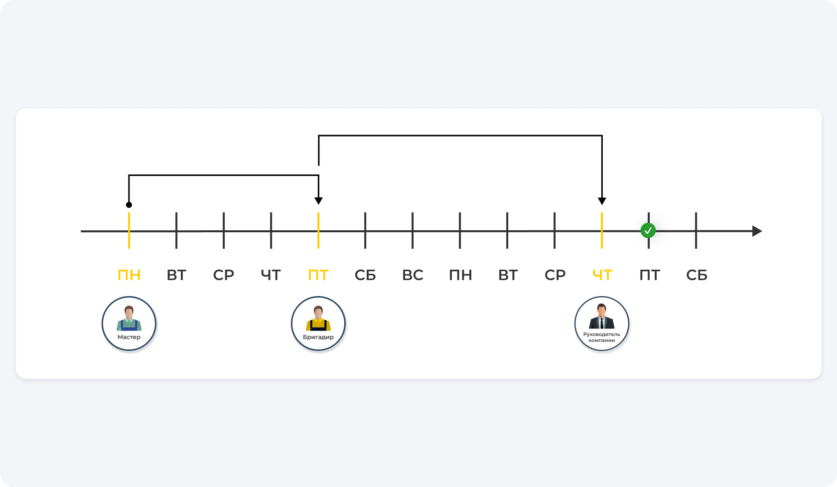 Эту схему можно упросить с помощью Приложения 101 — соединить всех участников в одном виртуальном пространстве, позволив им работать прямо с телефона без привязки к компьютеру и определенному времени. Это ускорит создание отчетов в разы!