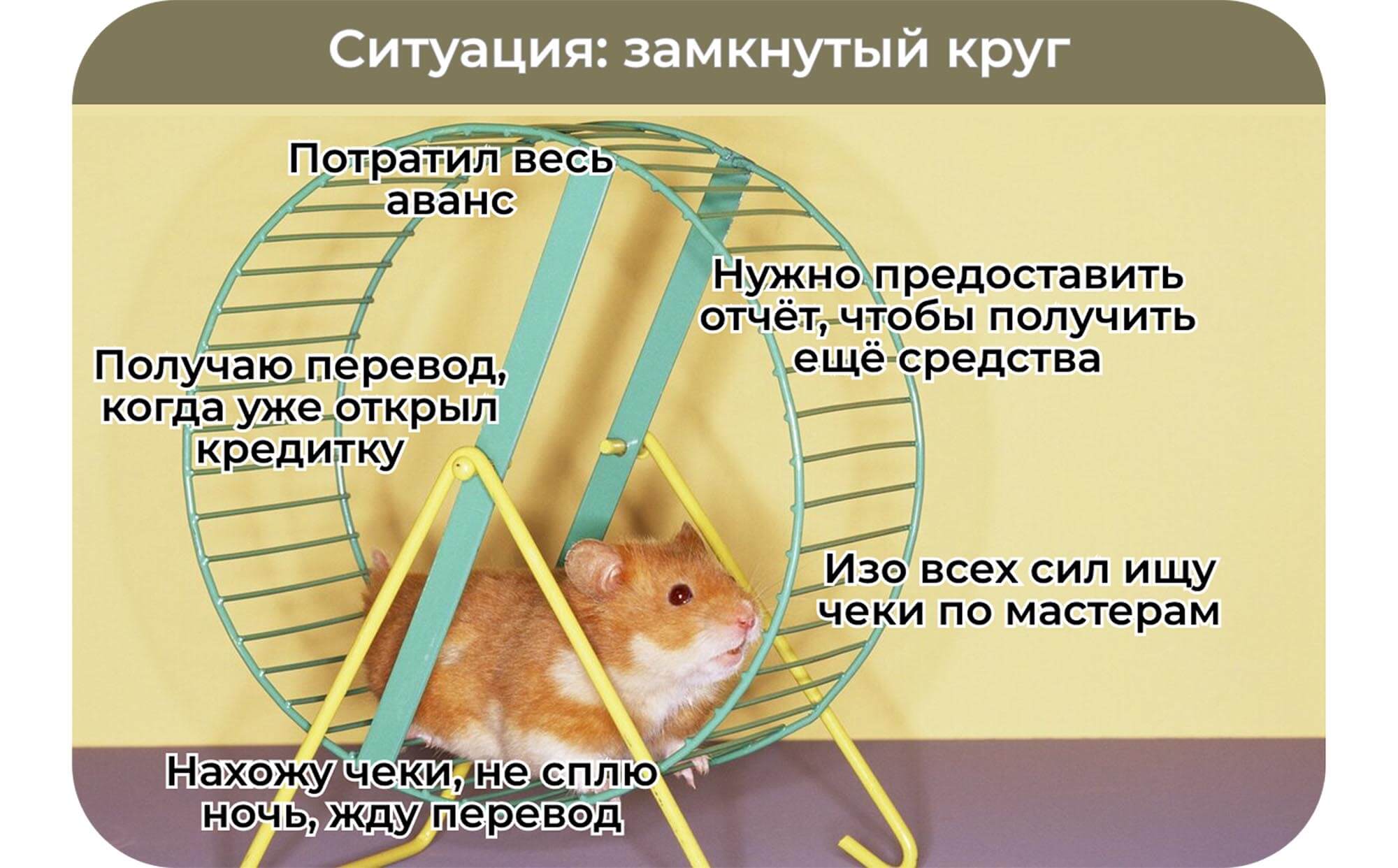 Это утрированная схема — чаще всего заказчик, конечно, стремится больше оплатить вперед, не требует серьезных отчетов или вообще готов компенсировать ваши траты буквально через час после того, как вы приложили карту куда-то... Но не всегда!