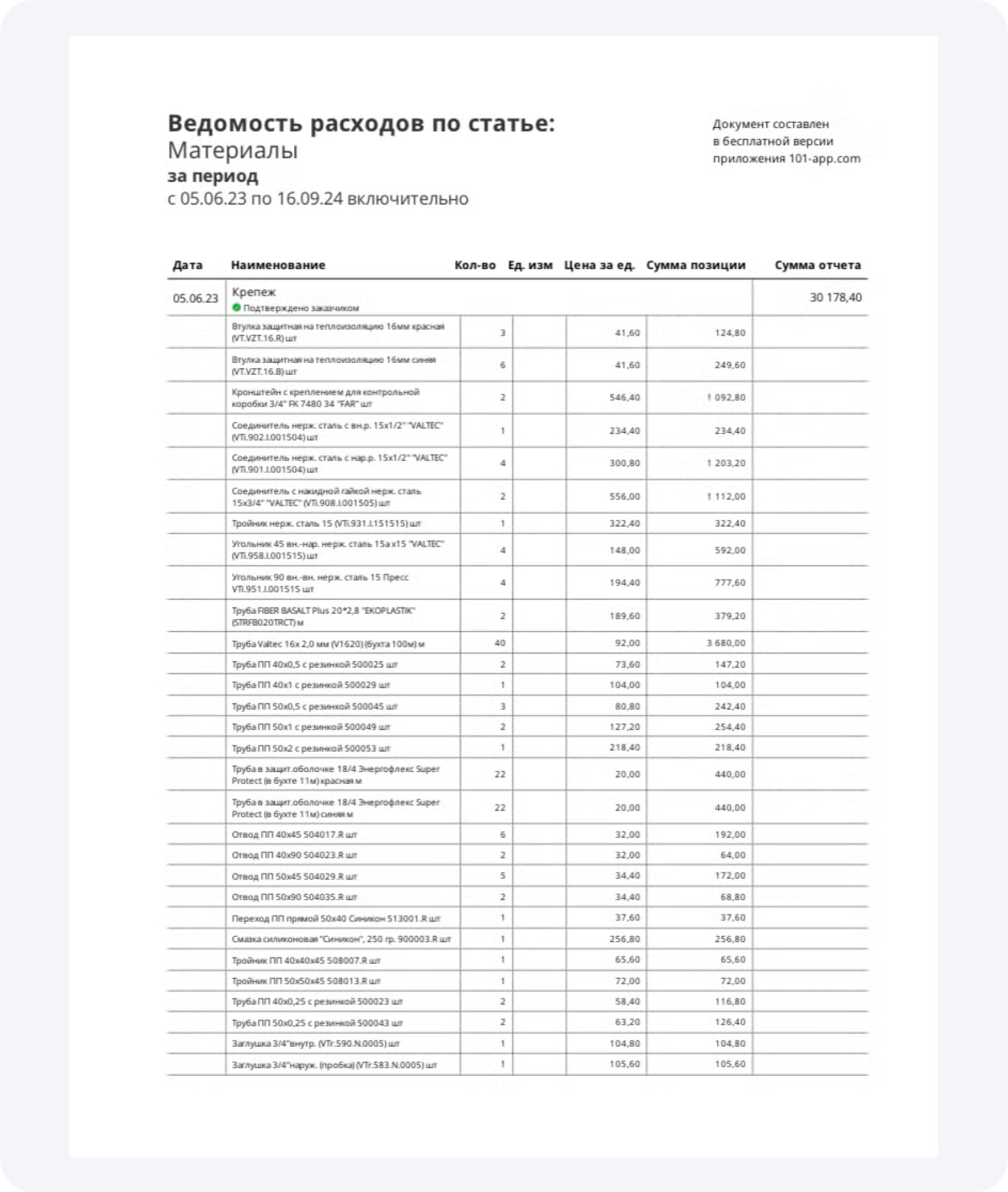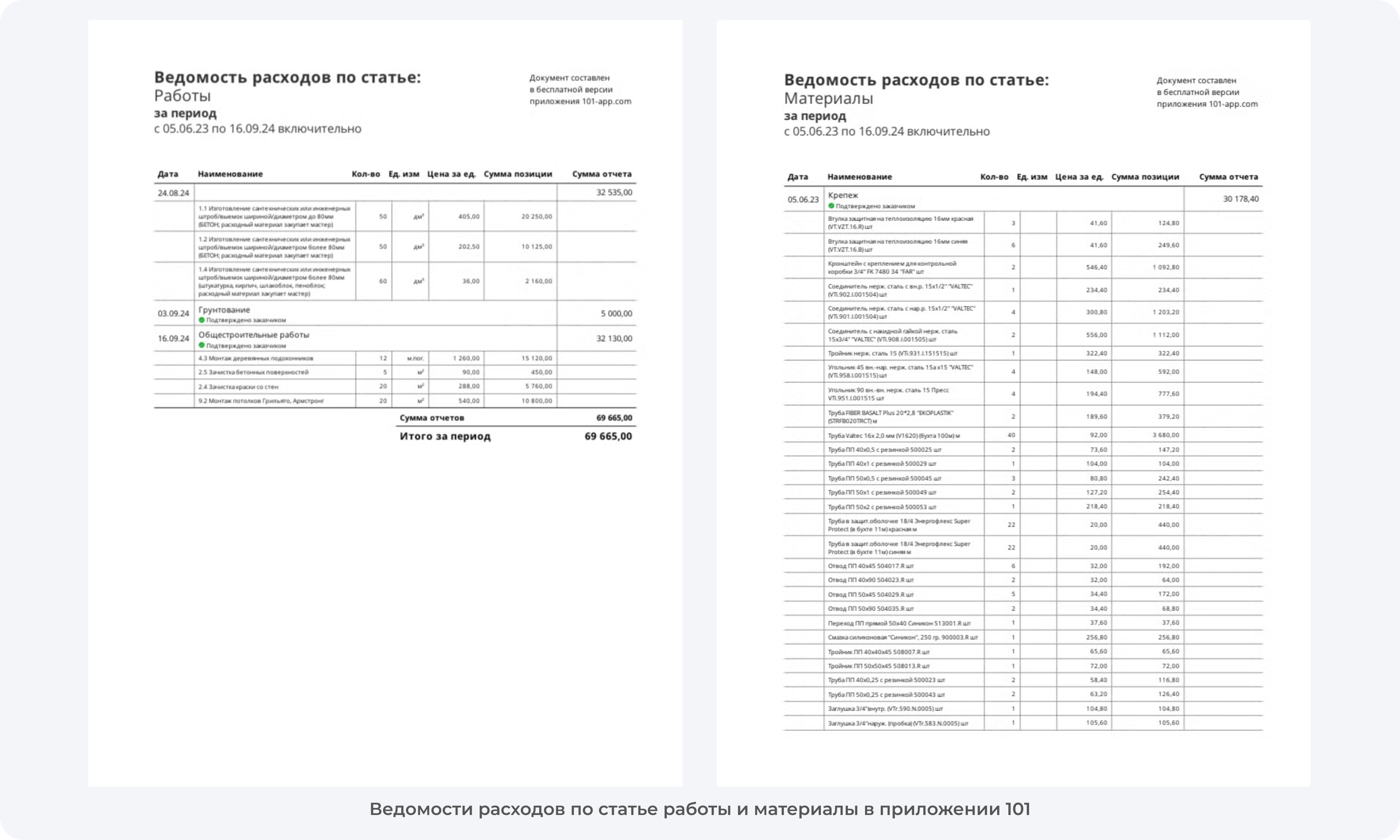 По такому же принципу вы можете создать отчёт по Форме КС-2, Ведомость расходов по статье и смету.