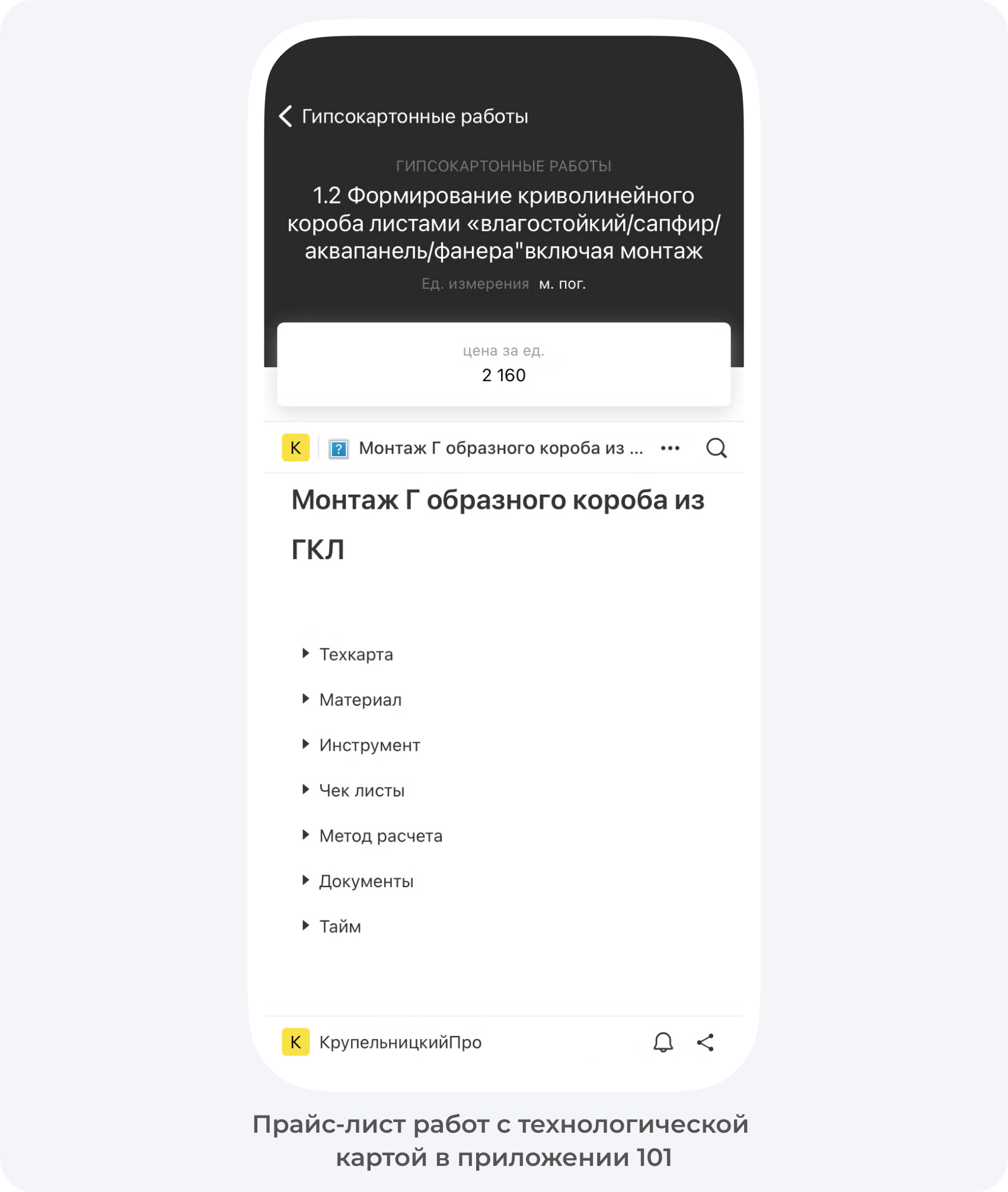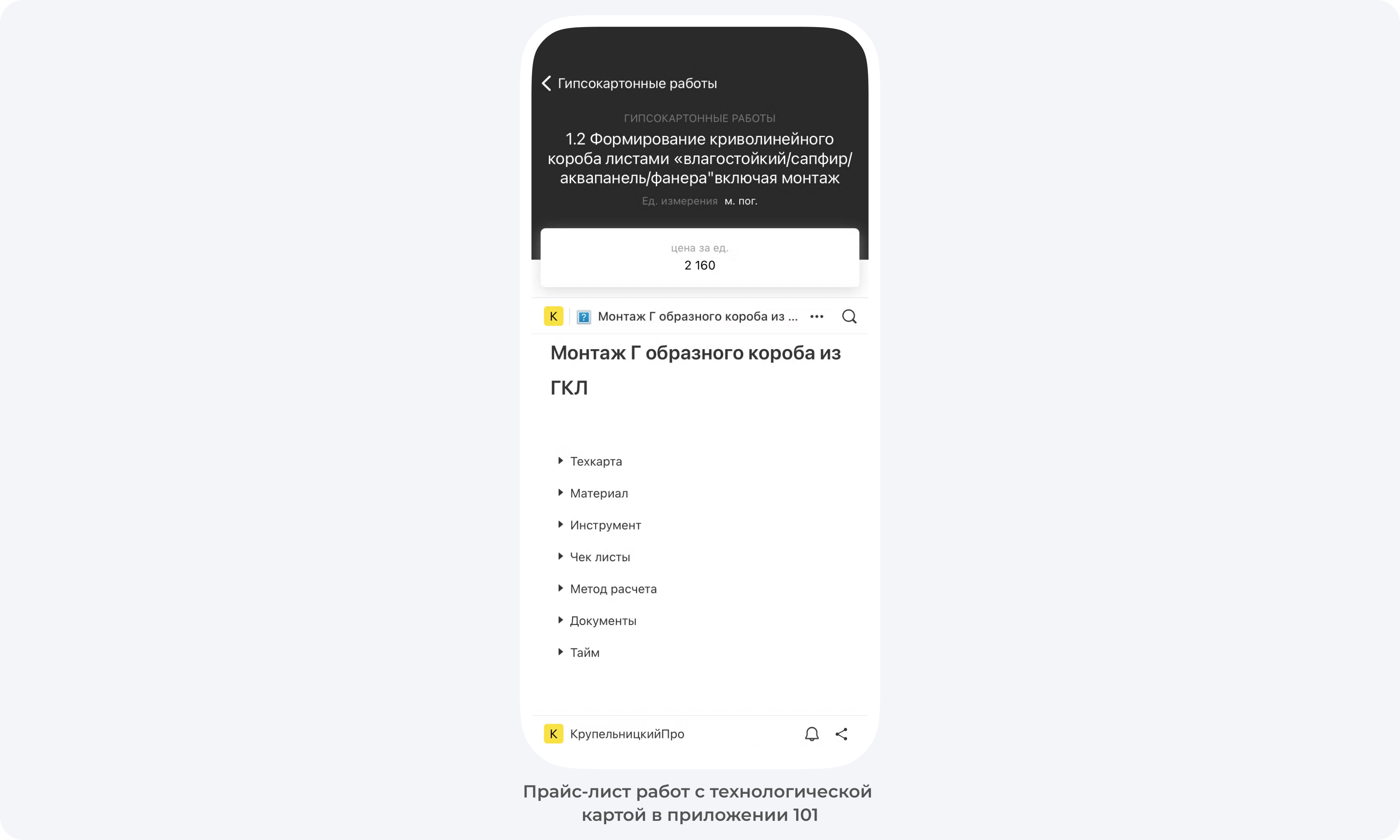 В разделе Прайс-лист вы можете ознакомиться с полным перечнем работ подрядчика с ценой за единицу по каждой позиции и технологическими картами по ним, если их добавили.
