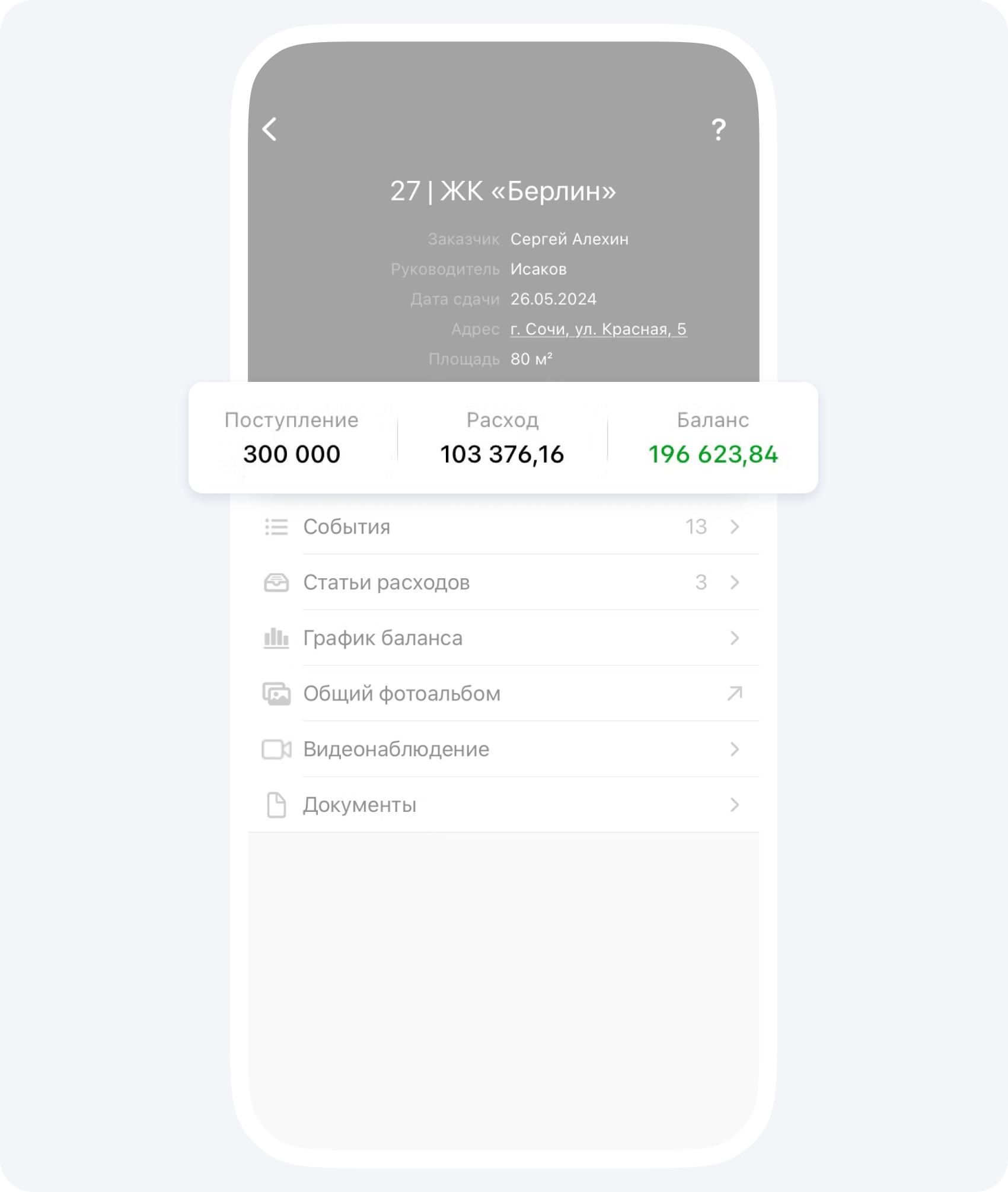 - Подрядчик в любое время может предоставить вам отчёт в электронной форме по вашему объекту в целом и отдельно по каждой статье расхода!