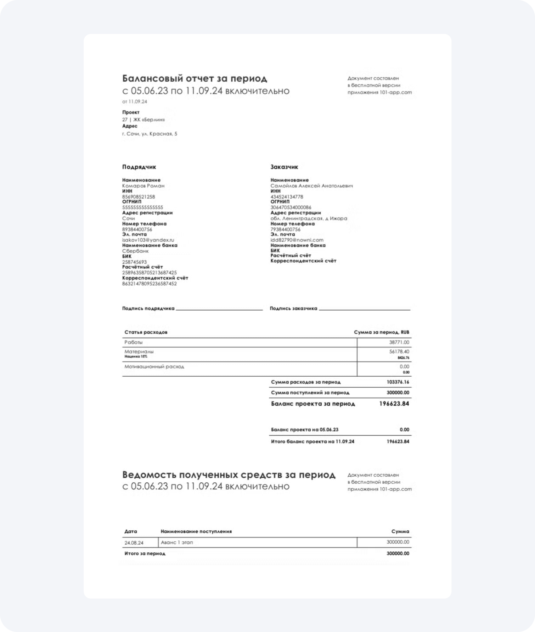 Ваш подрядчик ежемесячно берет у вас деньги, но вы не понимаете куда они уходят? Вы тратите много часов, а быть может и дней на согласование затрат по вашему объекту? Вам надоело перебирать гору чеков в конце ремонта? Теперь об этом можно забыть!Если ваш подрядчик работает в приложении 101, вы ежедневно, в режиме онлайн, получаете доступ ко всем процессам, происходящим на вашем объекте:
