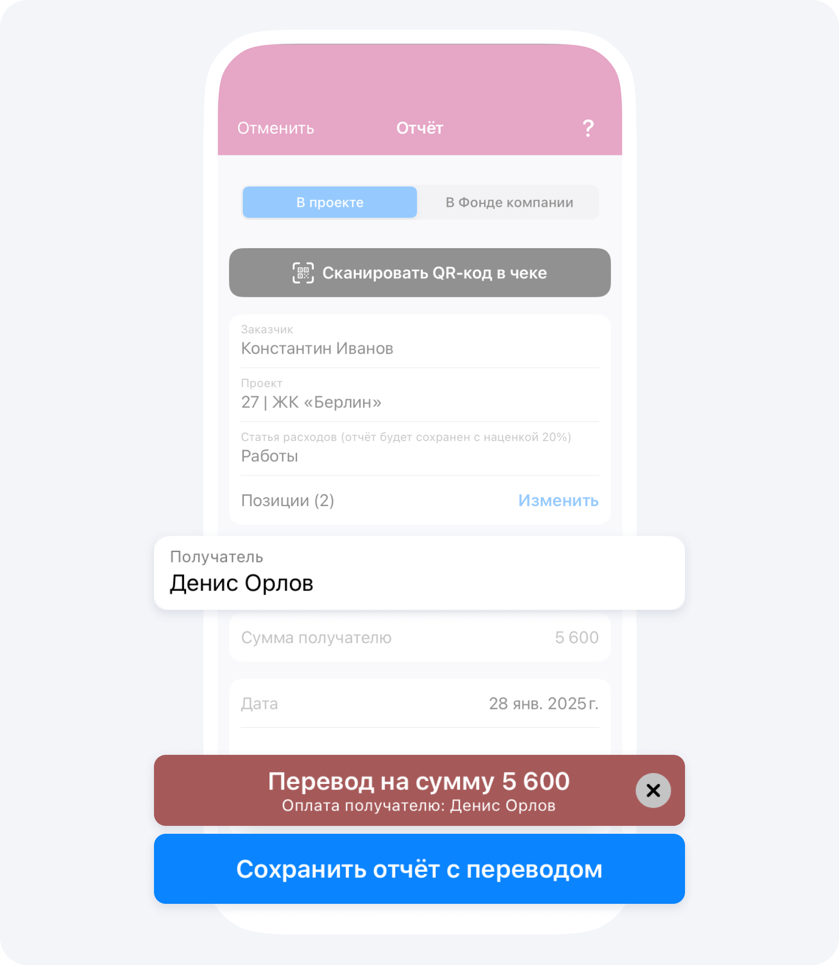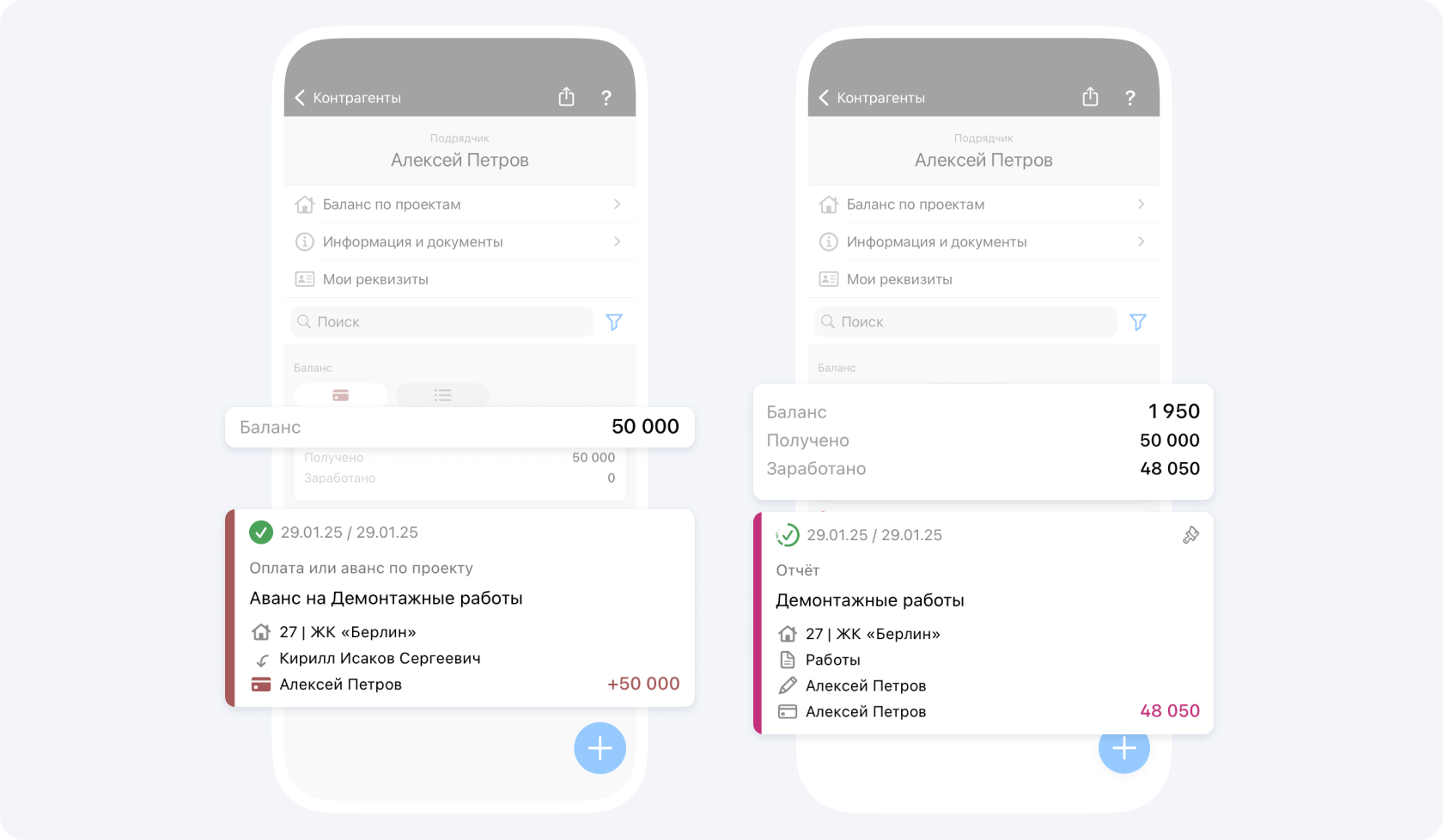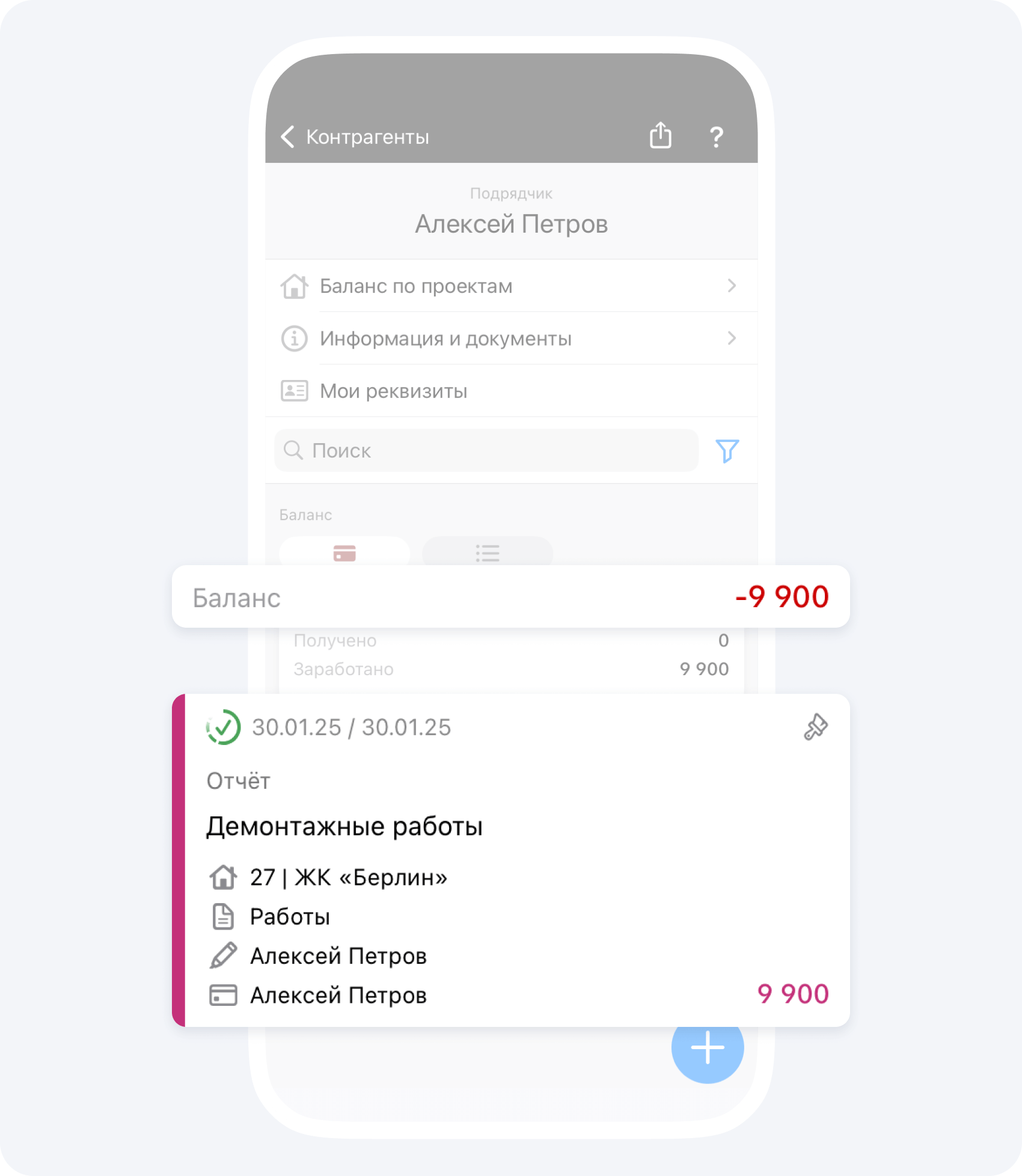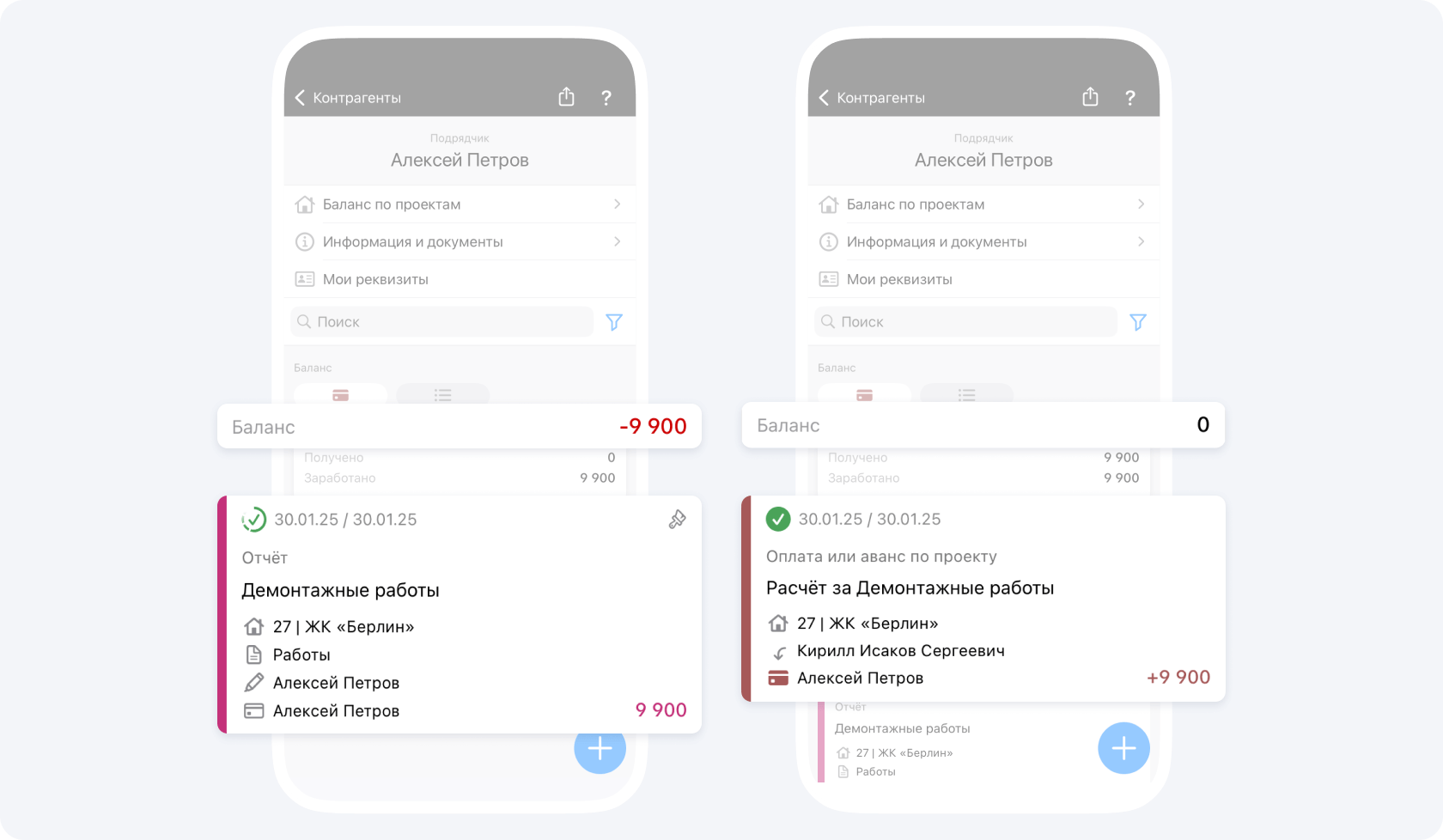 Если ранее вас авансировали по данному объекту, после подтверждения события Отчёт руководителем проекта, ваш положительный баланс изменится на сумму Отчёта.