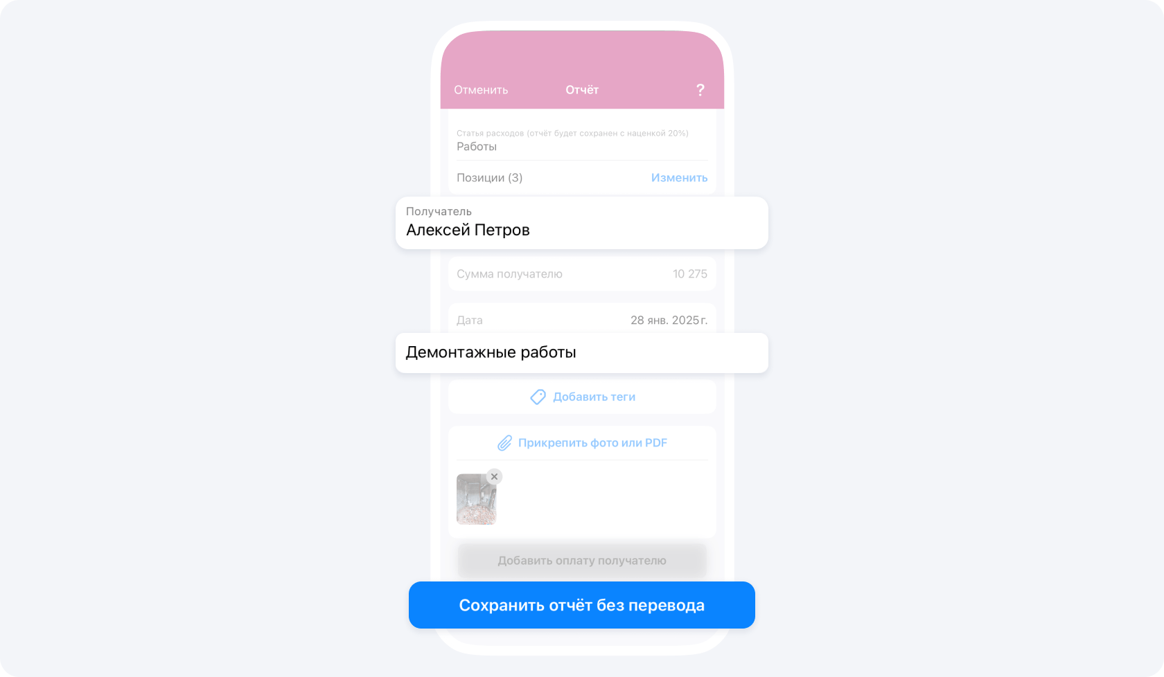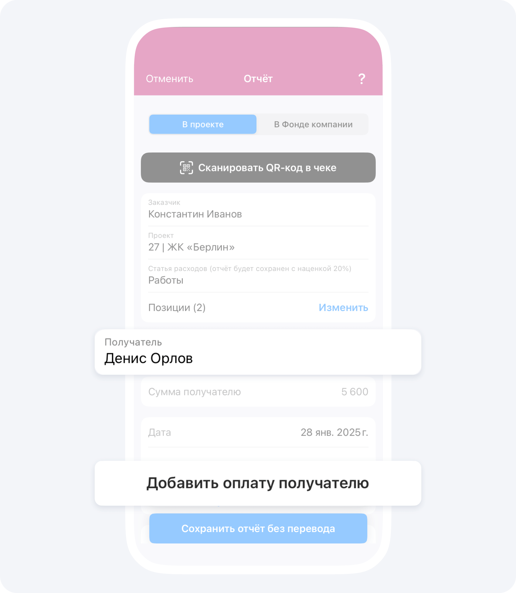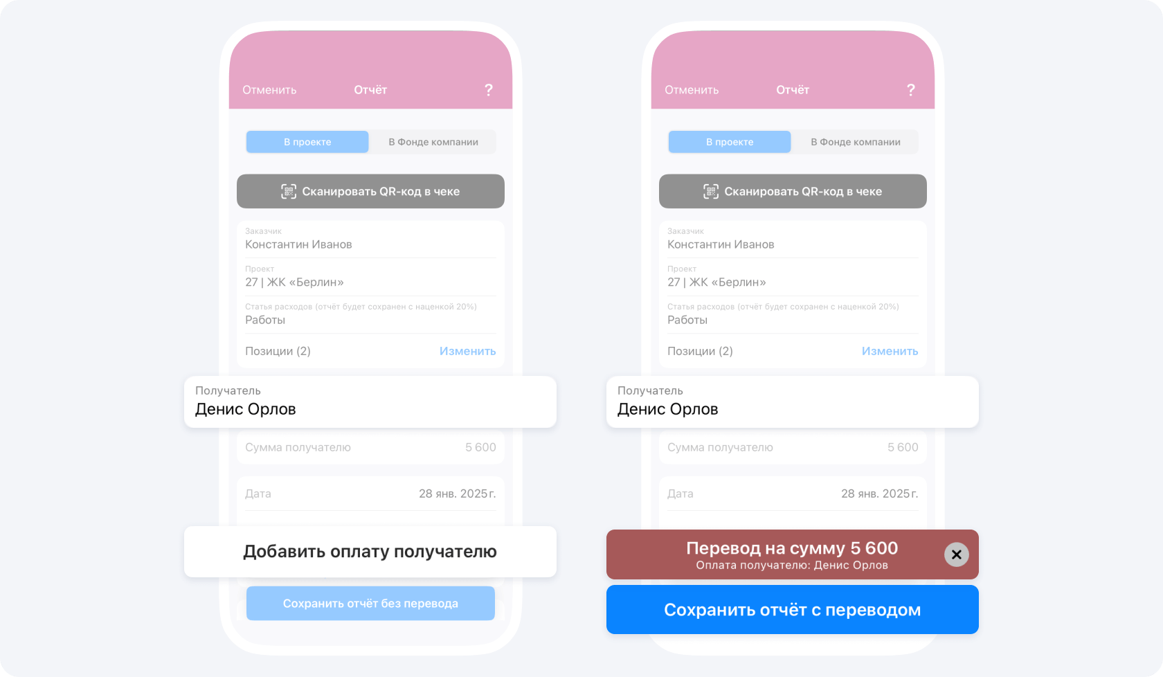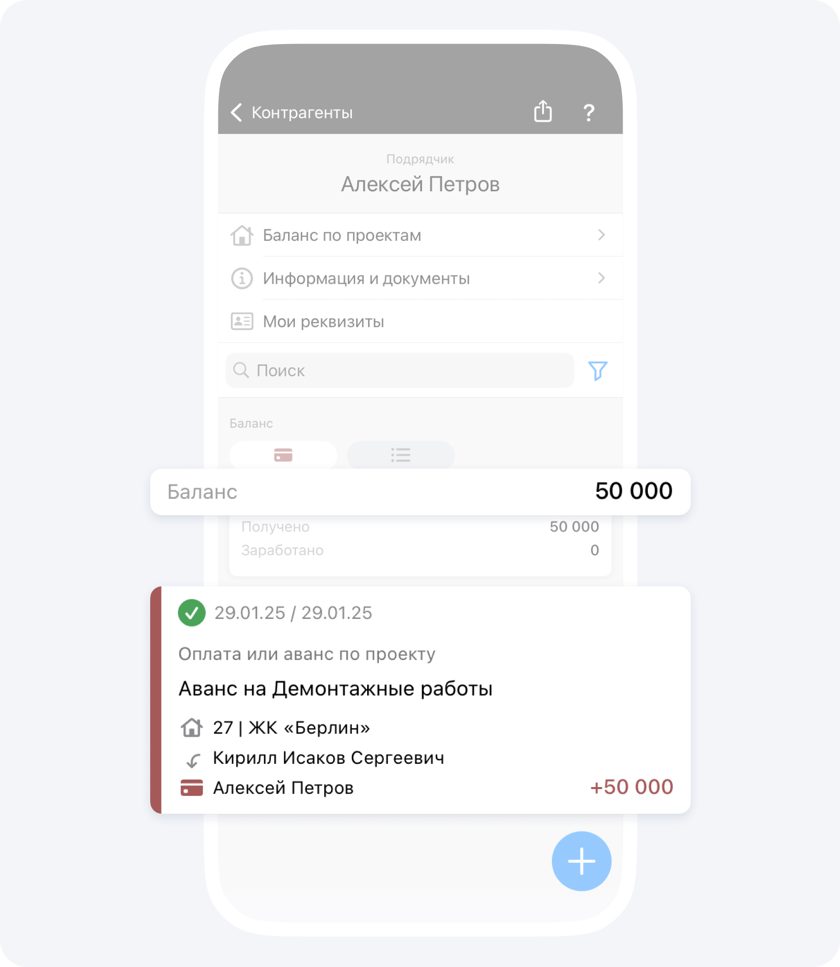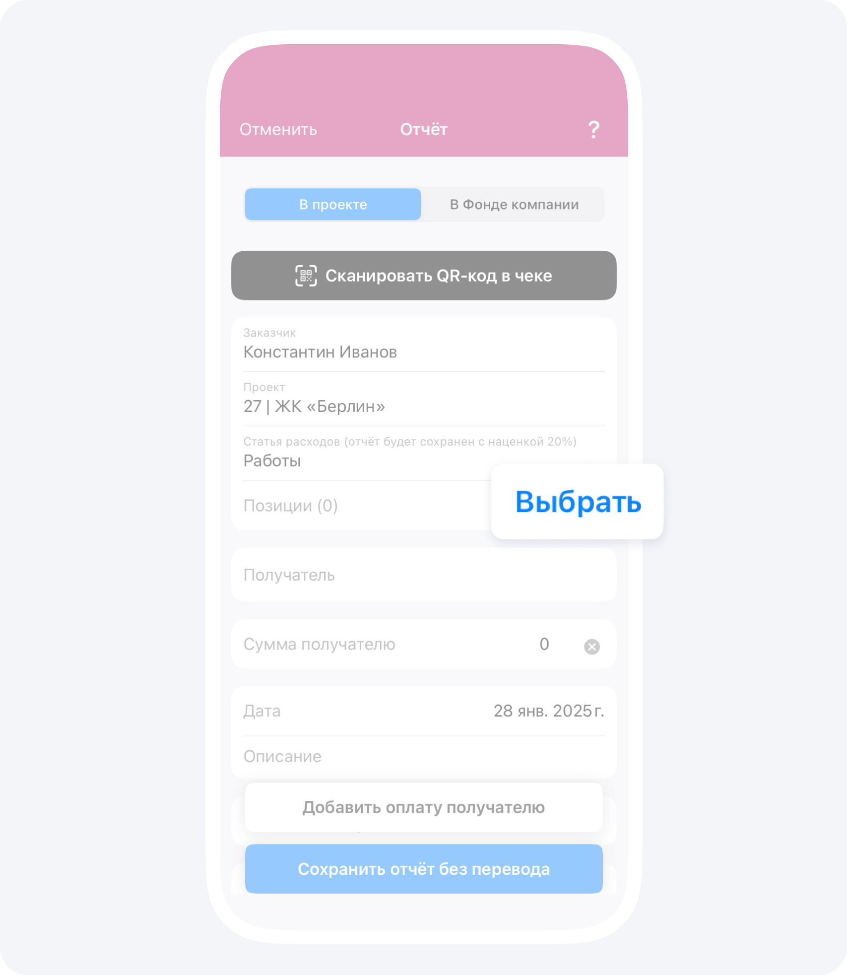 Если ранее вас авансировали по данному объекту, после подтверждения события Отчёт руководителем проекта, ваш положительный баланс изменится на сумму Отчёта.