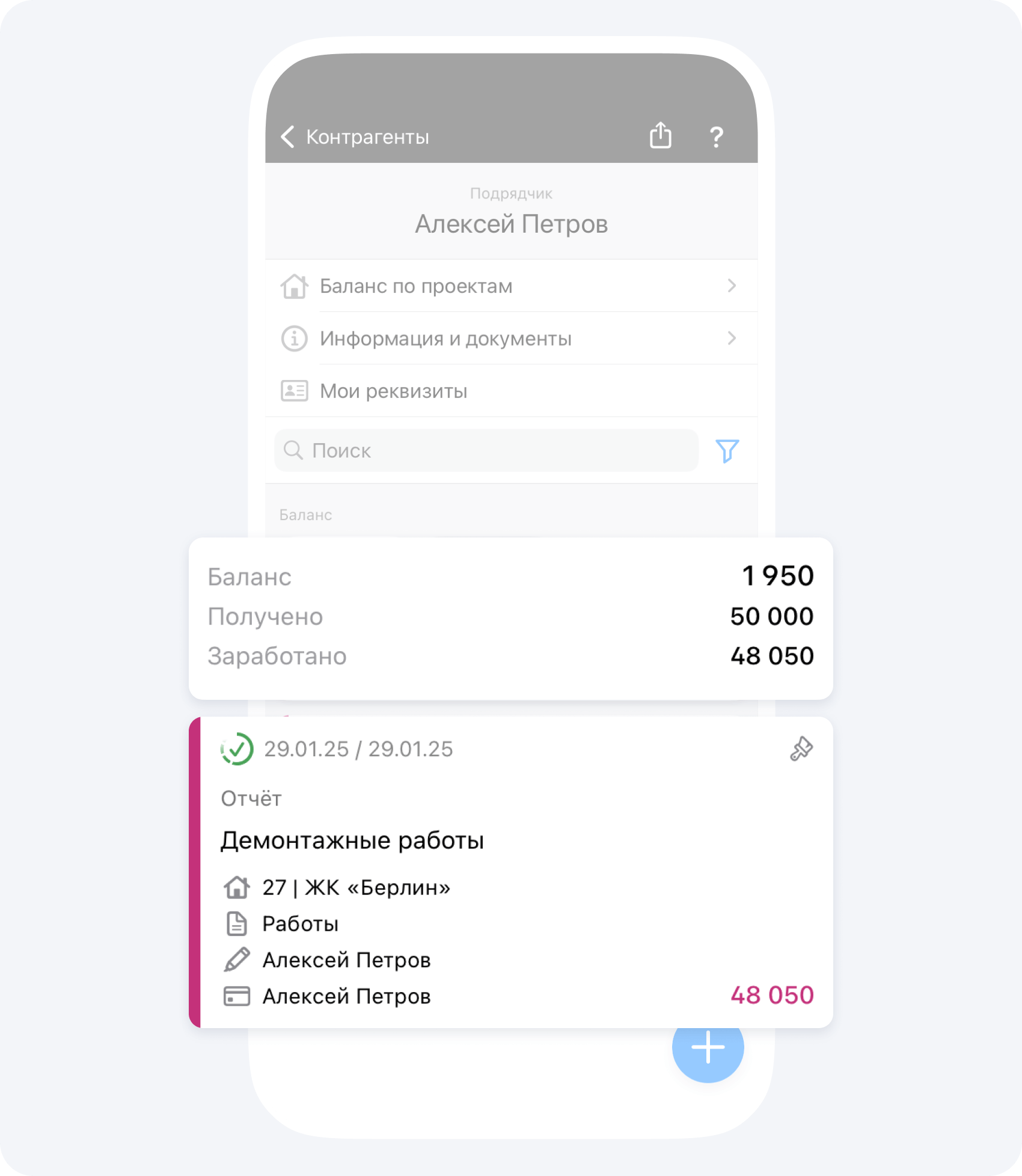 После подтверждения события Отчёт руководителем проекта вы будет видеть сумму, которую вам должны за выполнение работ, и свой актуальный баланс.