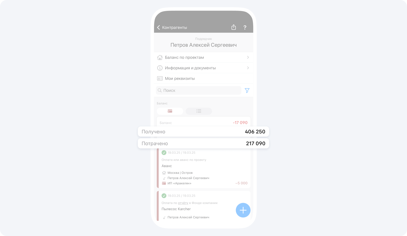 Суммы Переводов, в которых вы являетесь отправителем, а получателем указан другой контрагент, например, поставщик — отображаются в графе Потрачено.