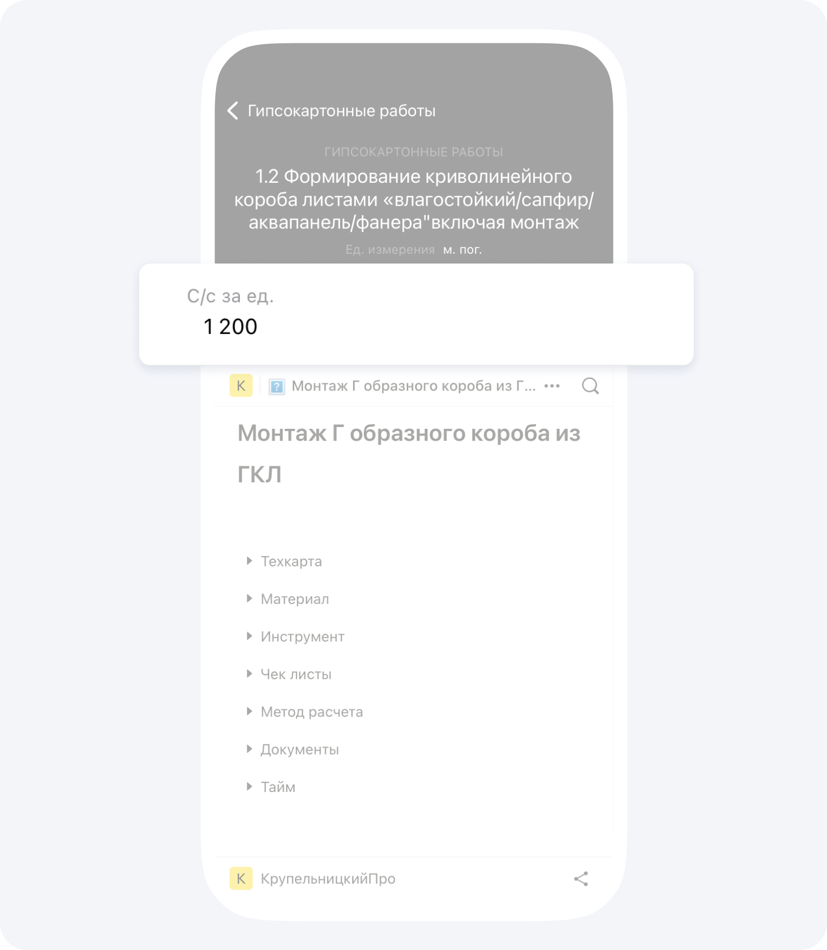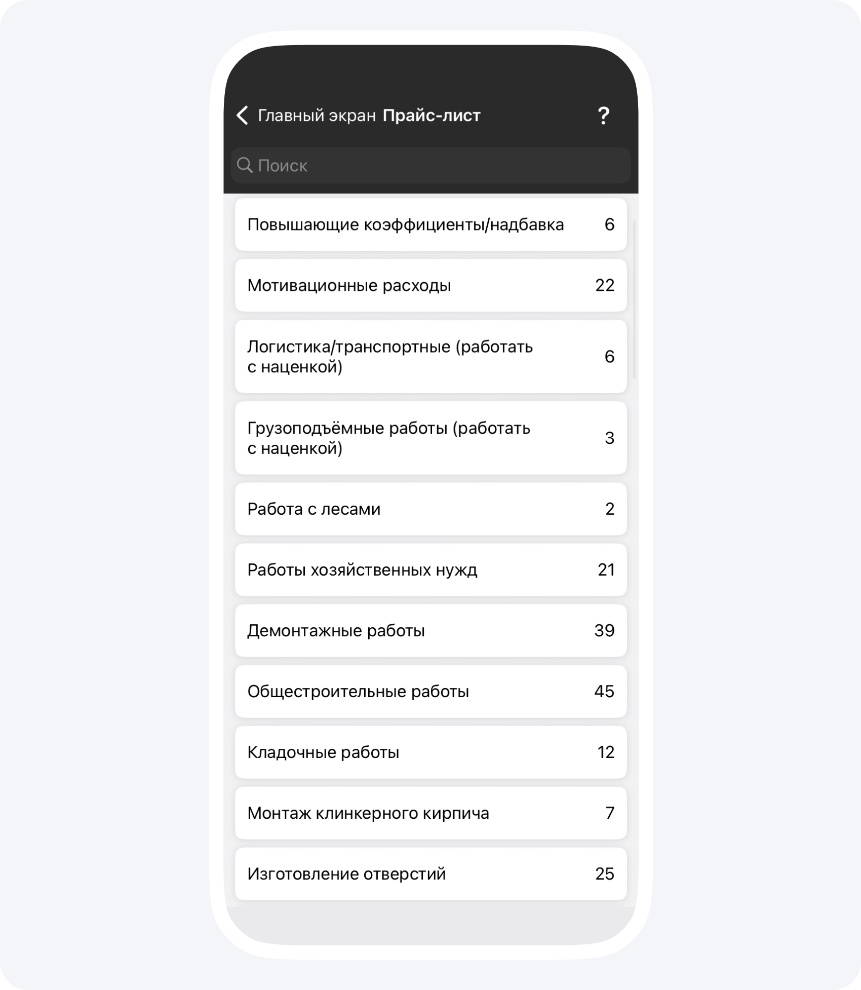 Категория контрагентов Подрядчик, Поставщик, Сотрудник видит полный перечень прайс-листа с себестоимостью за единицу по каждой позиции и технологические карты по ним, если их добавили.