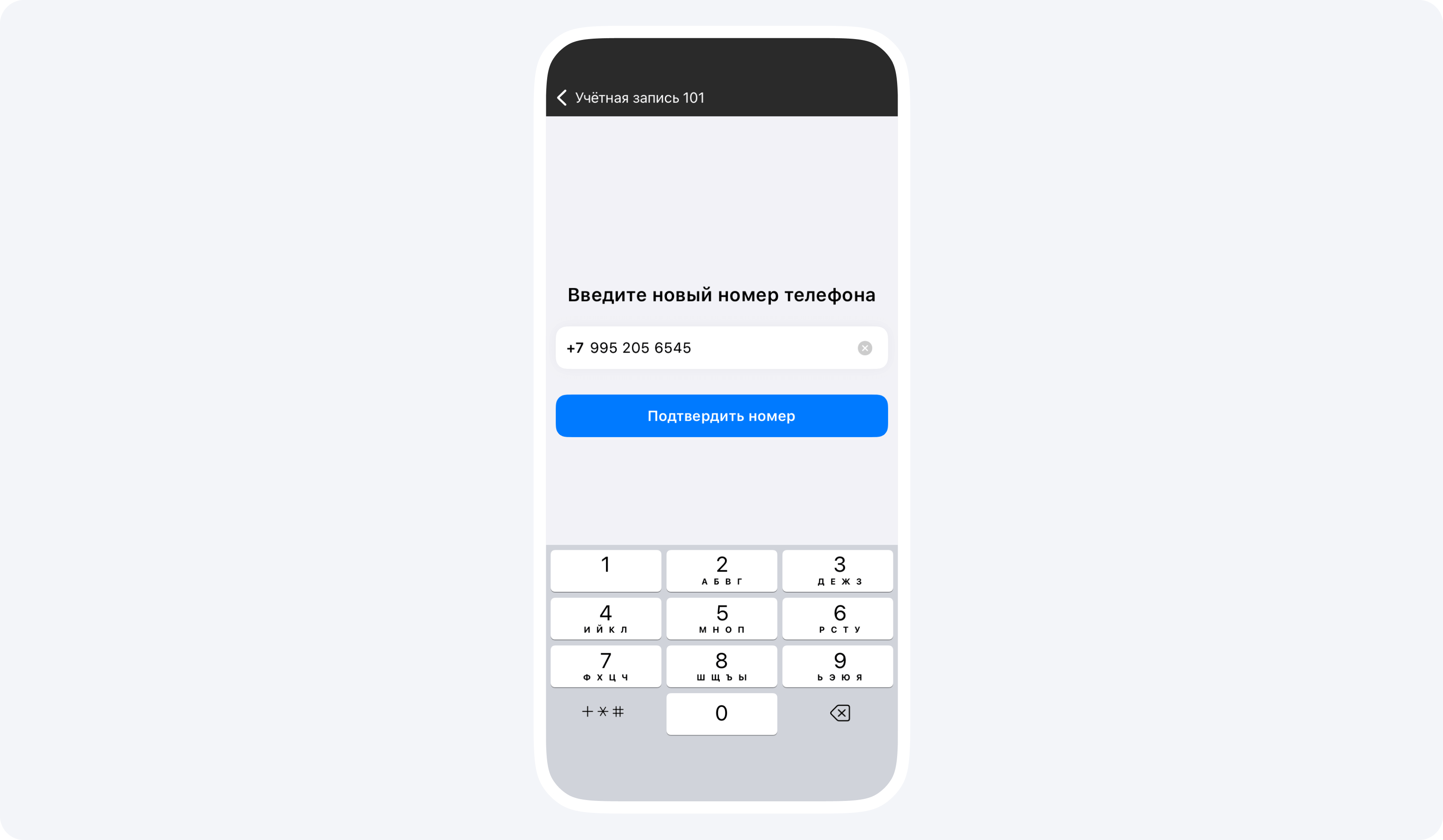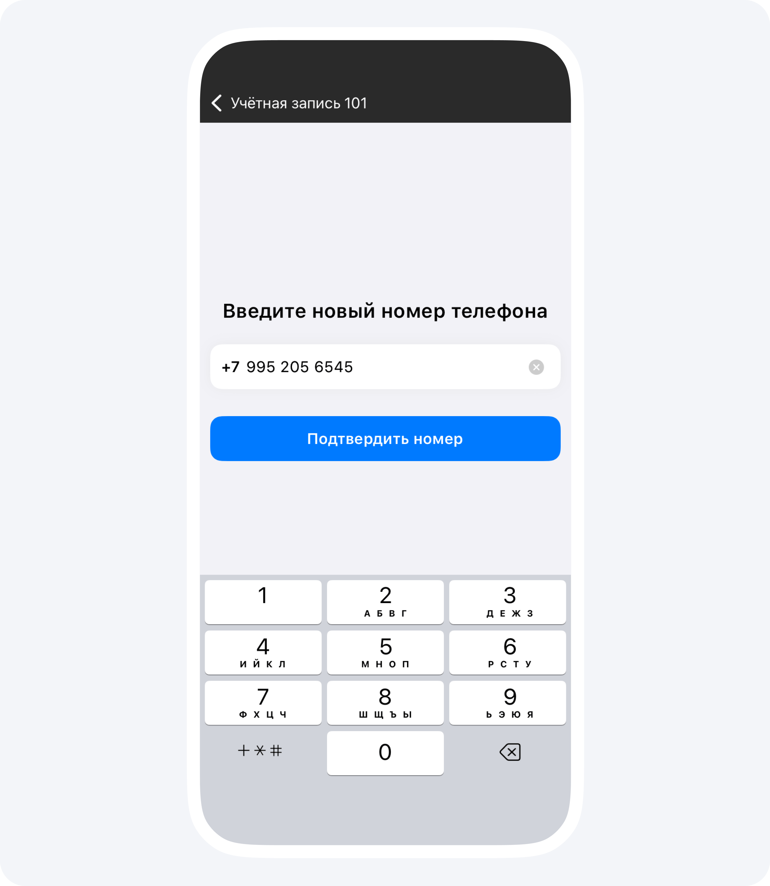 - Введите новый номер телефона и нажмите кнопку Подтвердить номер