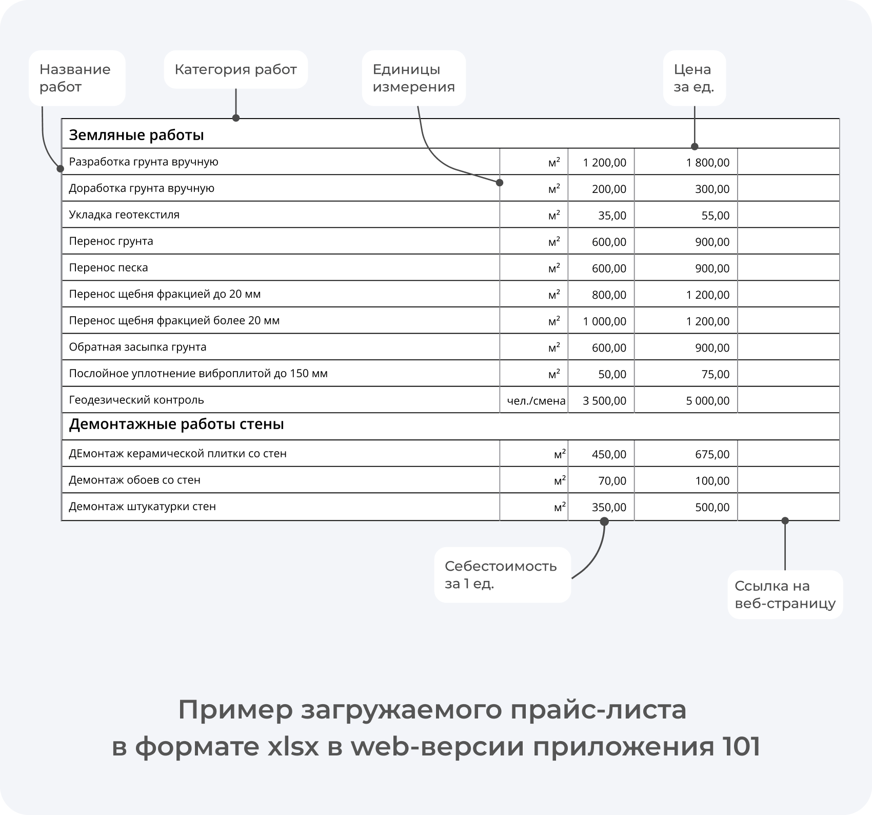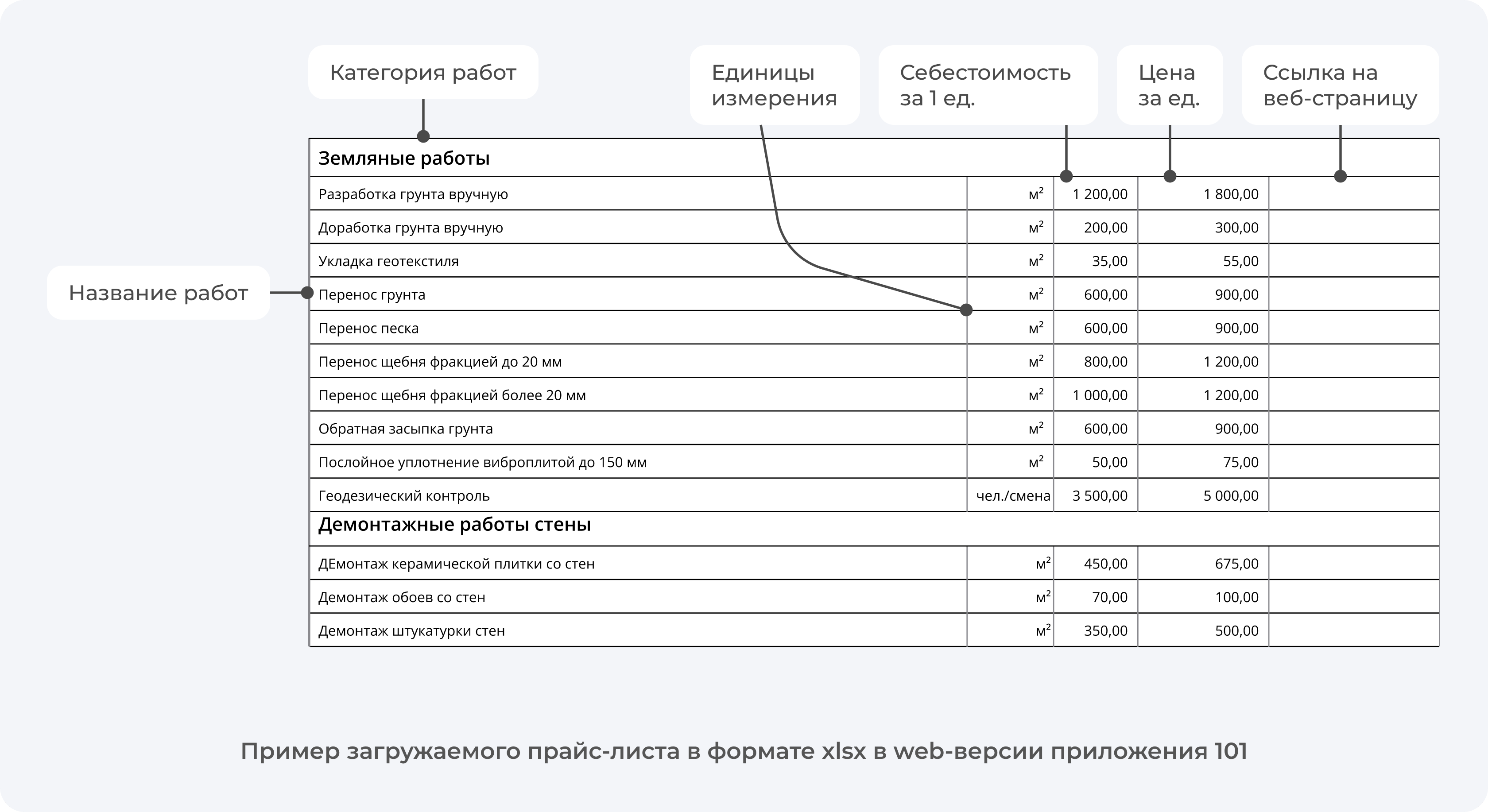- В прайс-листе должна быть хотя бы одна категория (обобщенное наименование вида работ, например малярные работы)