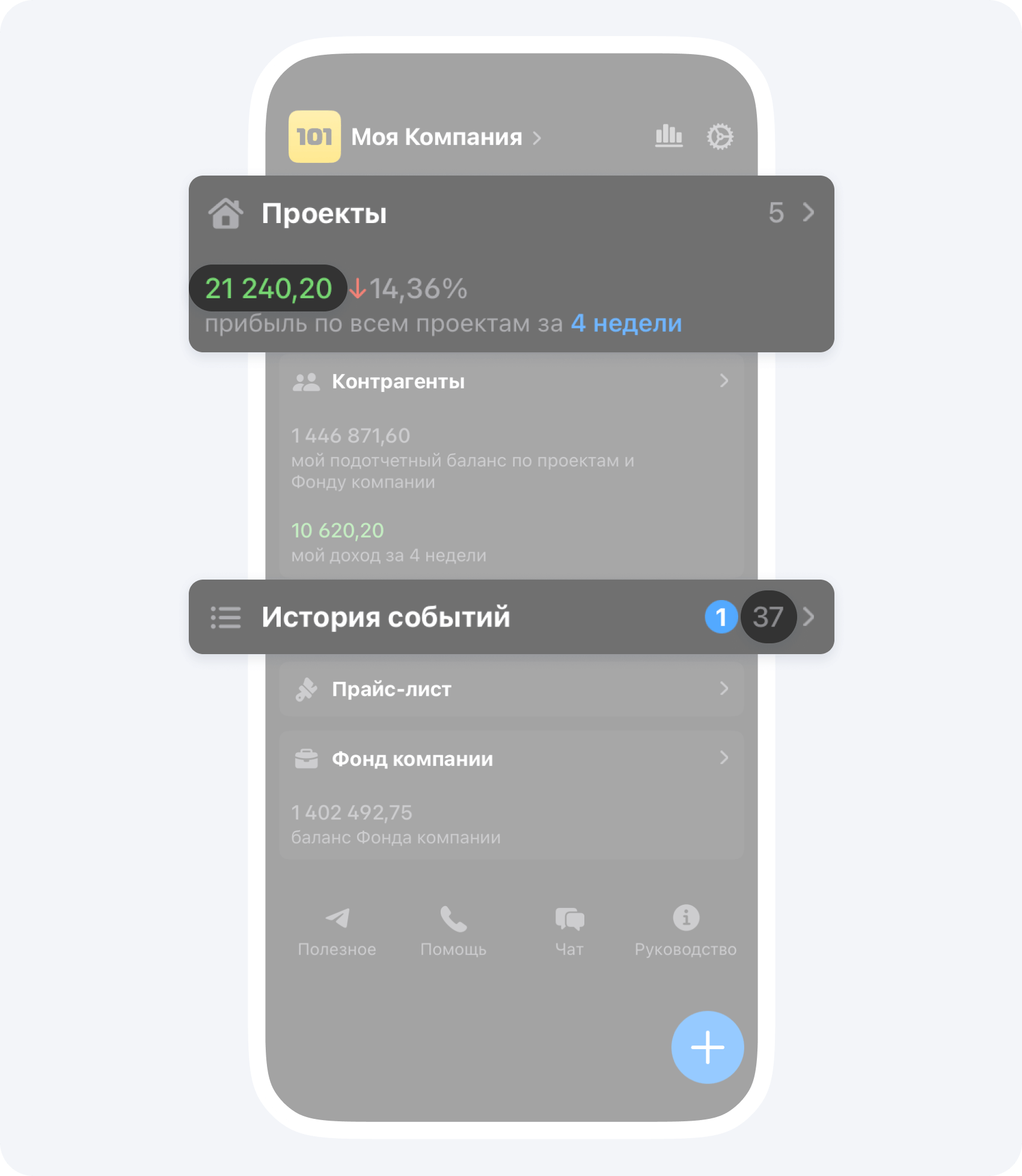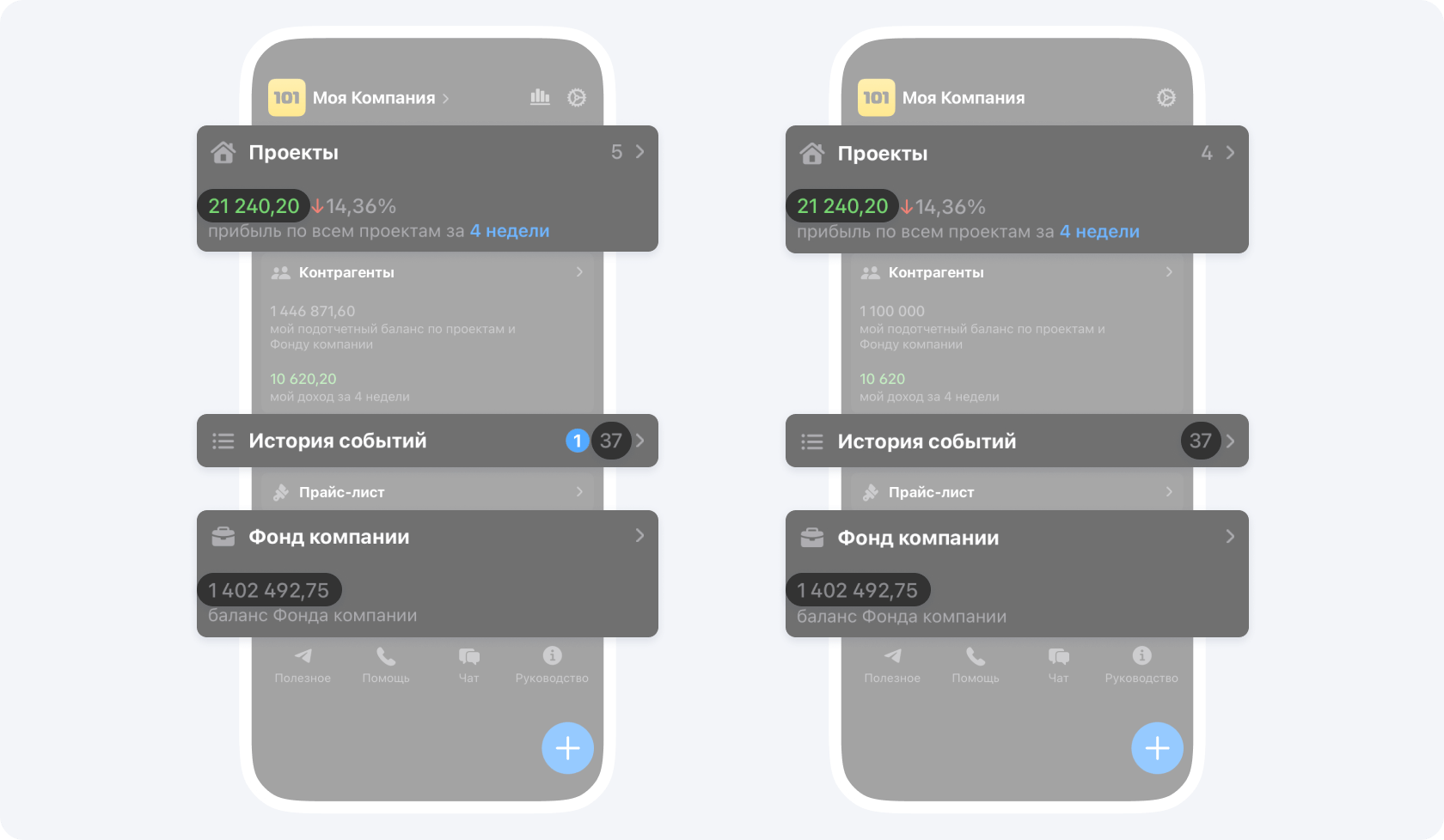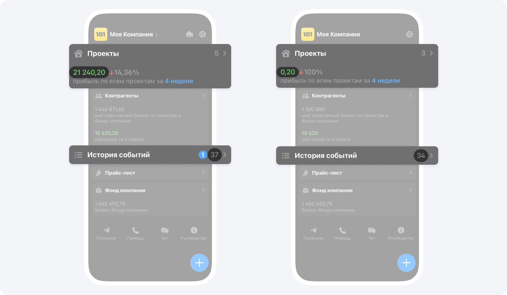 Если партнёр добавлен во все проекты и раздел Фонд Компании, количество событий в разделе История событий и балансы в разделах Проекты у партнера и основателя компании будут одинаковыоснователя компании будут одинаковы.