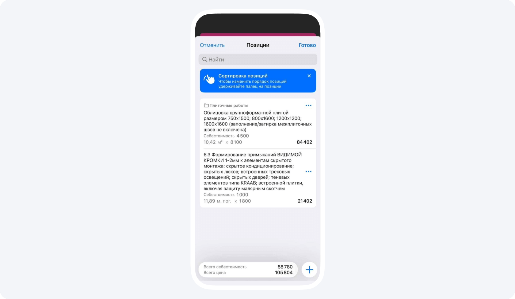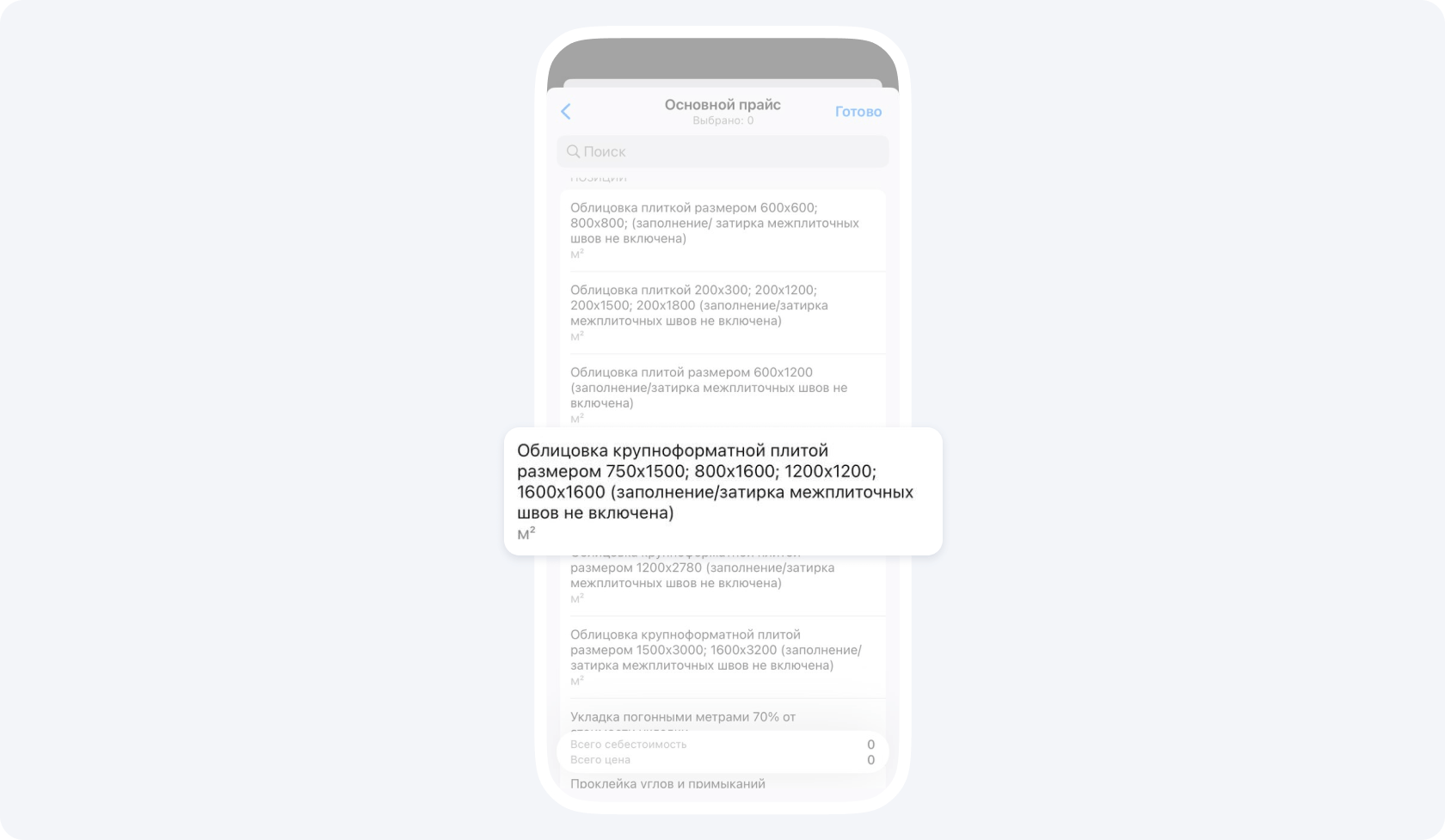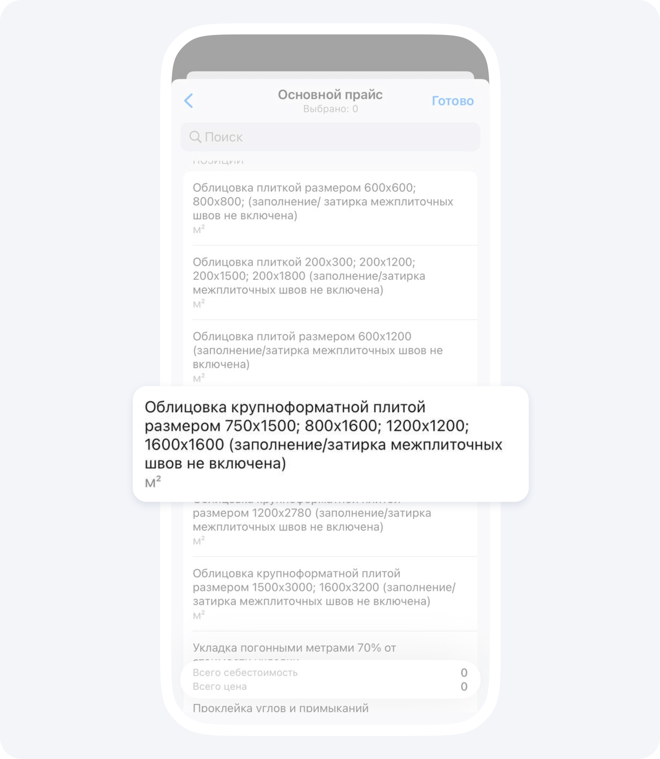 2. Выберите позицию, для которой вам требуется сделать замеры прямо на объекте.