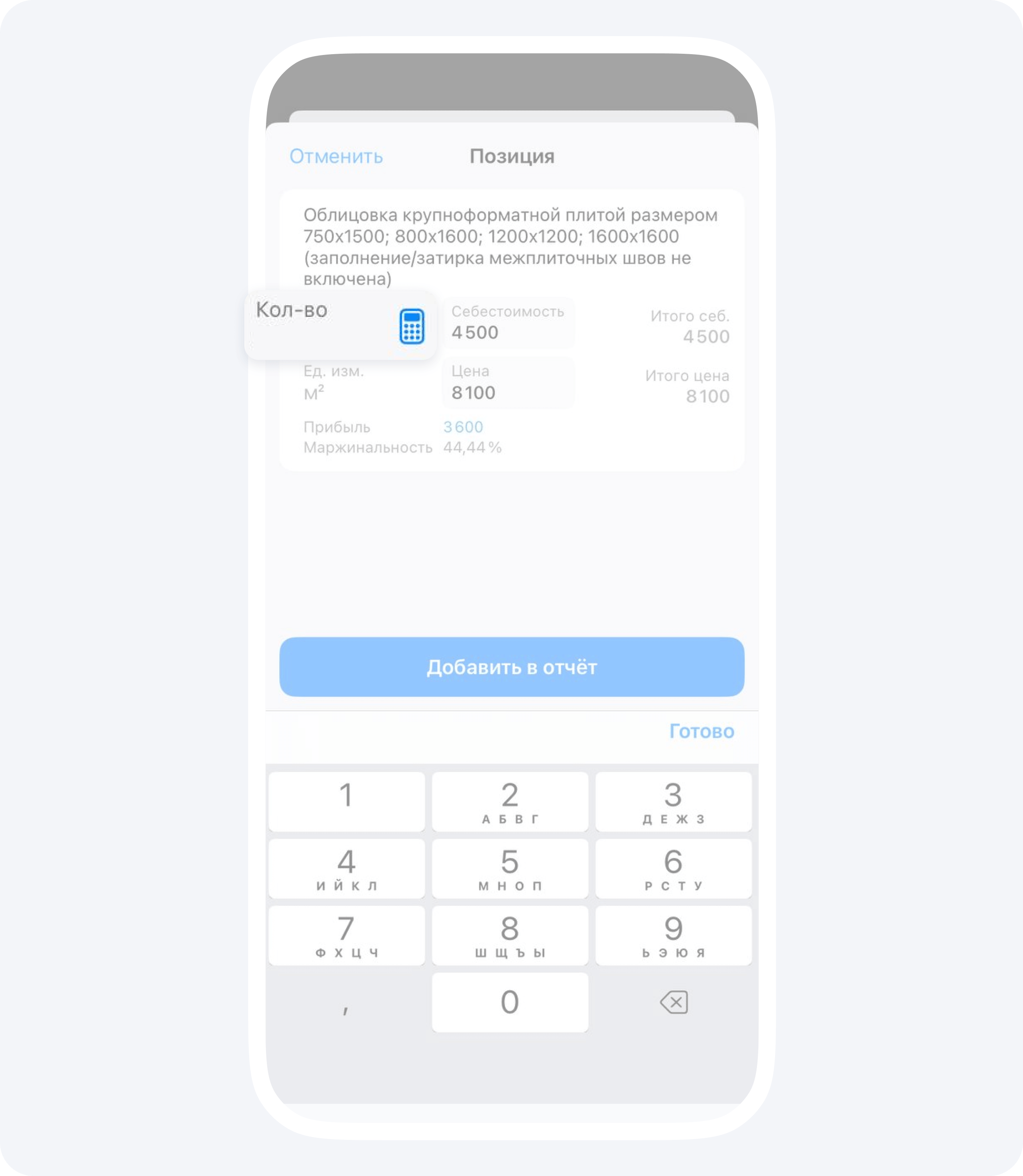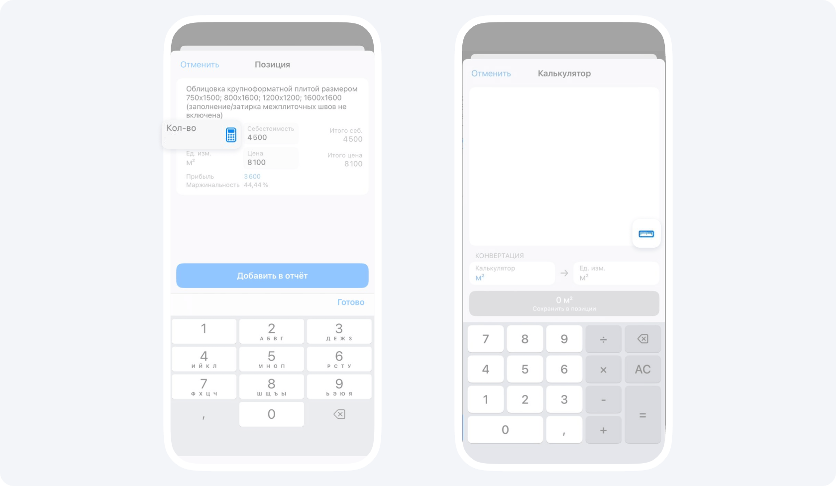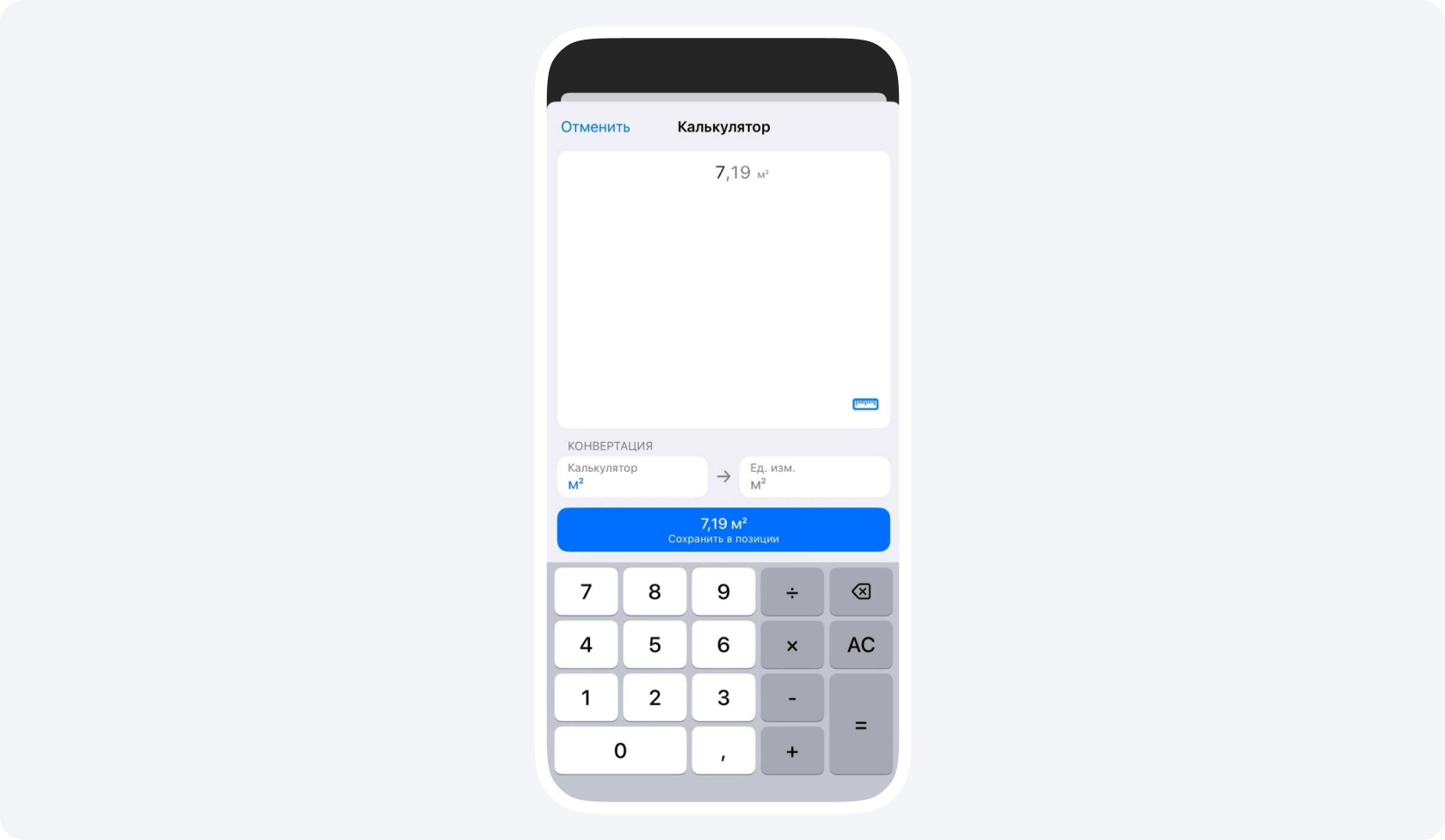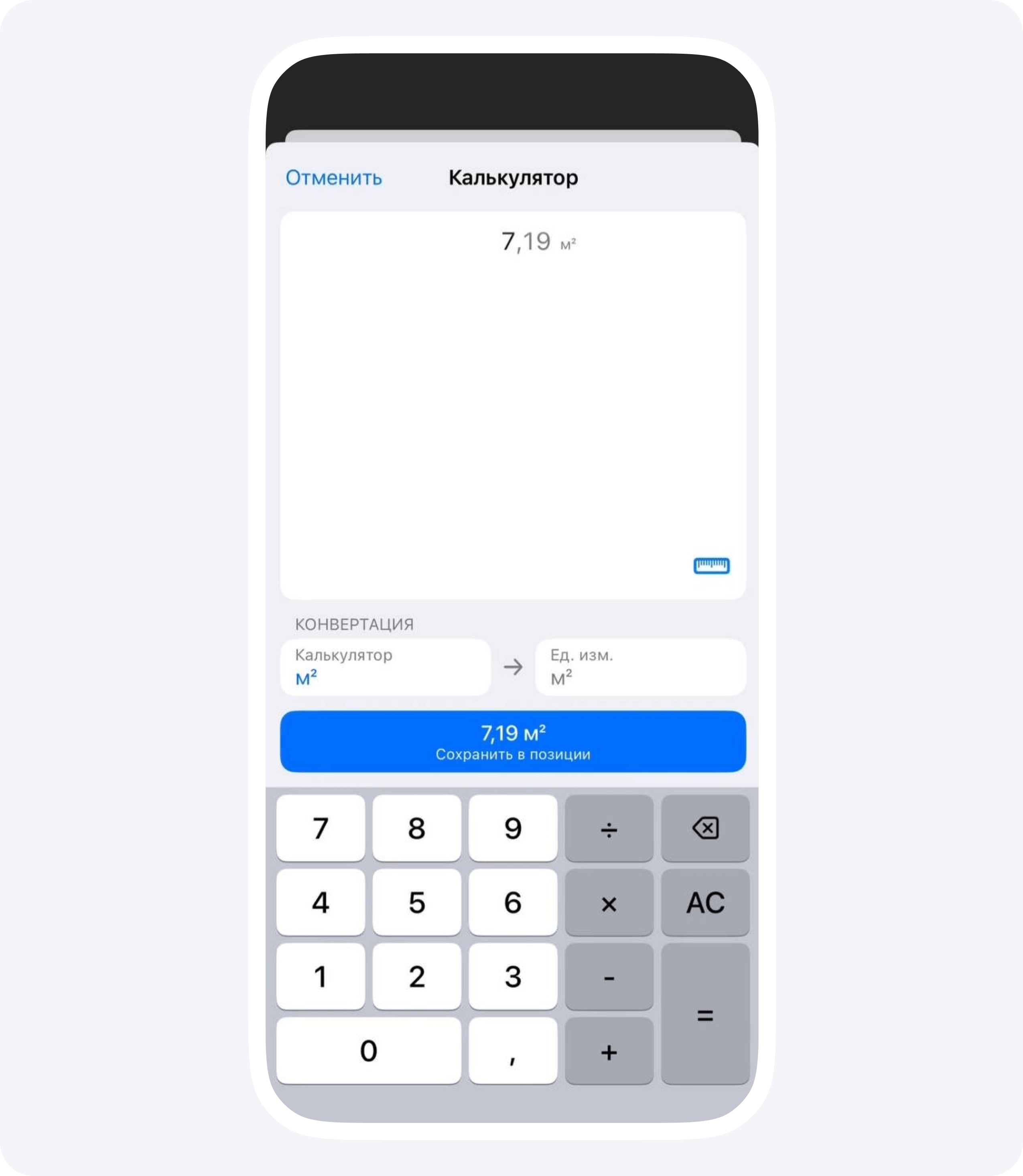 В нем вы можете удобно складывать и вычитать, ведя несколько расчетов параллельно. Это может быть очень полезно на объекте, где под рукой нет блокнота, а обычный калькулятор не всегда удобен.