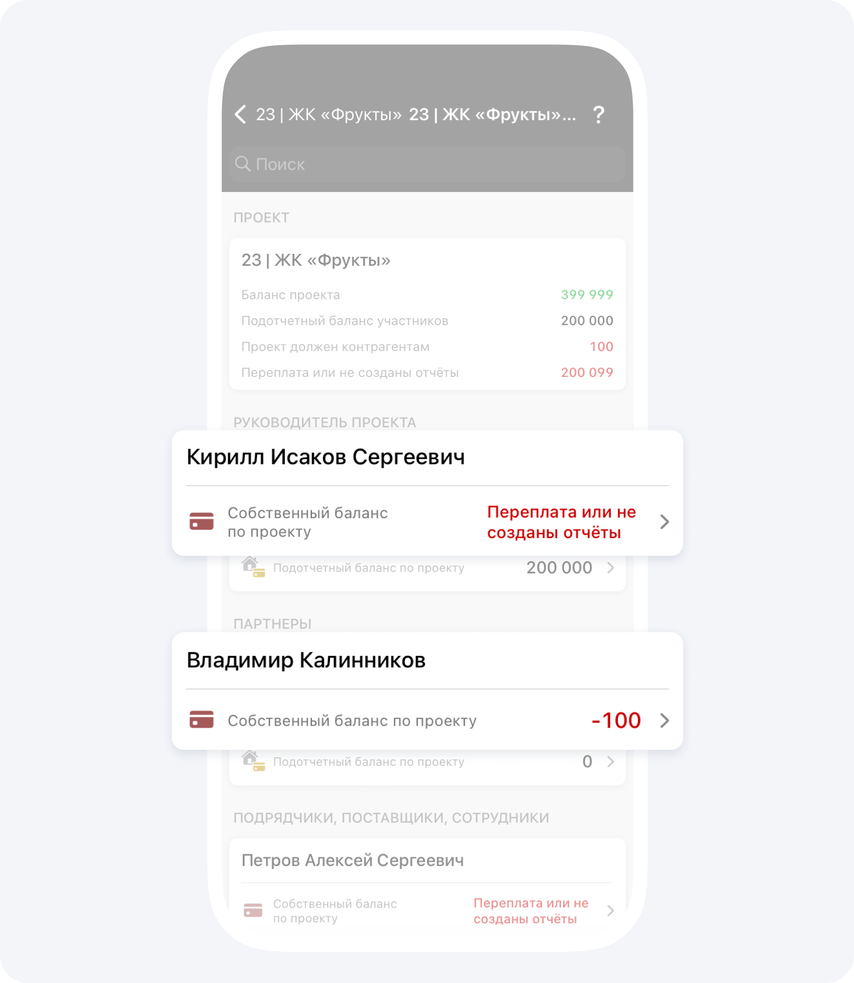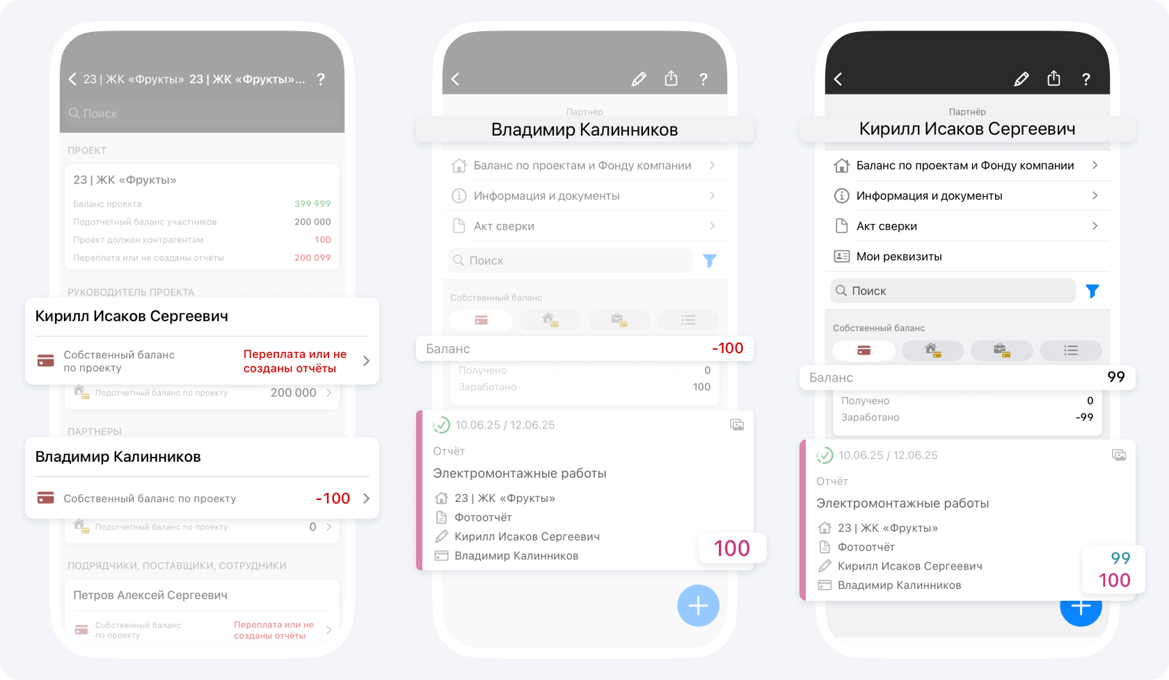 - У руководителя с прибыли списывается сумма, равная размеру мотивации. В интерфейсе приложения это отображается как «Переплата или не созданы отчёты» на собственном балансе руководителя.