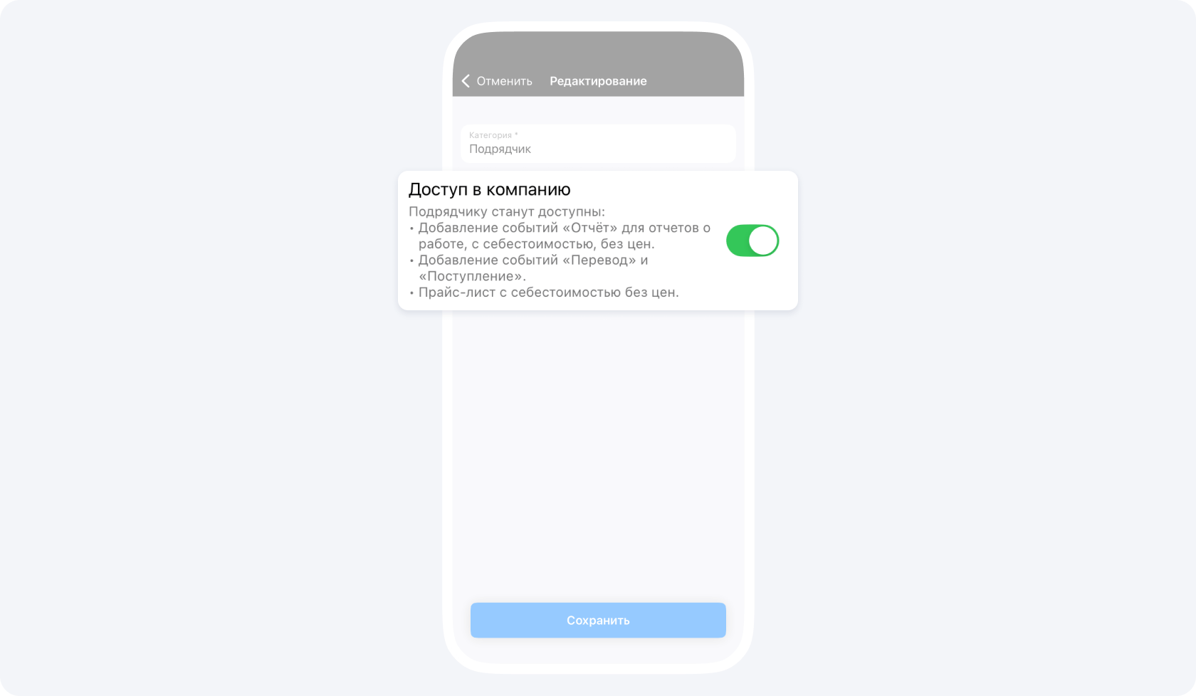 Мы стремимся сделать управление контрагентами ещё удобнее. В будущих обновлениях появится возможность редактировать привязку пользователей к карточке контрагента — вы сможете отвязать случайно добавленных пользователей, добавлять актуальных, а также архивировать неактуальные карточки контрагентов.