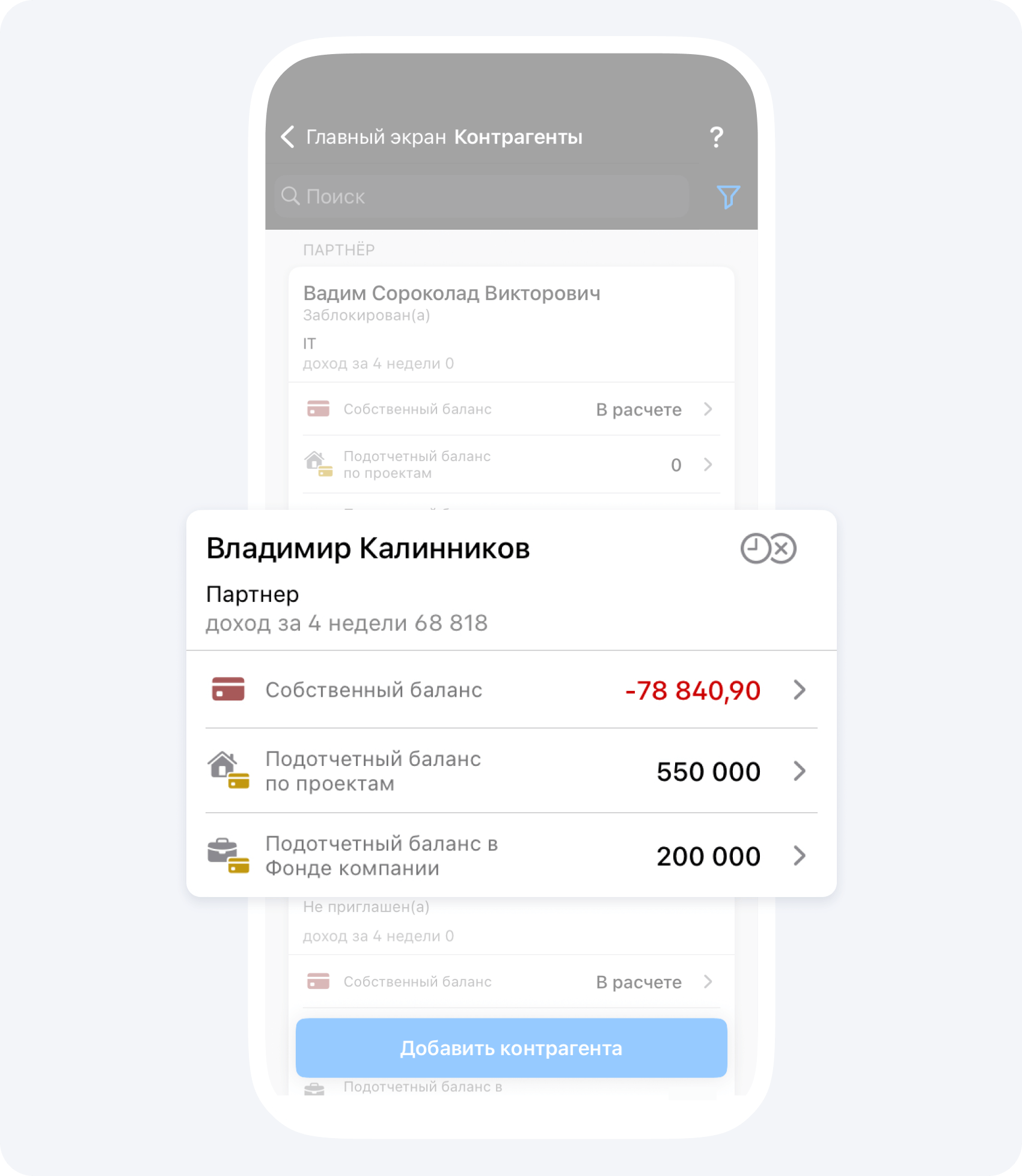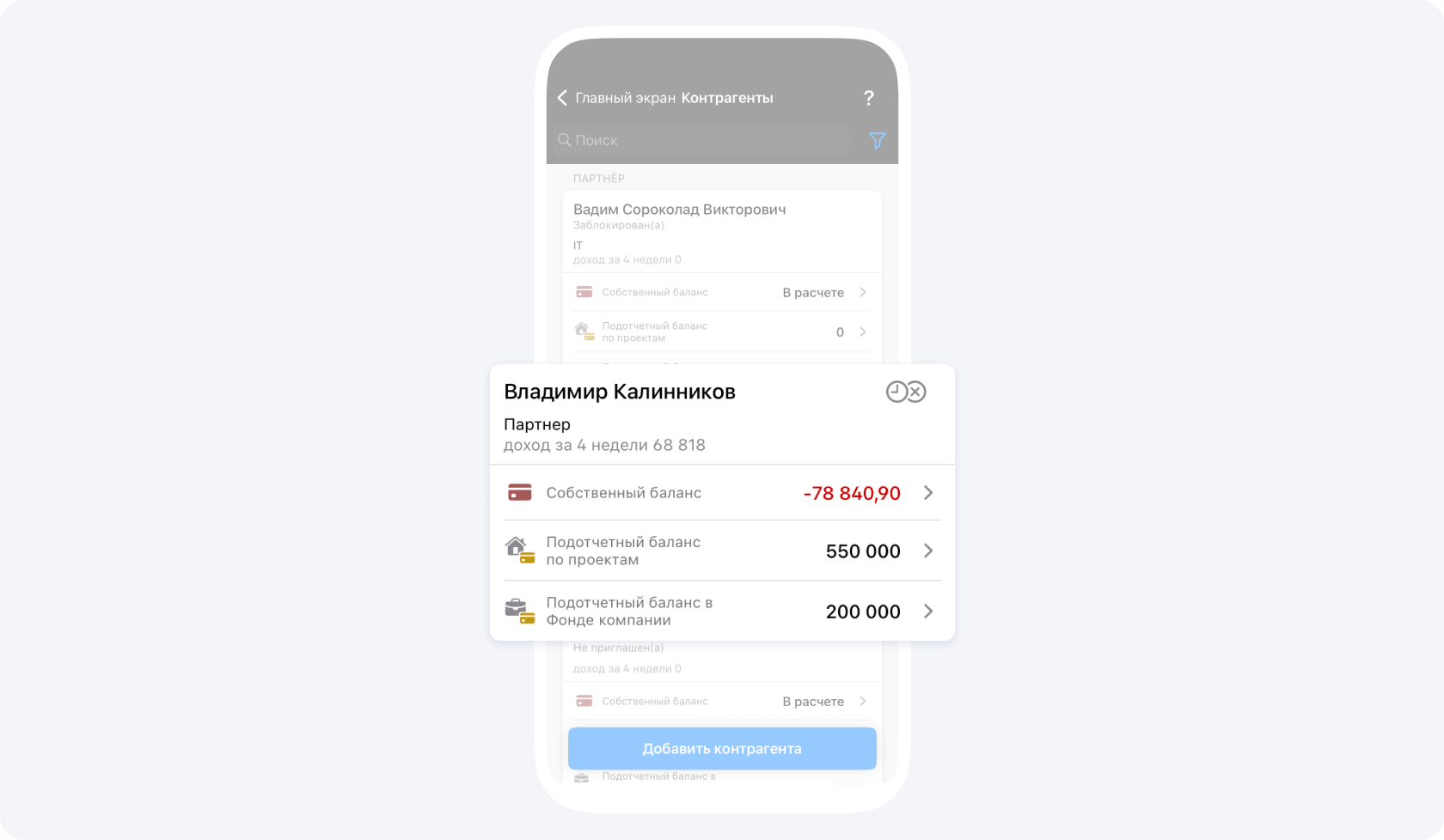 - отчётов по Фонду компании, в которых этот контрагент также указан как получатель.