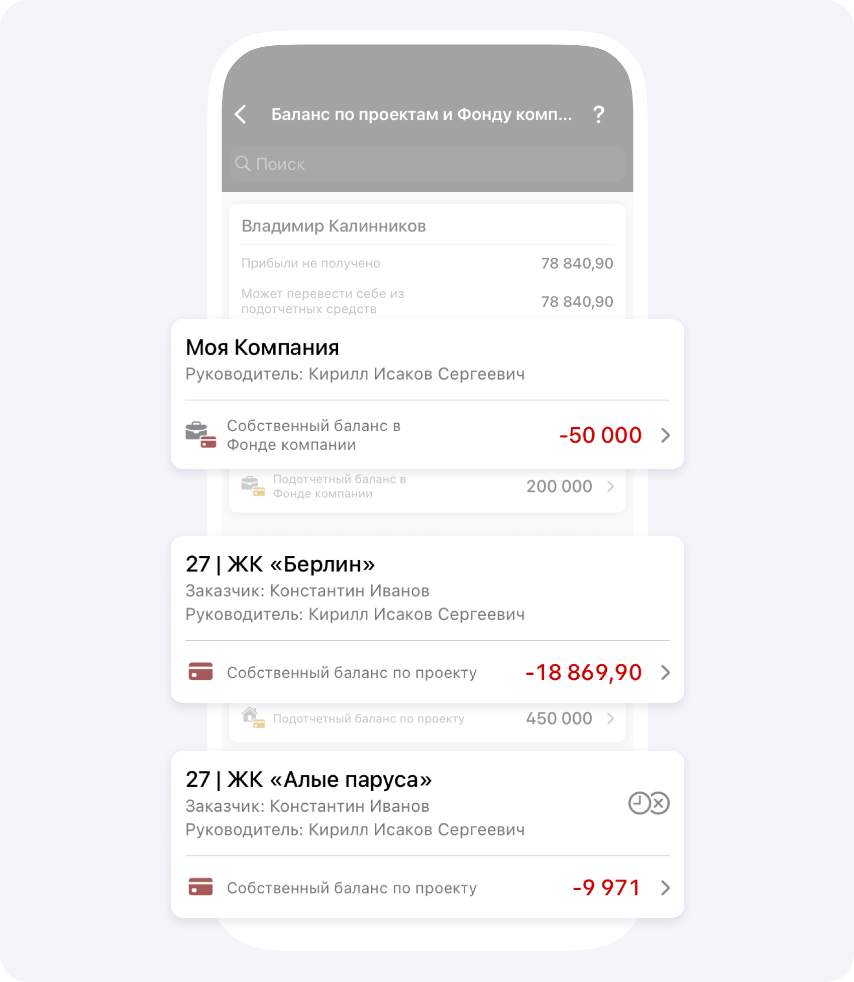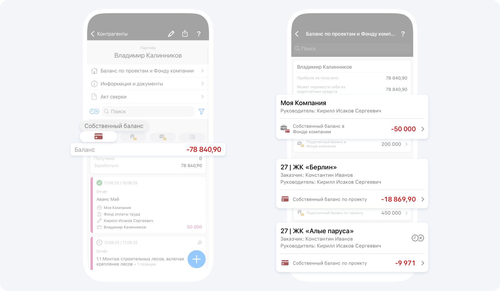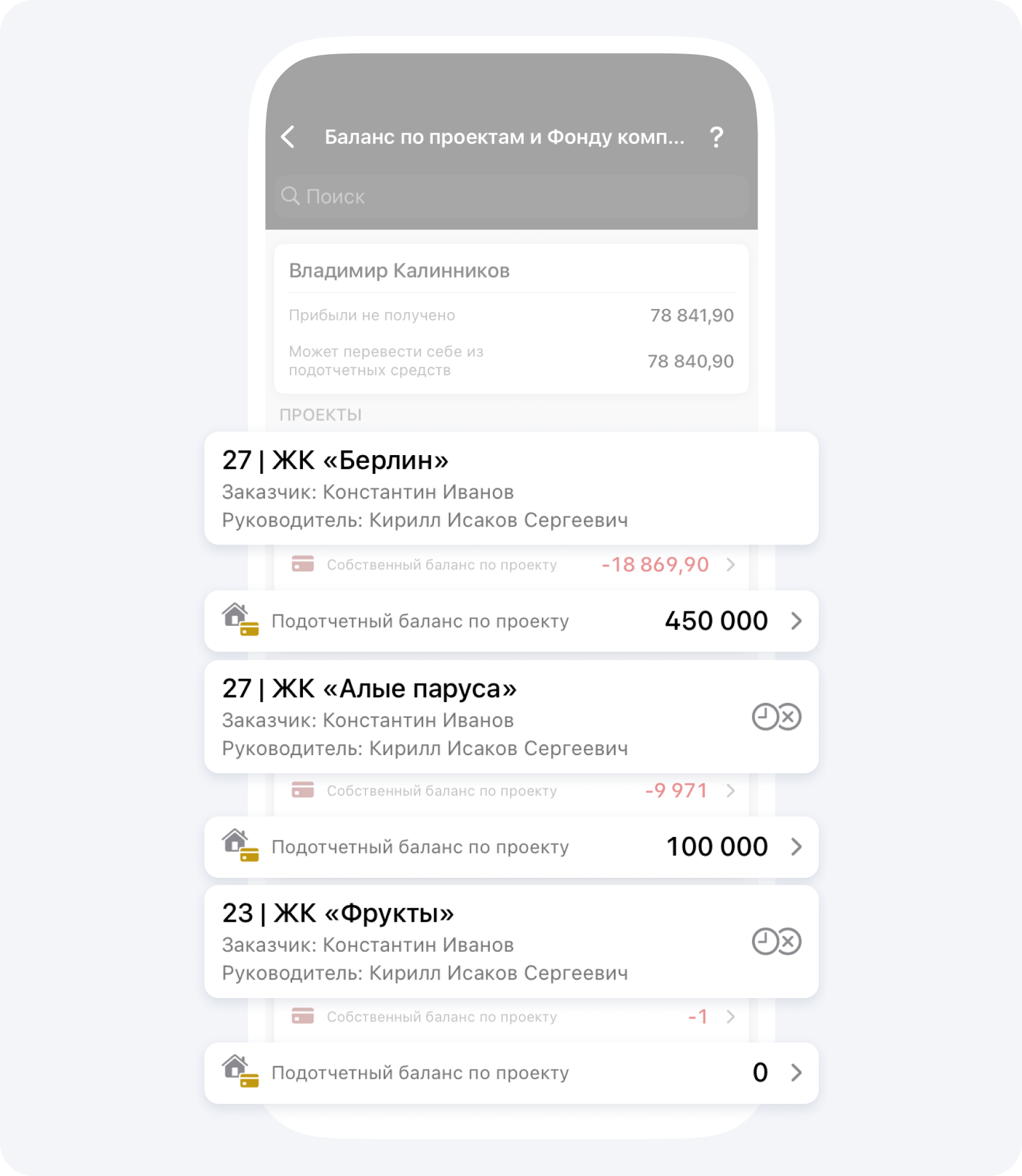 На подотчётном балансе по проектам отображаются средства сторонних контрагентов, находящиеся в вашем распоряжении или в распоряжении ваших партнёров.
