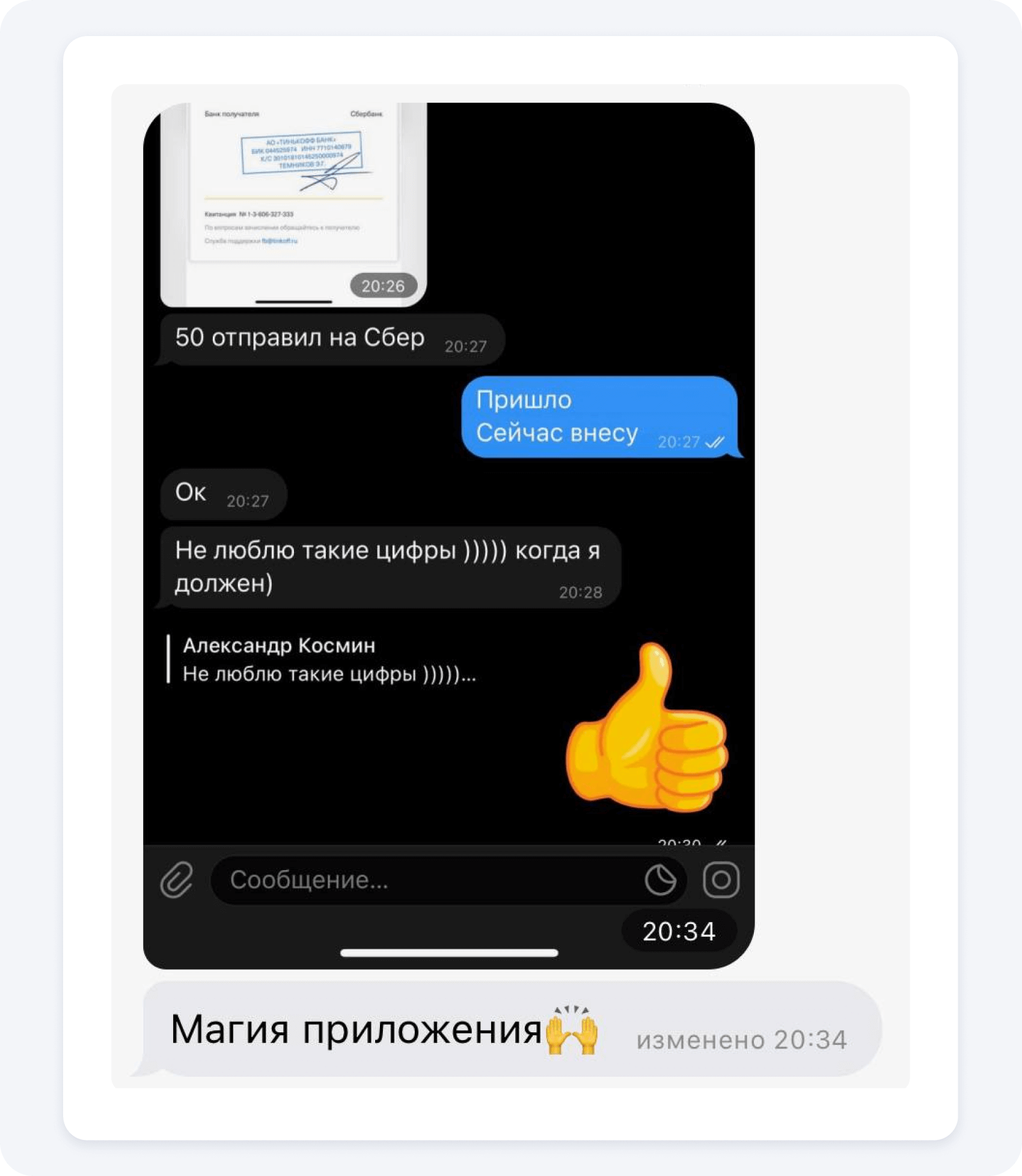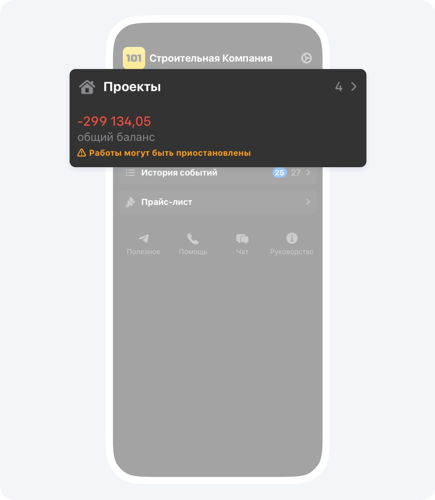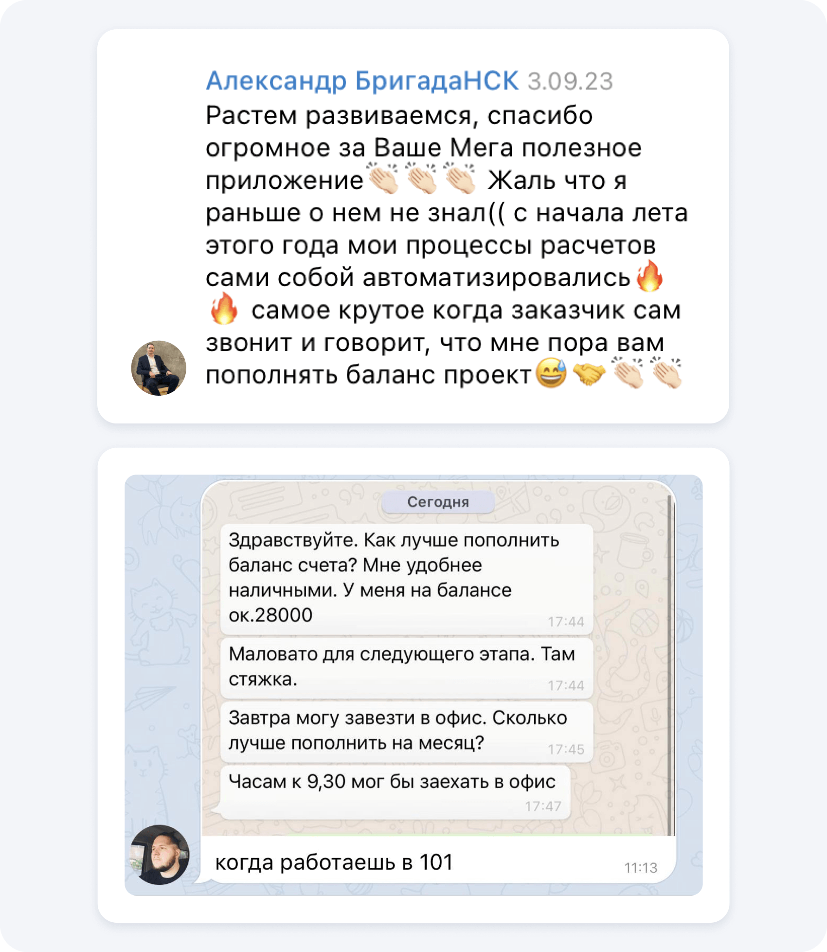 Заказчики все равно спрашивают вас, куда тратятся их деньги, а вы тратите море времени на объяснения и отчеты. Как только вы пригласите заказчика в приложение — у него появится ощущение контроля, потому что он будет видеть баланс своего проекта и все расходы в онлайне. Плюс психологически заказчику проще расставаться со своими деньгами дозированно, что и позволяет делать Приложение 101.