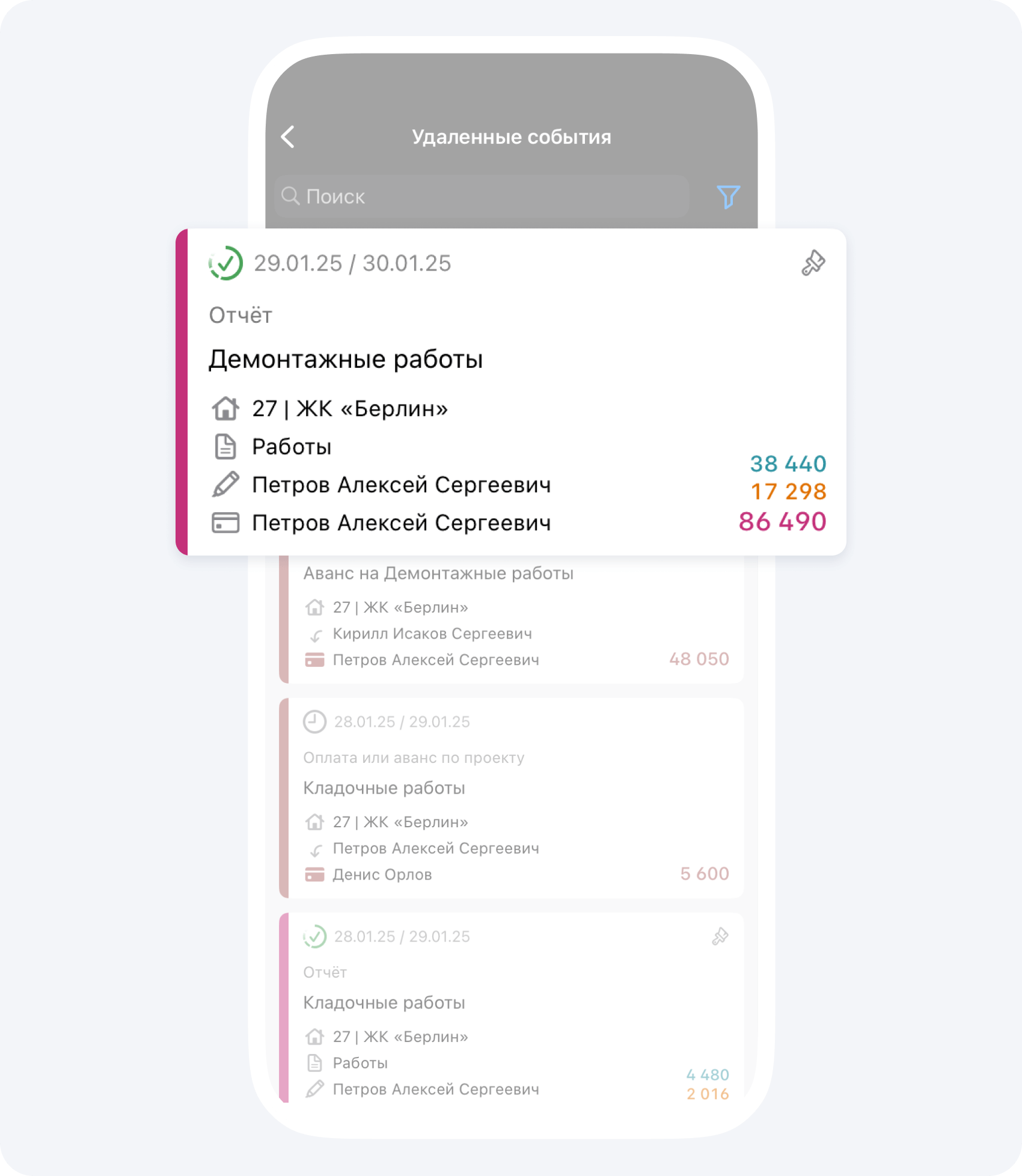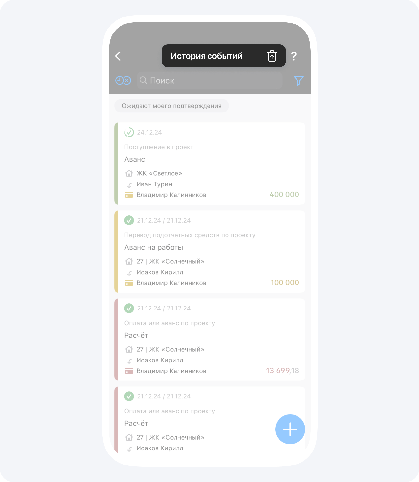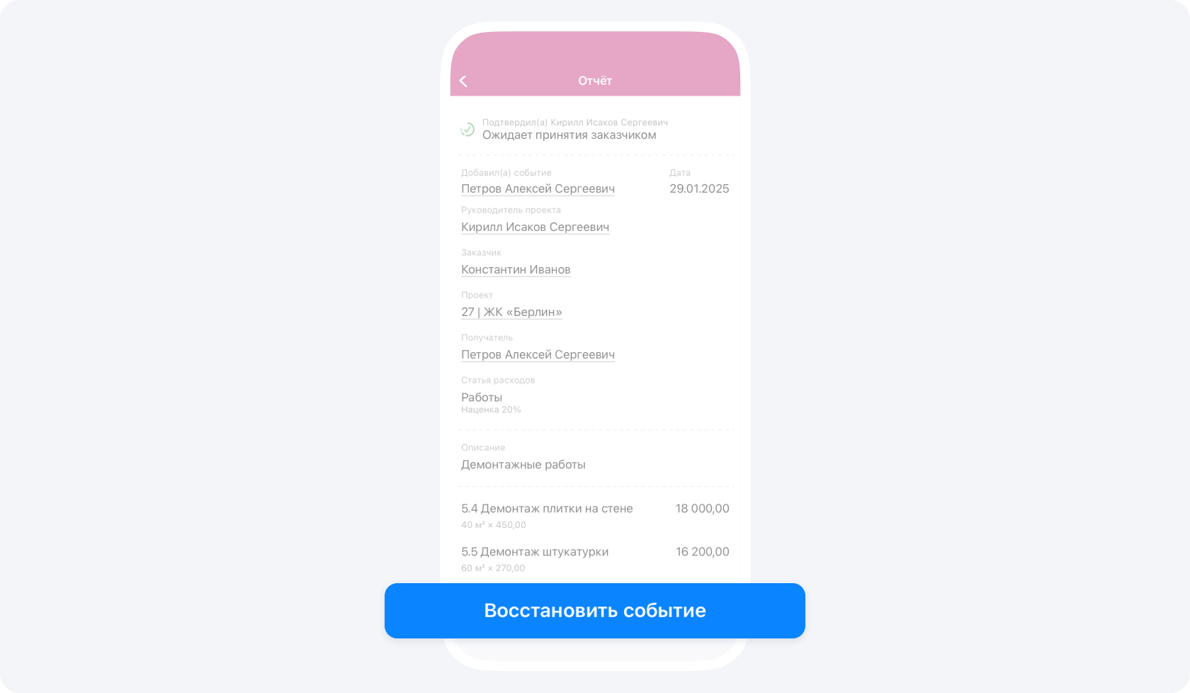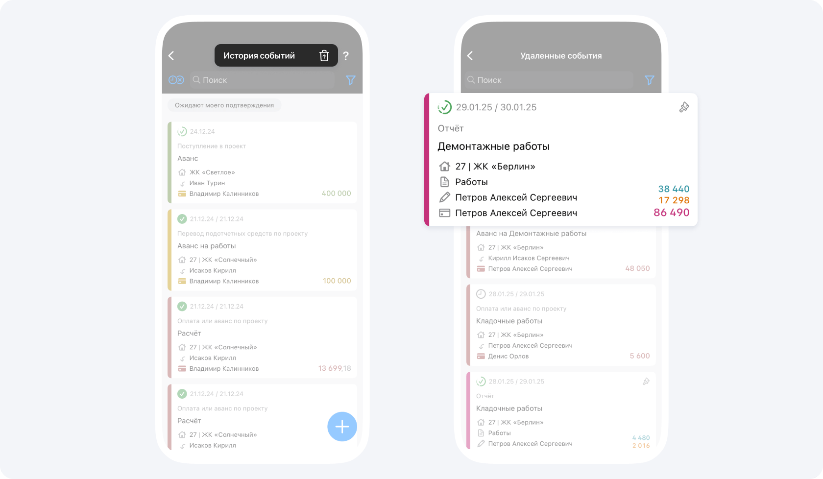 - руководители Фонда или проекта могут восстанавливать все события в Фонде или по проекту соответственно;