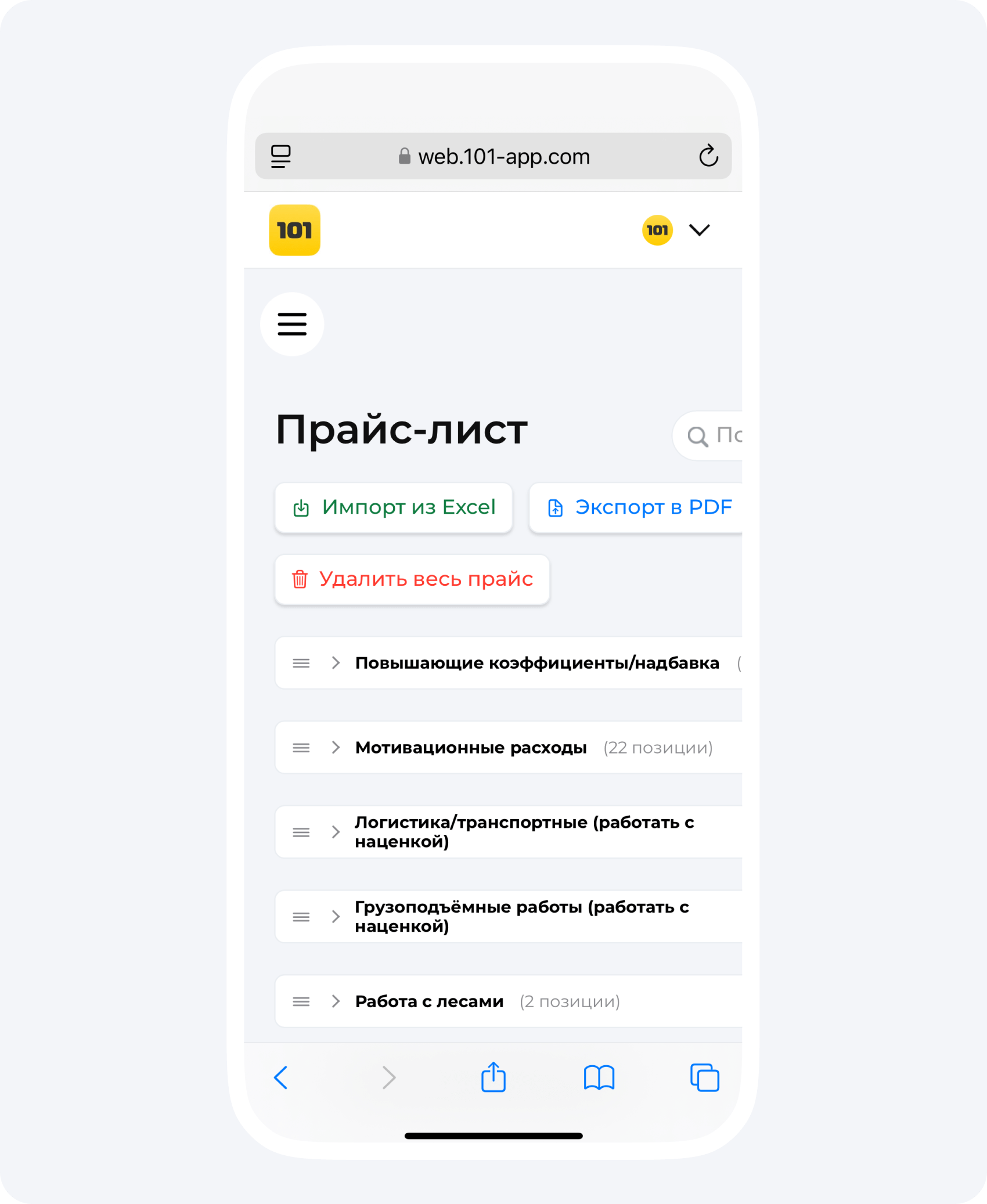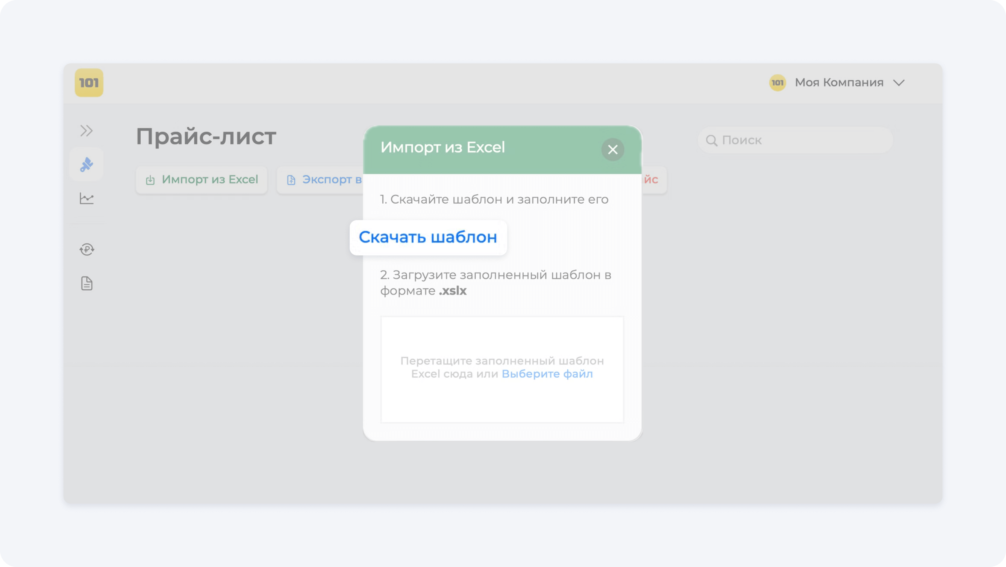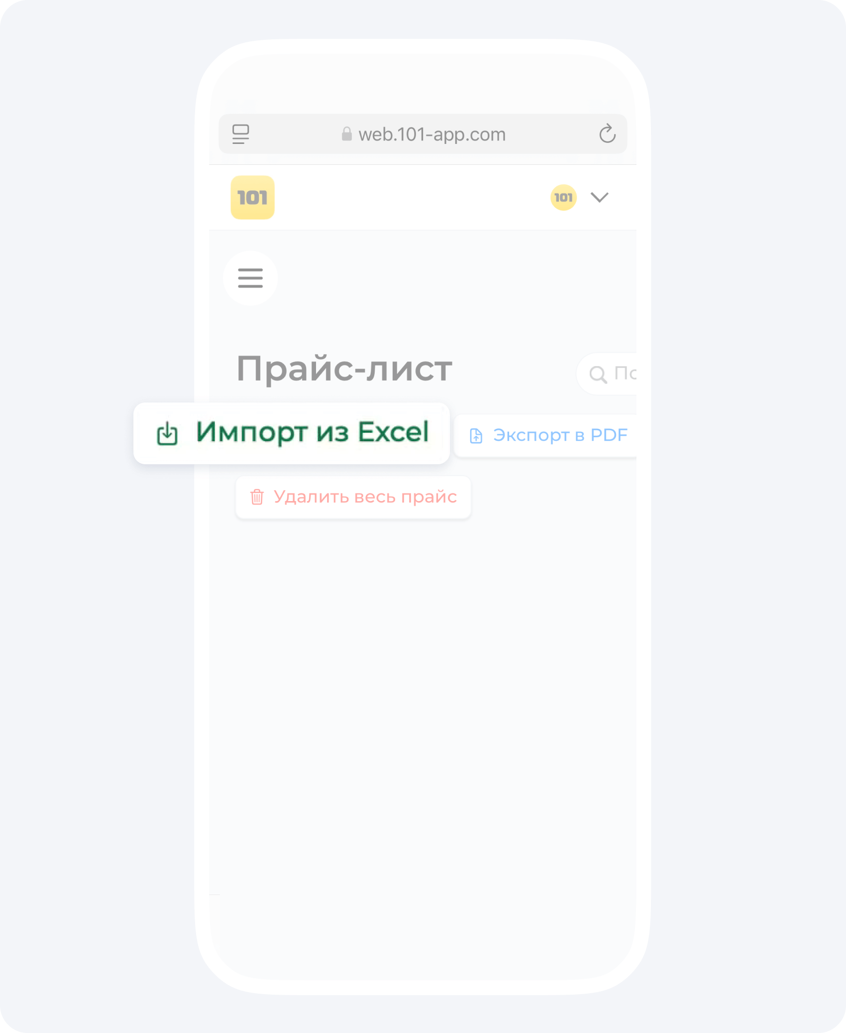 Чтобы загрузить прайс-лист в формате Excel, перейдите в веб-версию приложения 101.