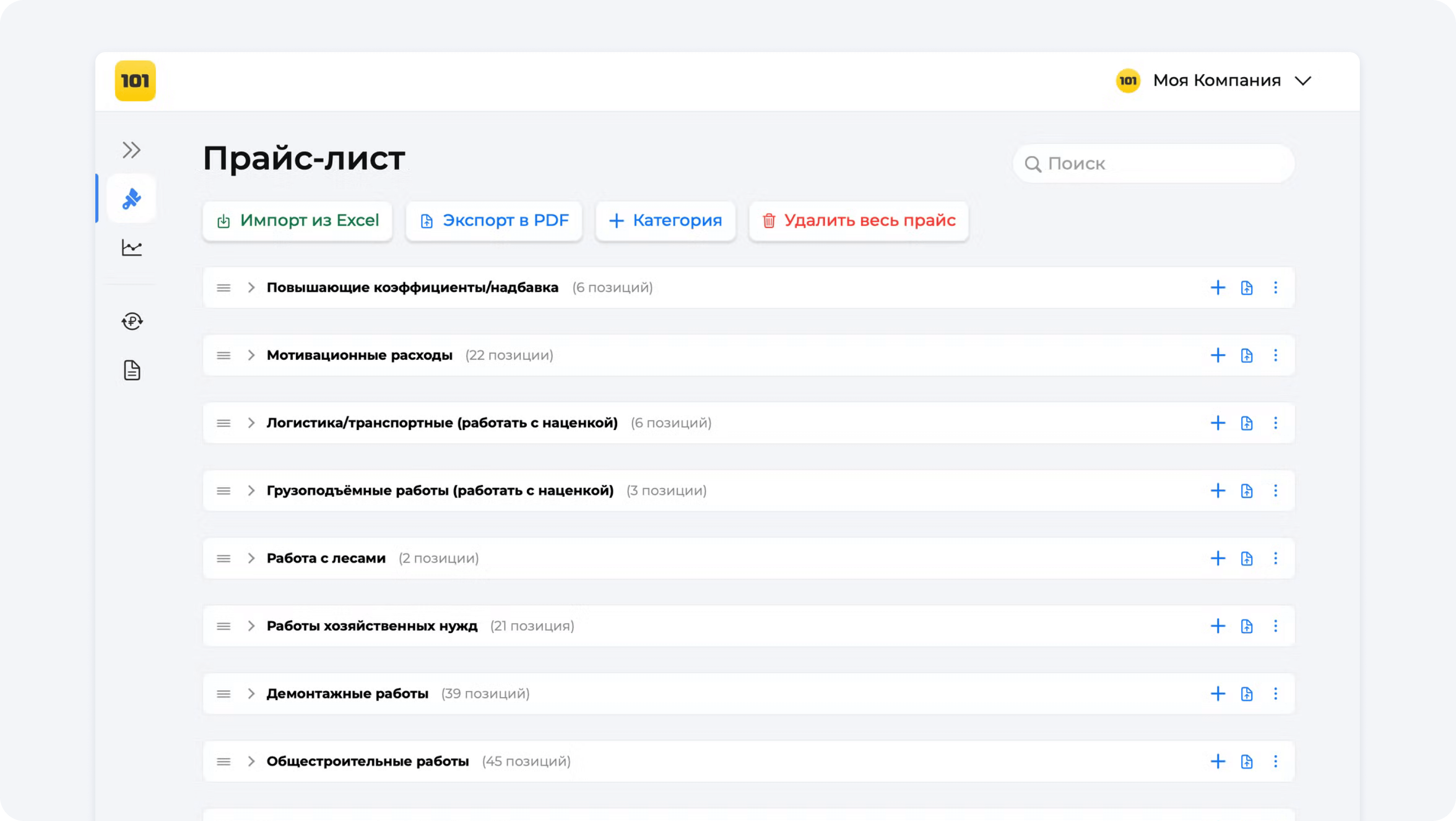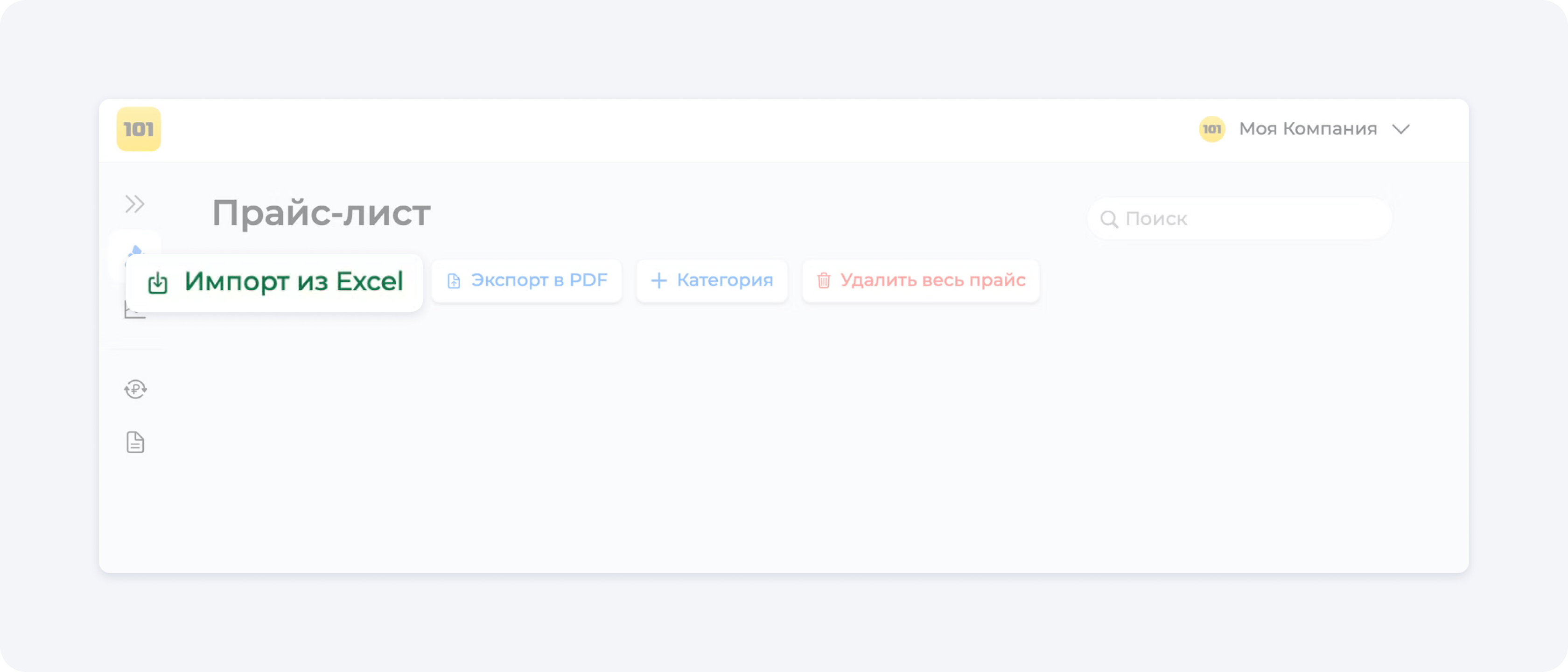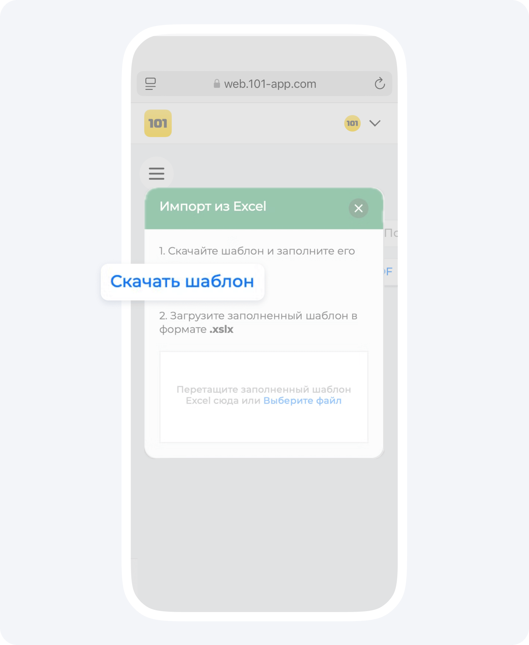 Чтобы загрузить прайс-лист в формате Excel, перейдите в веб-версию приложения 101.