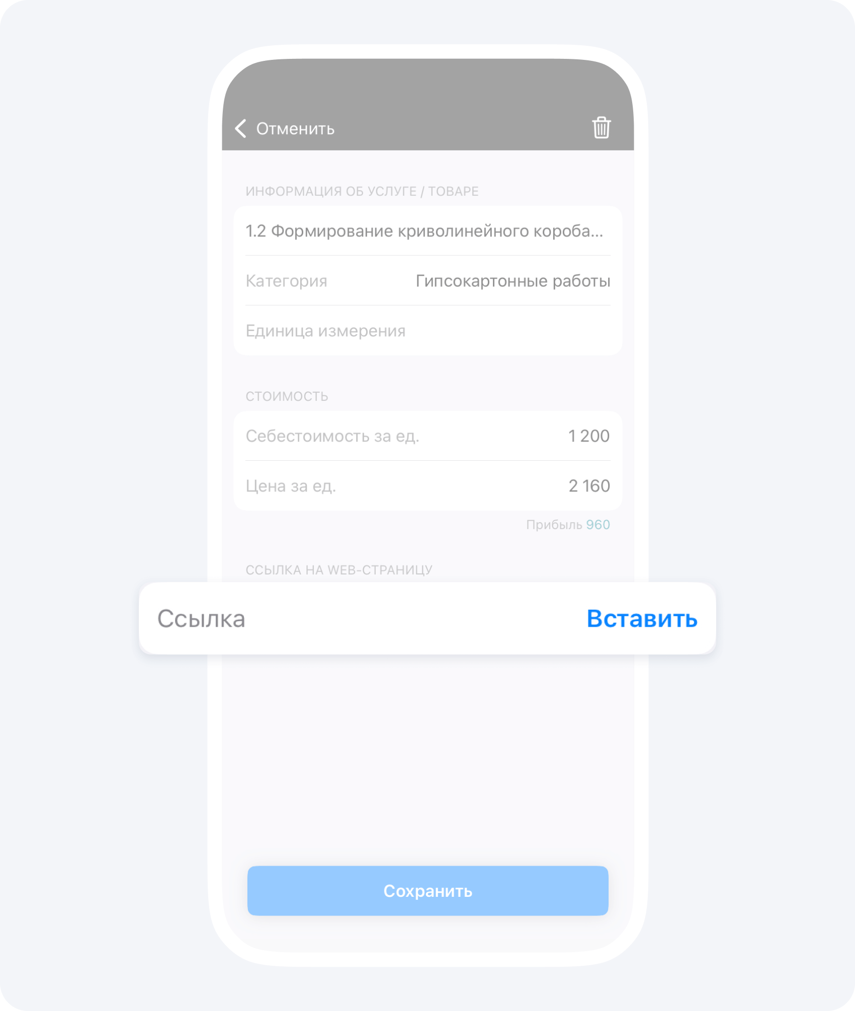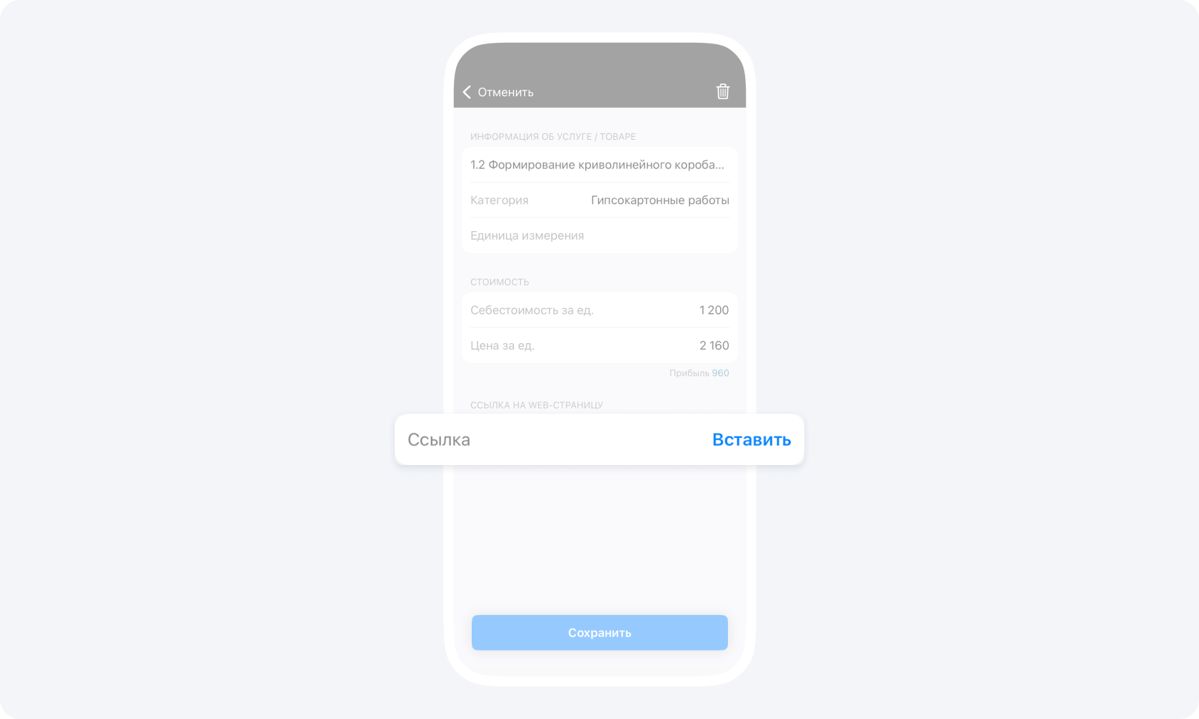 Один из простых способов создания технологической карты: создайте файл в Google Документах и опишите подробно одну из позиций прайса, после чего скопируйте ссылку общего доступа на данный файл. В карточке информация об услуге/товаре нажмите кнопку Вставить и сохраните информацию.