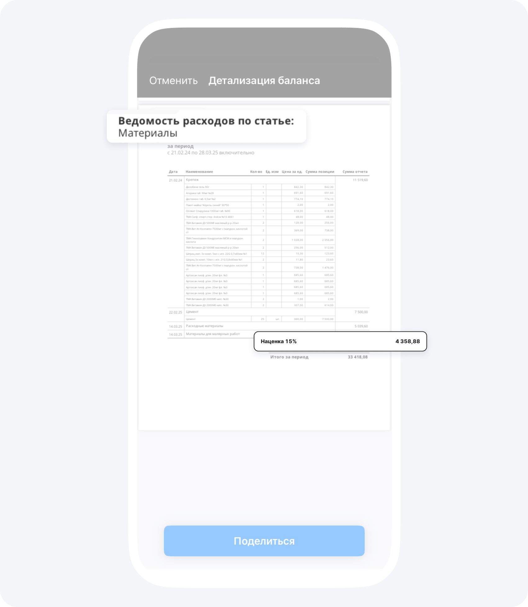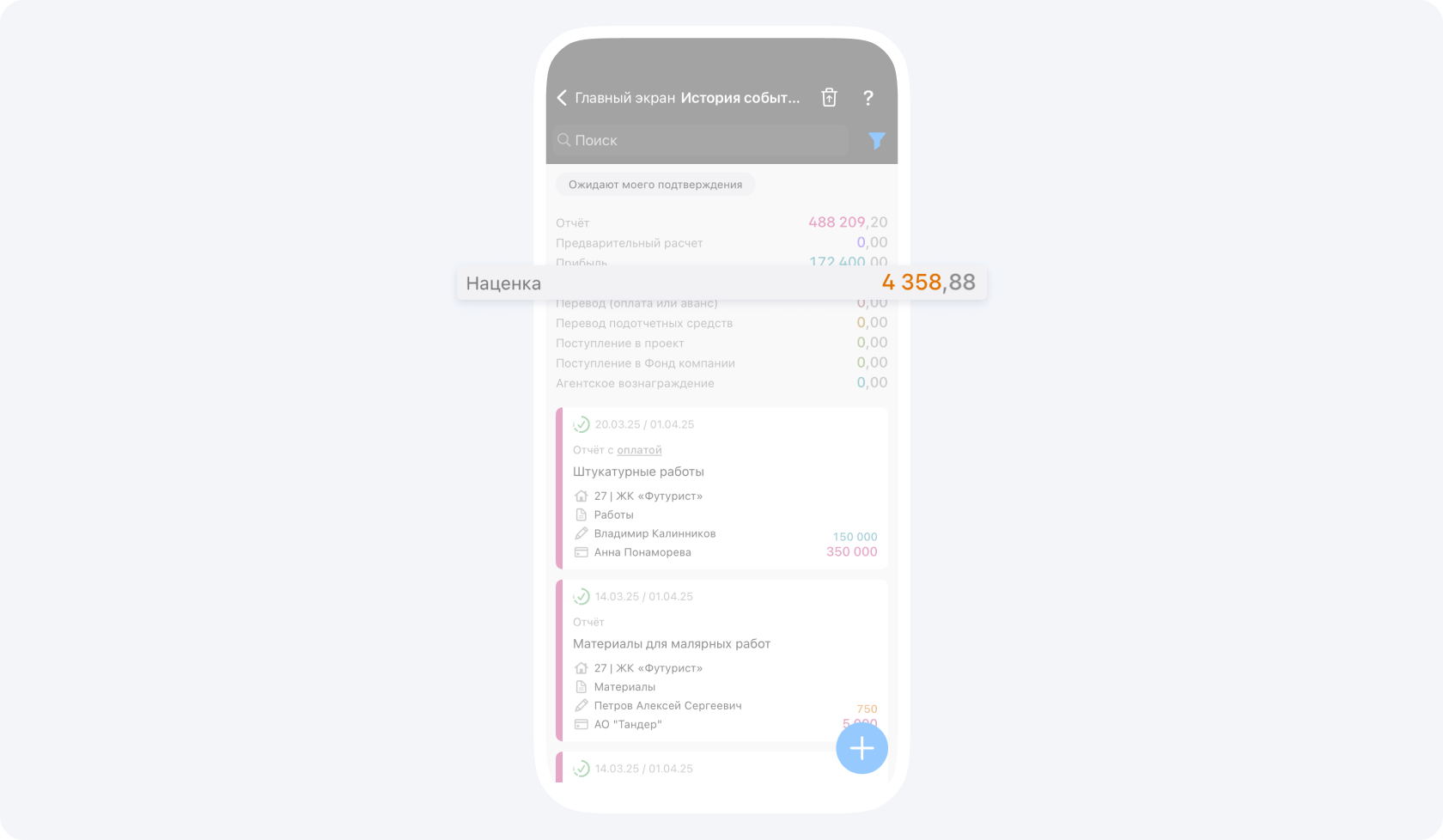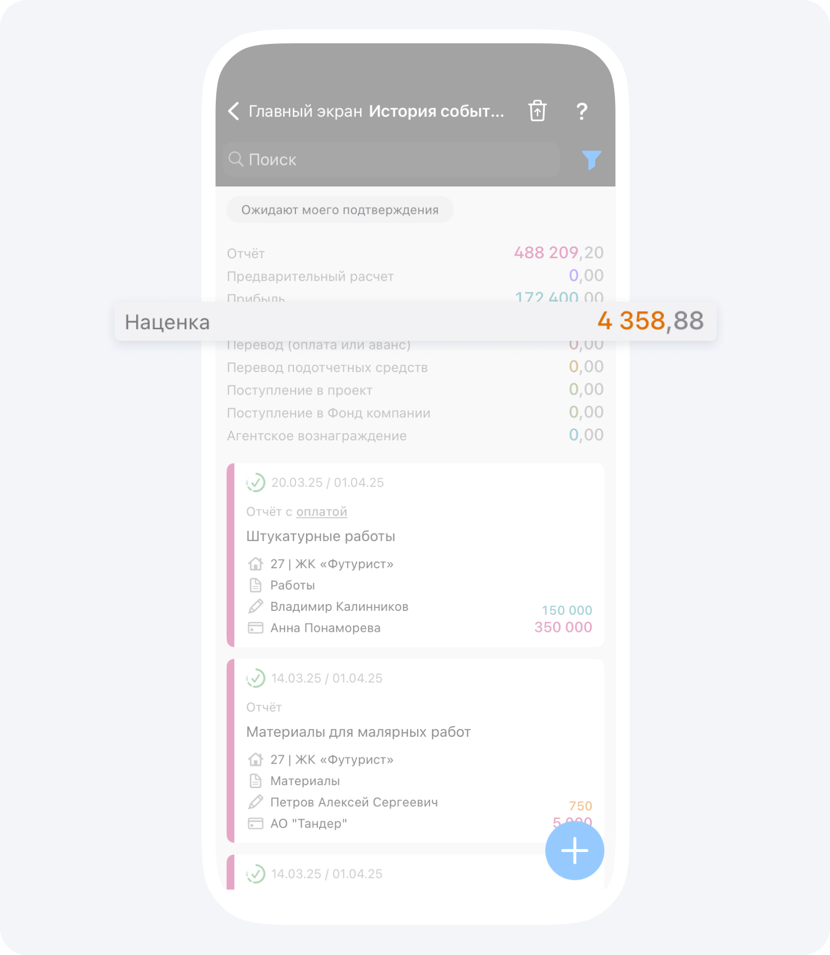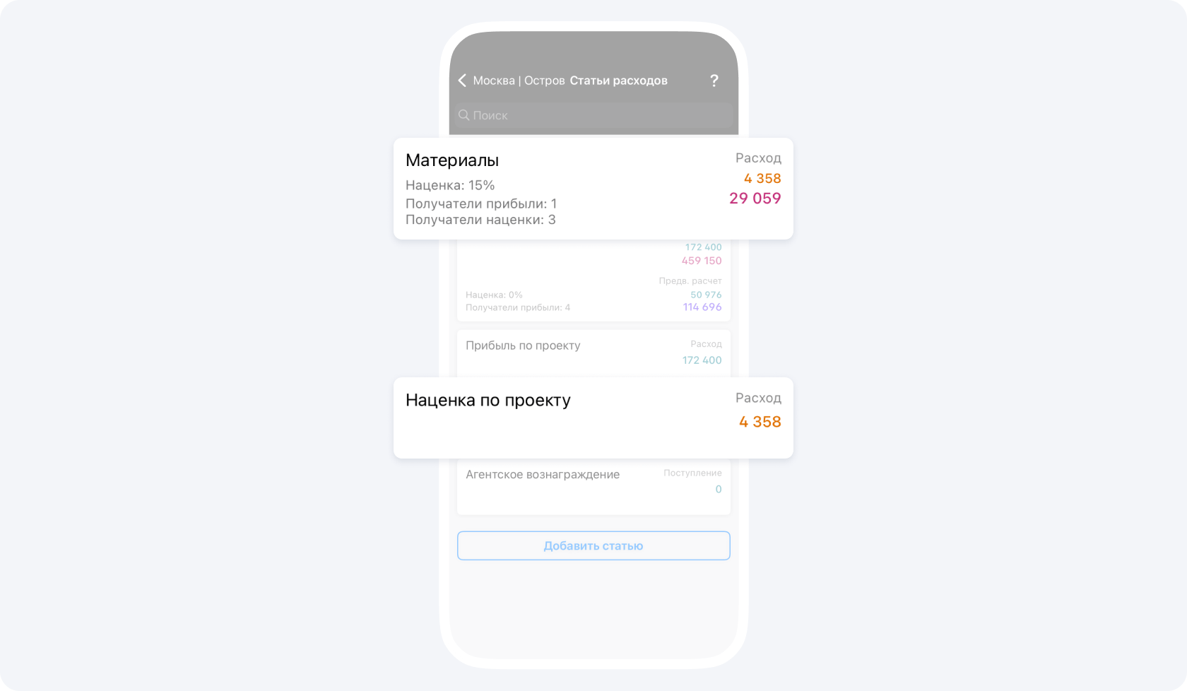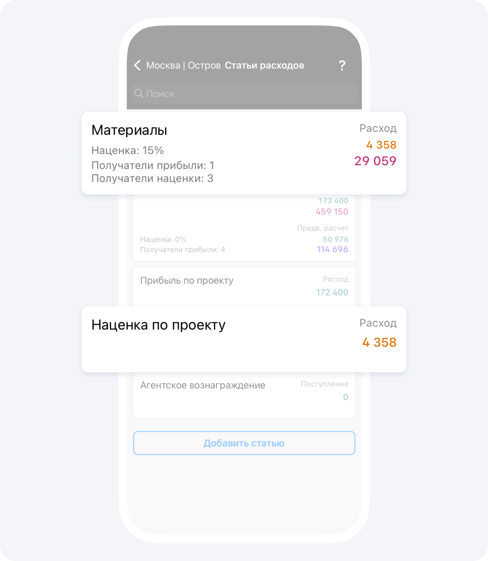В приложении вы можете указать процент наценки на любую статью расходов по проекту и настроить автоматическое распределение долей наценки, между всеми участниками по проекту. Где указать процент наценки и как настроить распределение долей наценки, рассказали в статье.