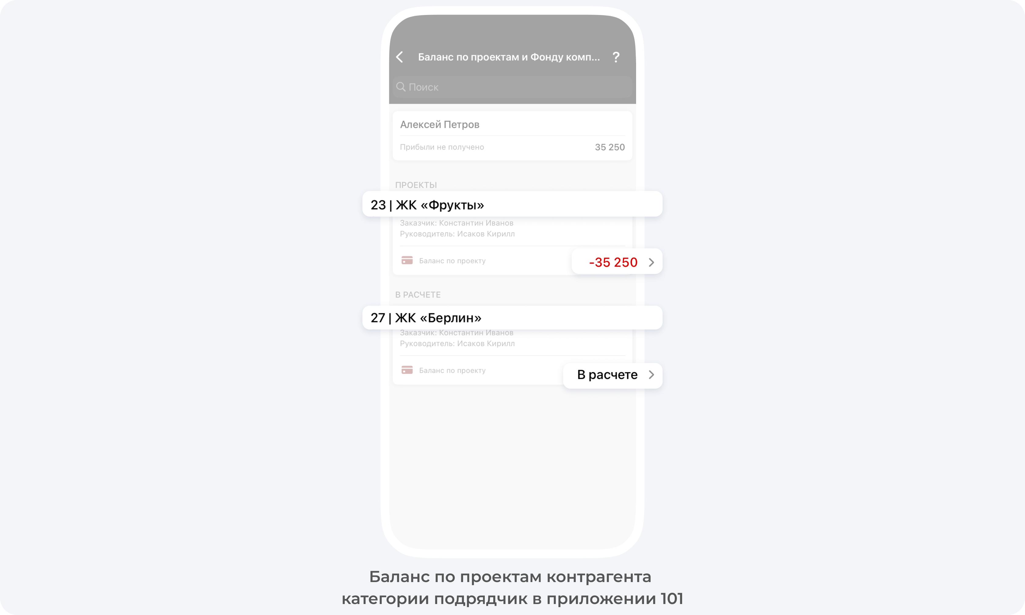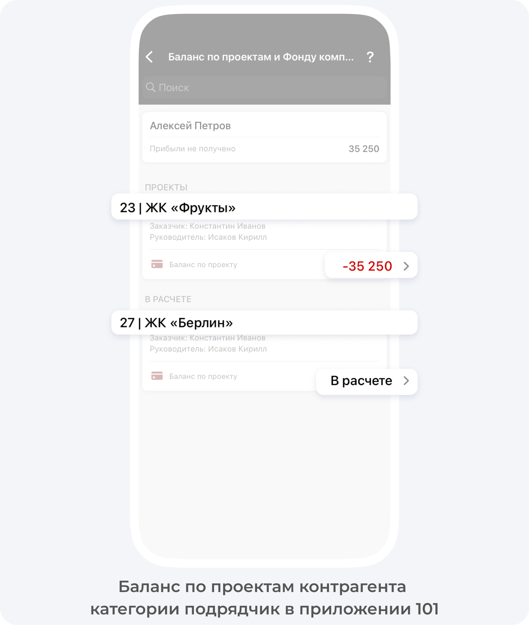 Как понять в каких проектах задействован подрядчик и какой у него баланс по проектам
