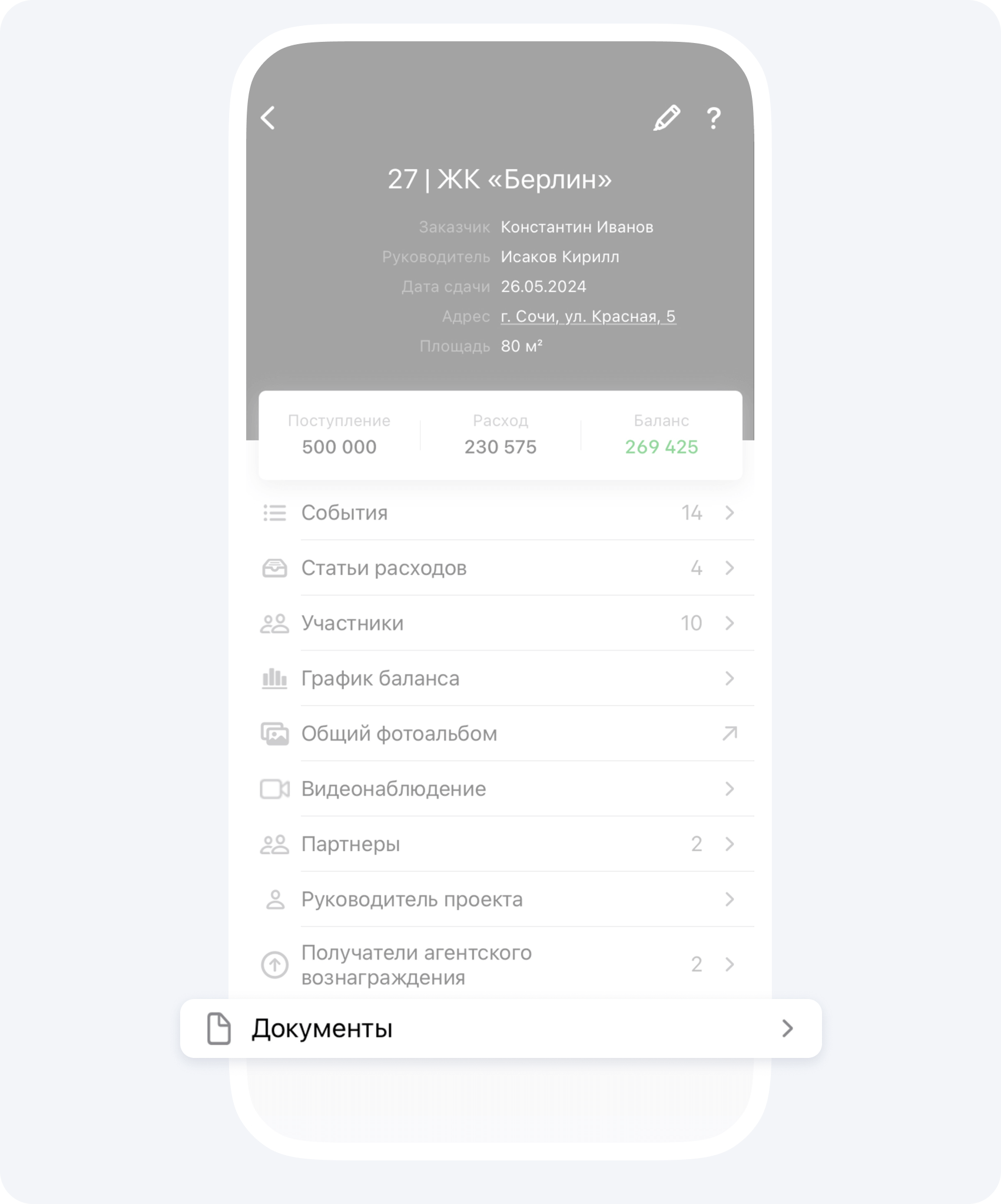 Чтобы создать Акт приёмки работ для заказчика в формате PDF, зайдите в раздел Проекты и выберите интересующий вас проект.
