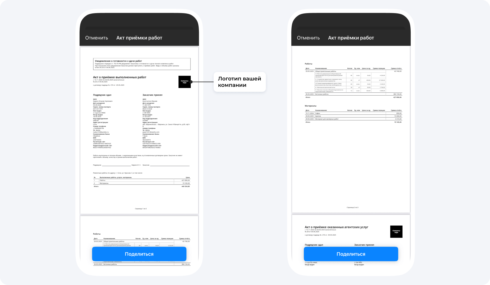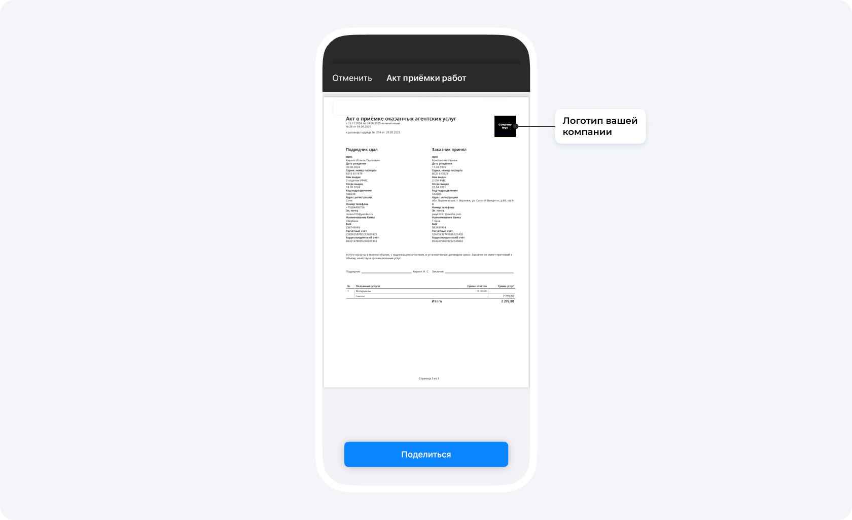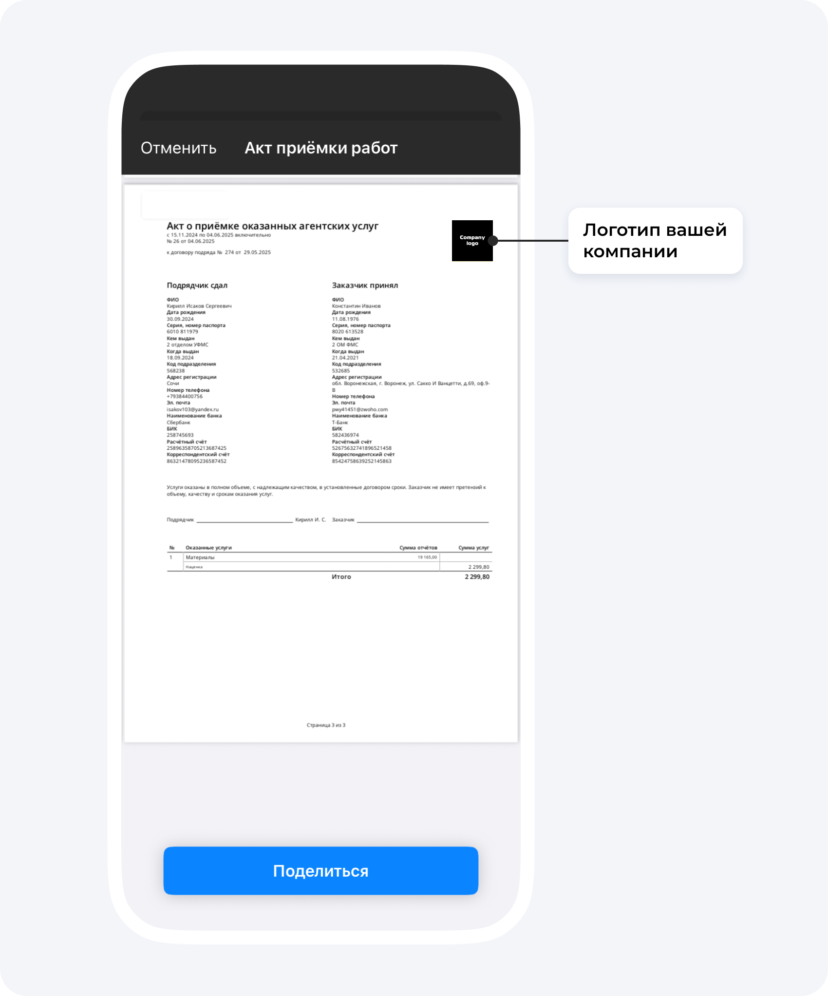 В тарифе Pro+ вы можете отправить документ на вашем индивидуальном фирменном Бланке с логотипом вашей компании.