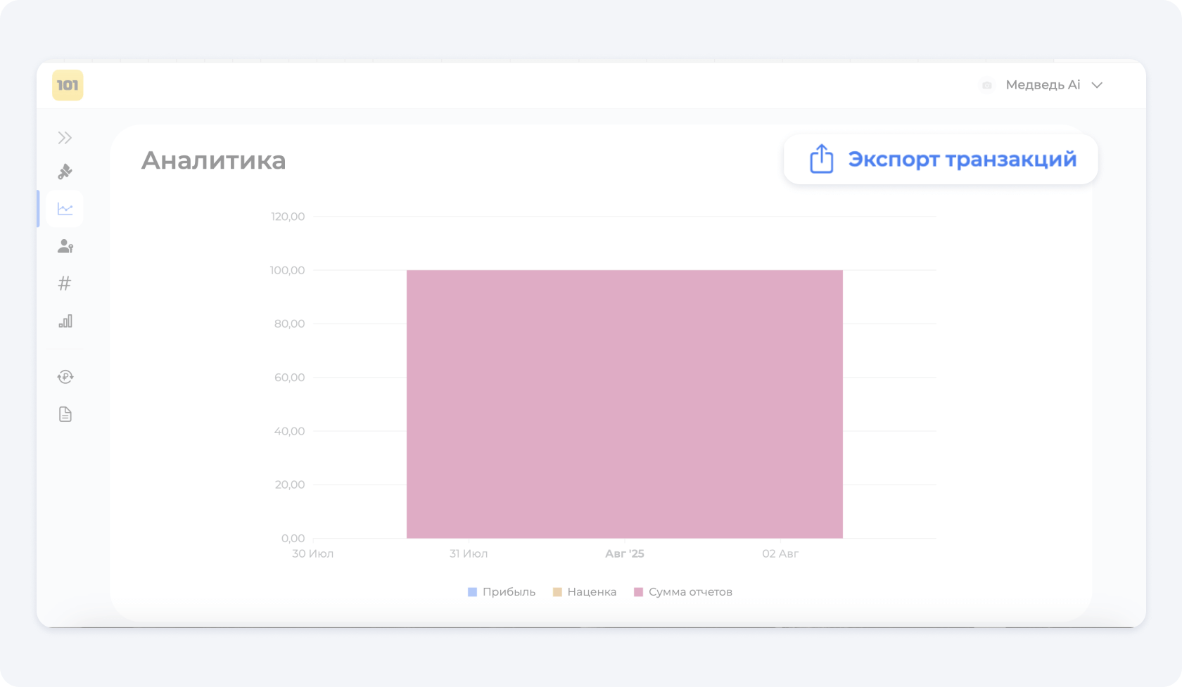 В веб-версии вы можете сделать экспорт всех транзакций из приложения в формате CSV. Это позволит вам построить точечно проработать какие-либо показатели аналитики, если это требуется.