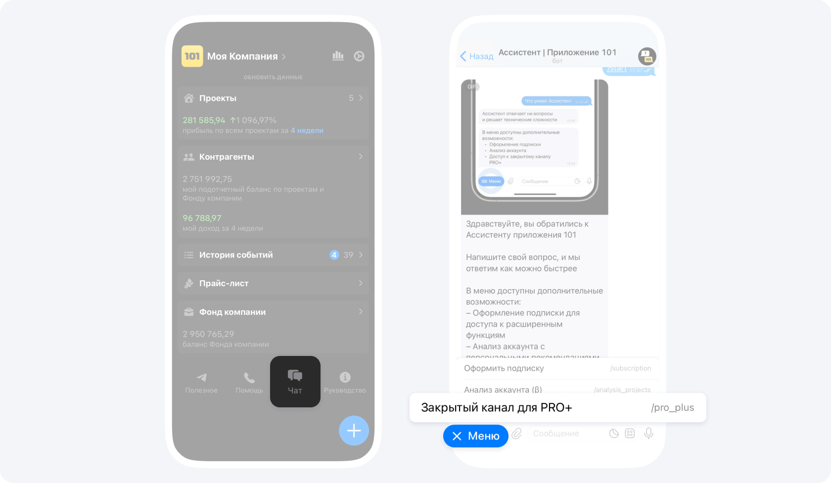 Чтобы попасть в закрытый канал Pro+, на Главном экране приложения нажмите кнопку Чат. В чате технической поддержки нажмите кнопку Меню и выберите Закрытый канал для Pro+.