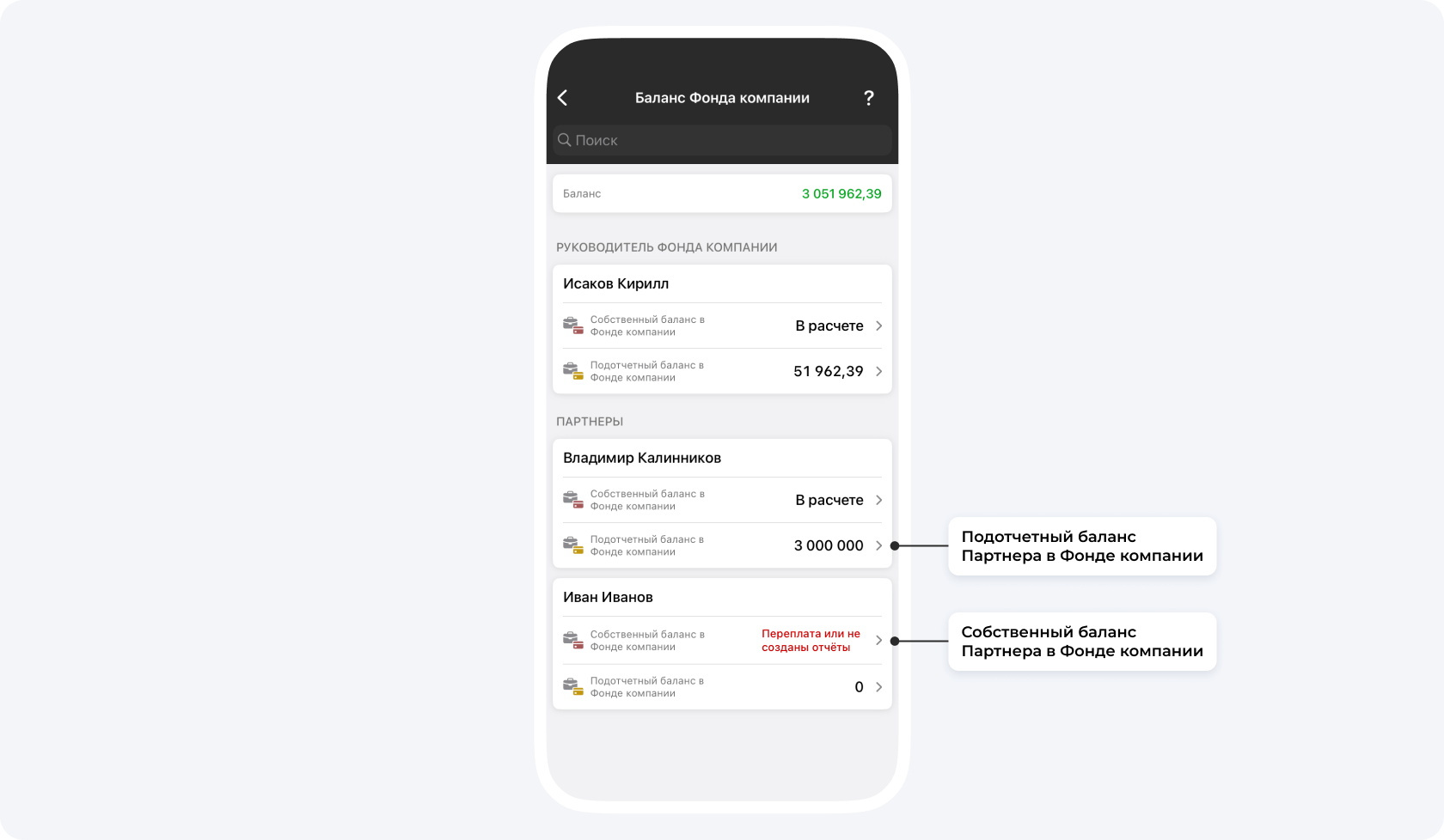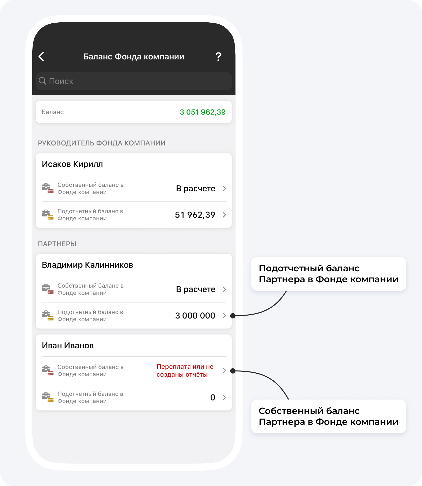 3. Видеть актуальные балансы контрагентов по Фонду Компании