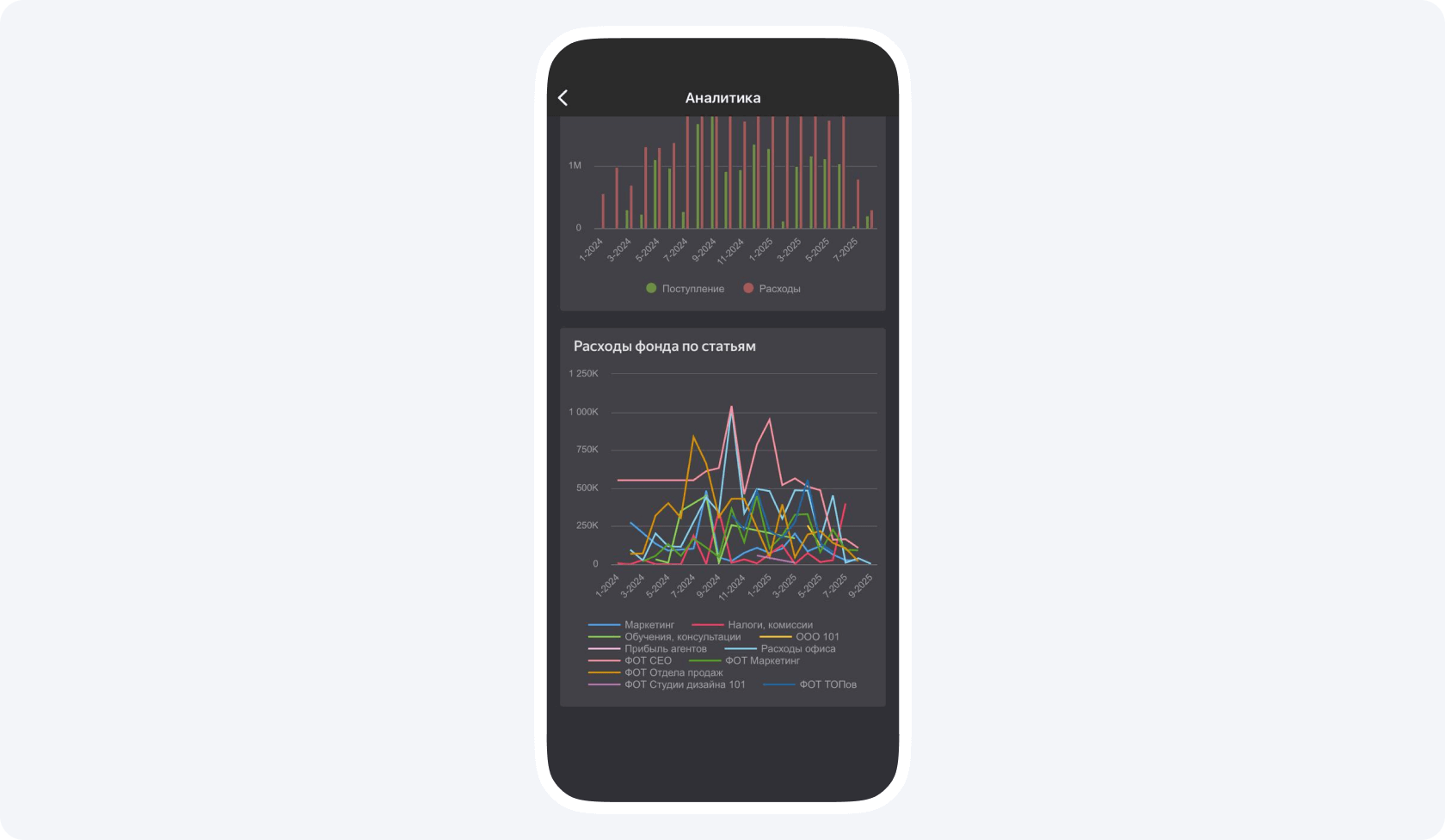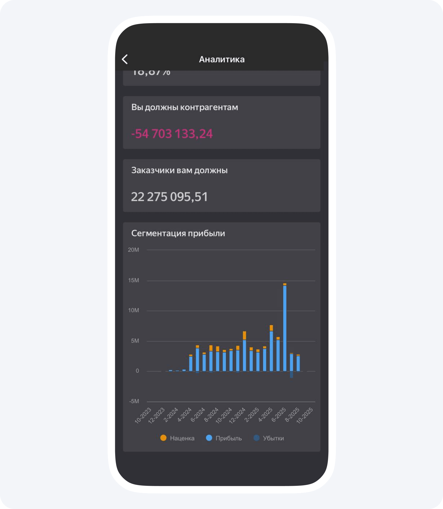 Анализировать собственные провалы и рост дохода — это база для предпринимателя. В приложении с Подпиской Pro+ вы сможете проводить расширенную аналитику движения денежных средств.