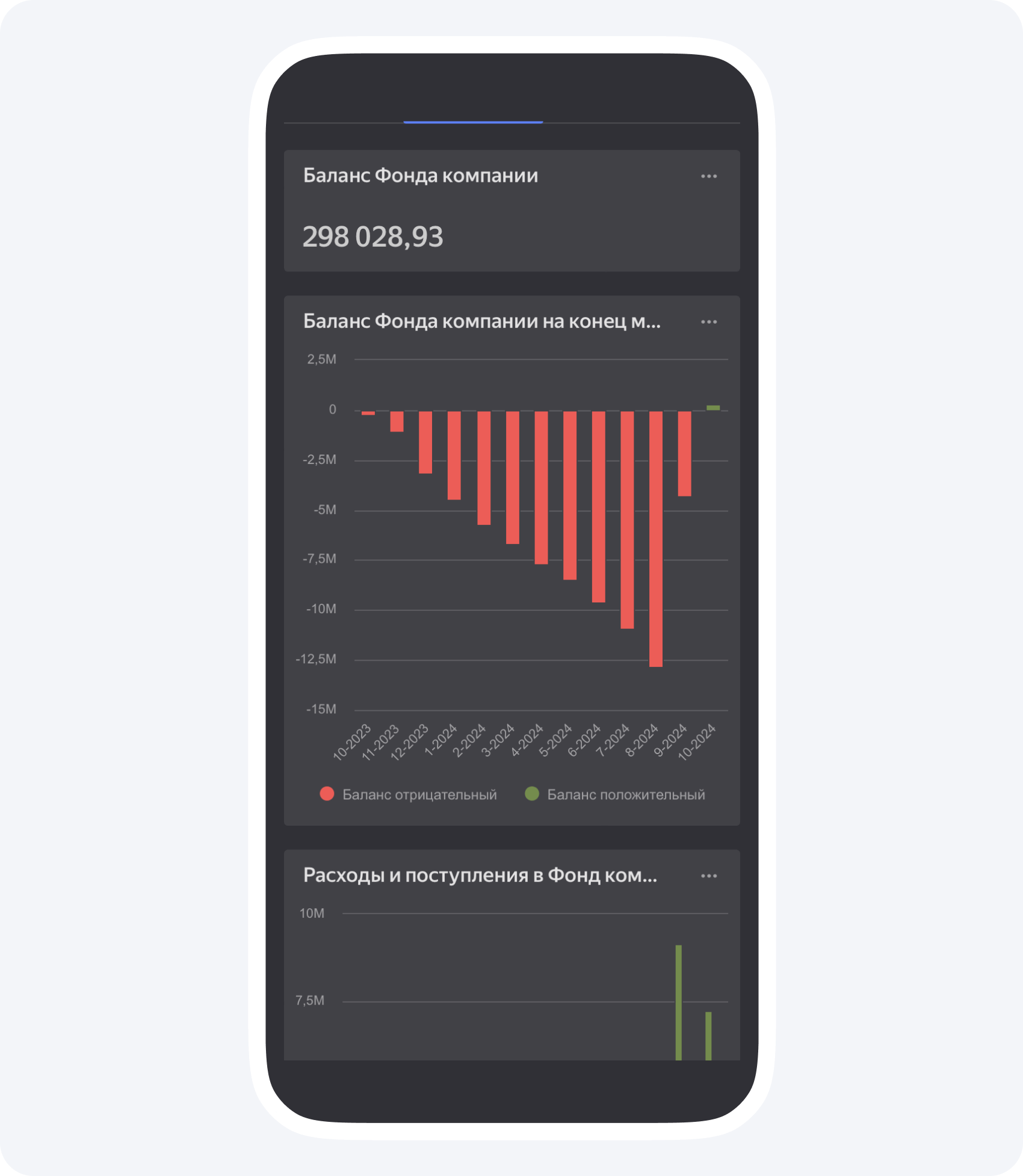 Если вы создали статьи расходов в Фонде компании, у вас появится подобный график с цифрами на каждую статью. Это поможет вам избежать лишних трат, которые могут привести к кассовому разрыву.